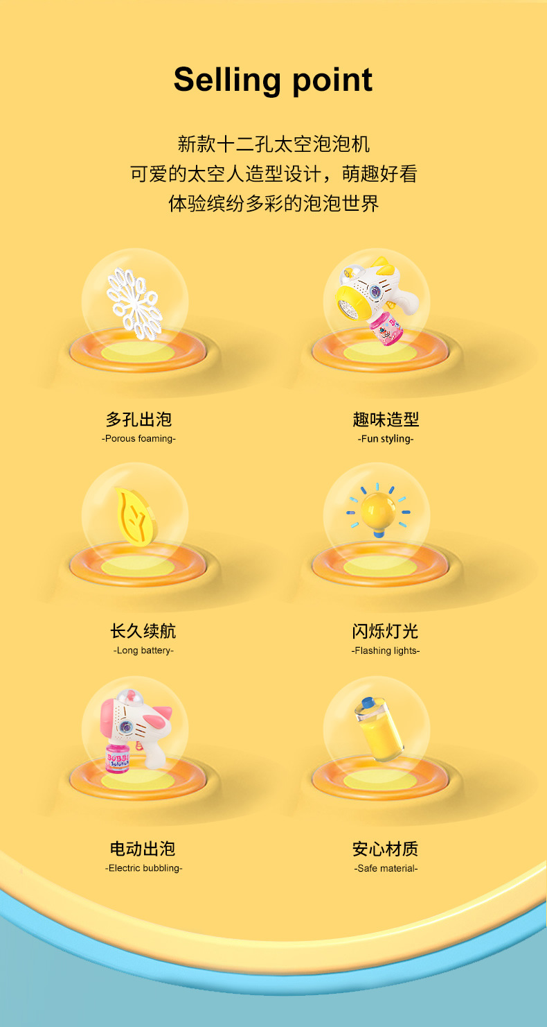 쉐이크 톤 우주인 우주 비행사 버블 건 전기 자동 버블 블로잉 머신 어린이 휴대용 다공성 버블 장난감스토어 가기