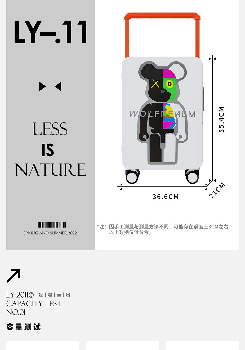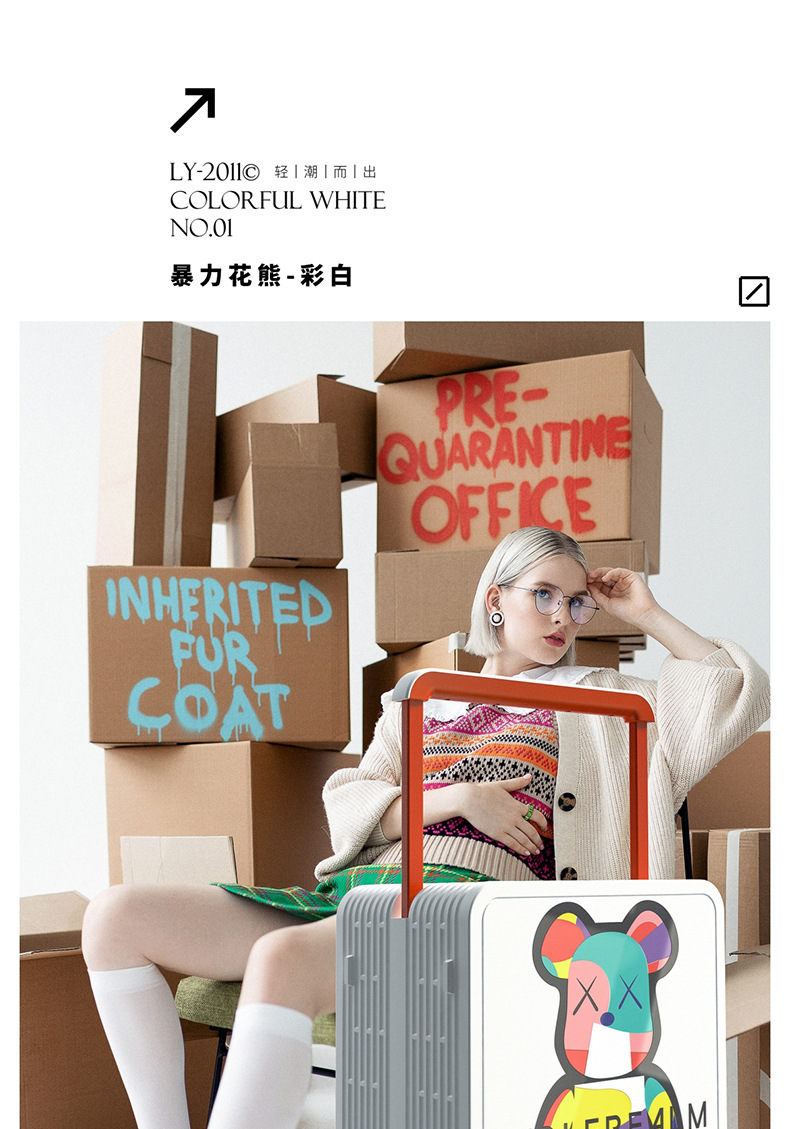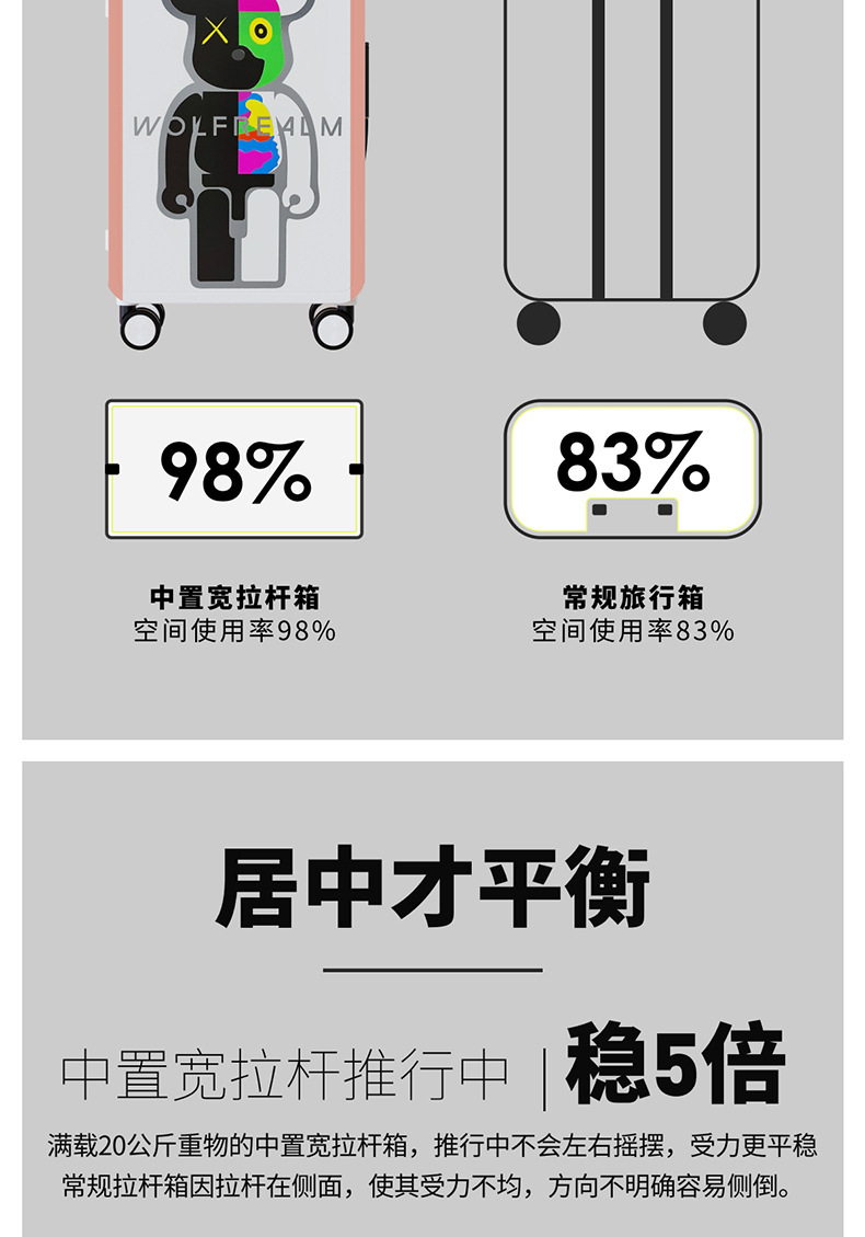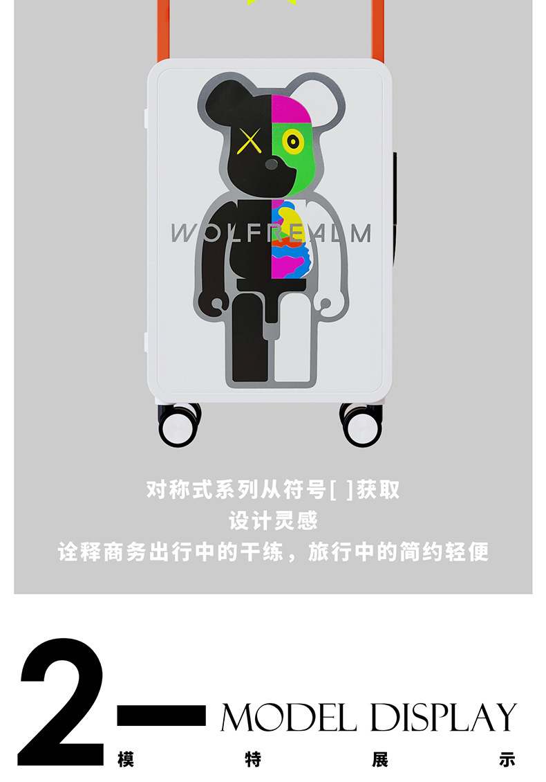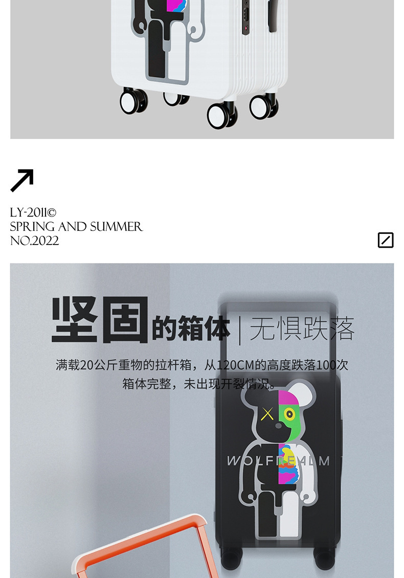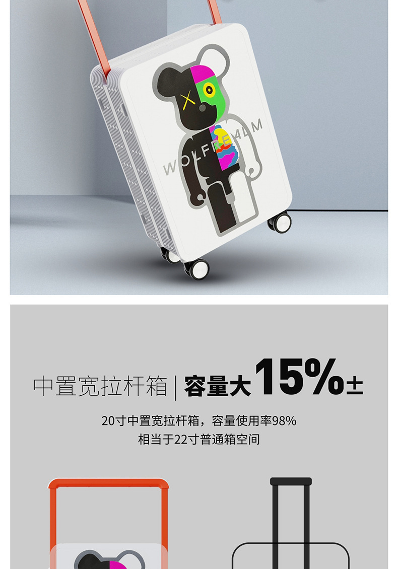 대형 여행 상자 20 인치 탑승 상자 여성을 인쇄하는 중간 넓은 풀로드 수하물 폭력적인 곰
