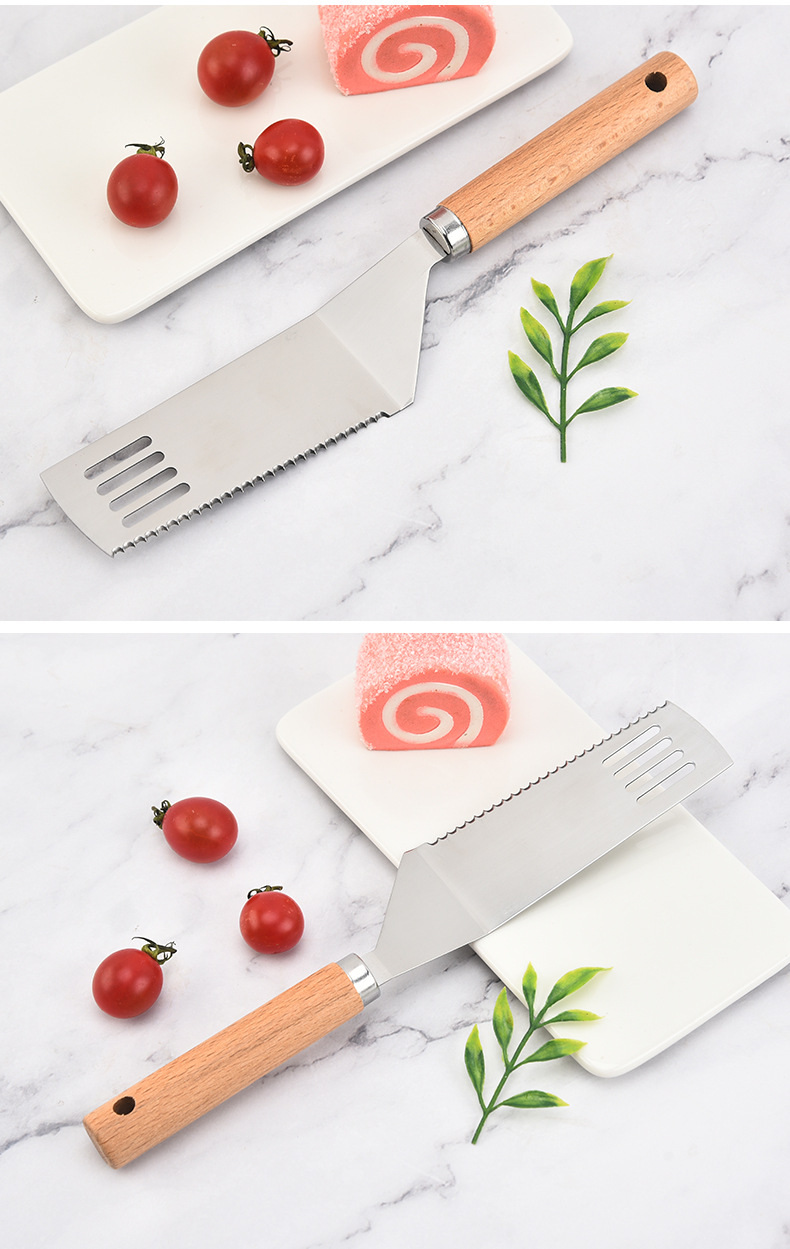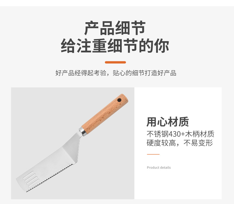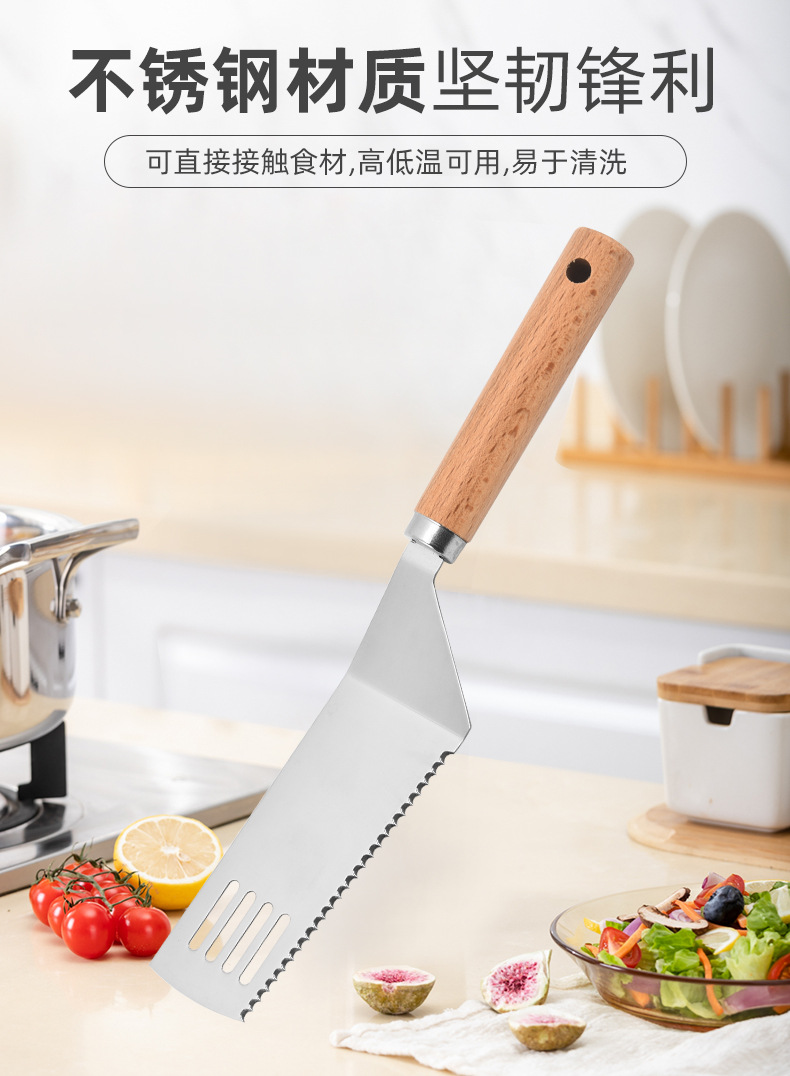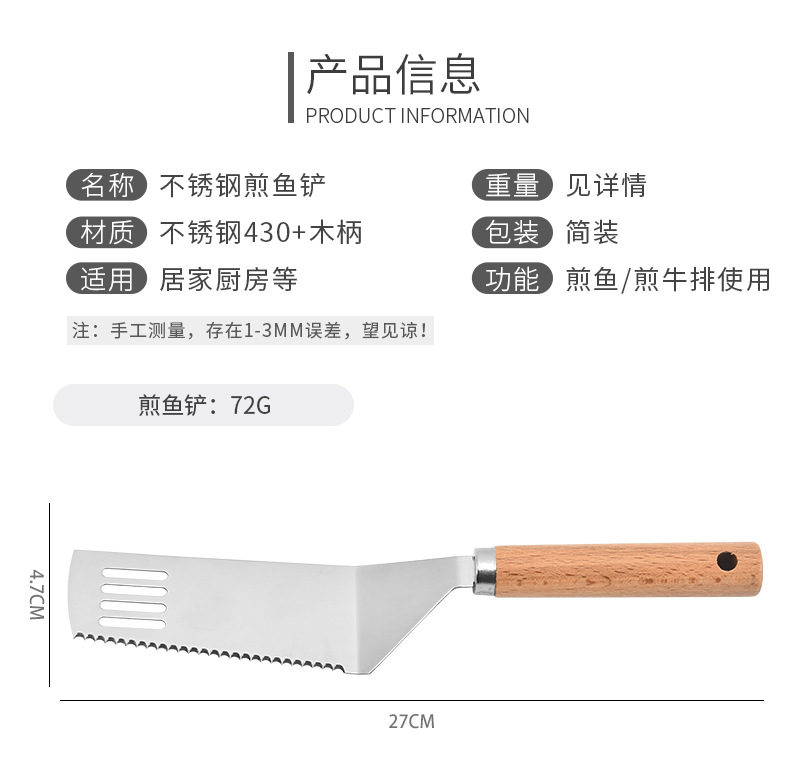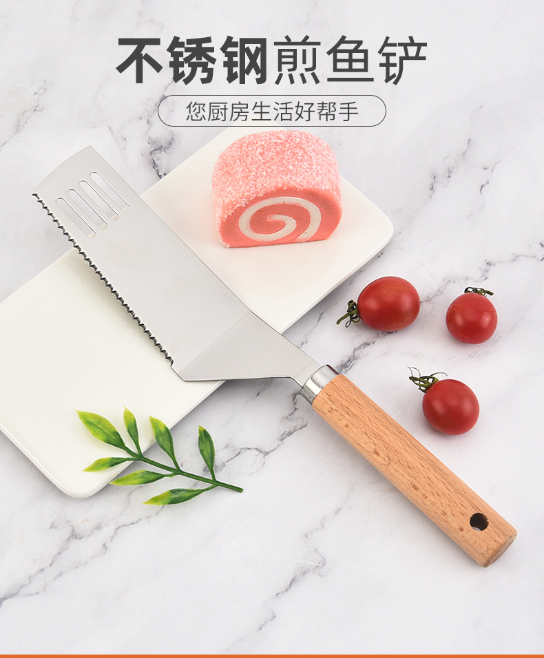 제조 업체 도매 스테인레스 스틸 생선 프라이팬 나무 손잡이 핸드 케이크 프라이팬 가정용 바베큐 바베큐 요리 주걱 주방 도구스토어 가기