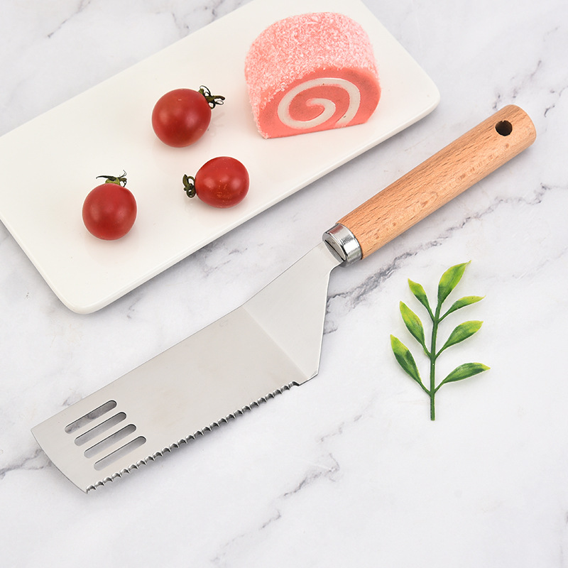제조 업체 도매 스테인레스 스틸 생선 프라이팬 나무 손잡이 핸드 케이크 프라이팬 가정용 바베큐 바베큐 요리 주걱 주방 도구