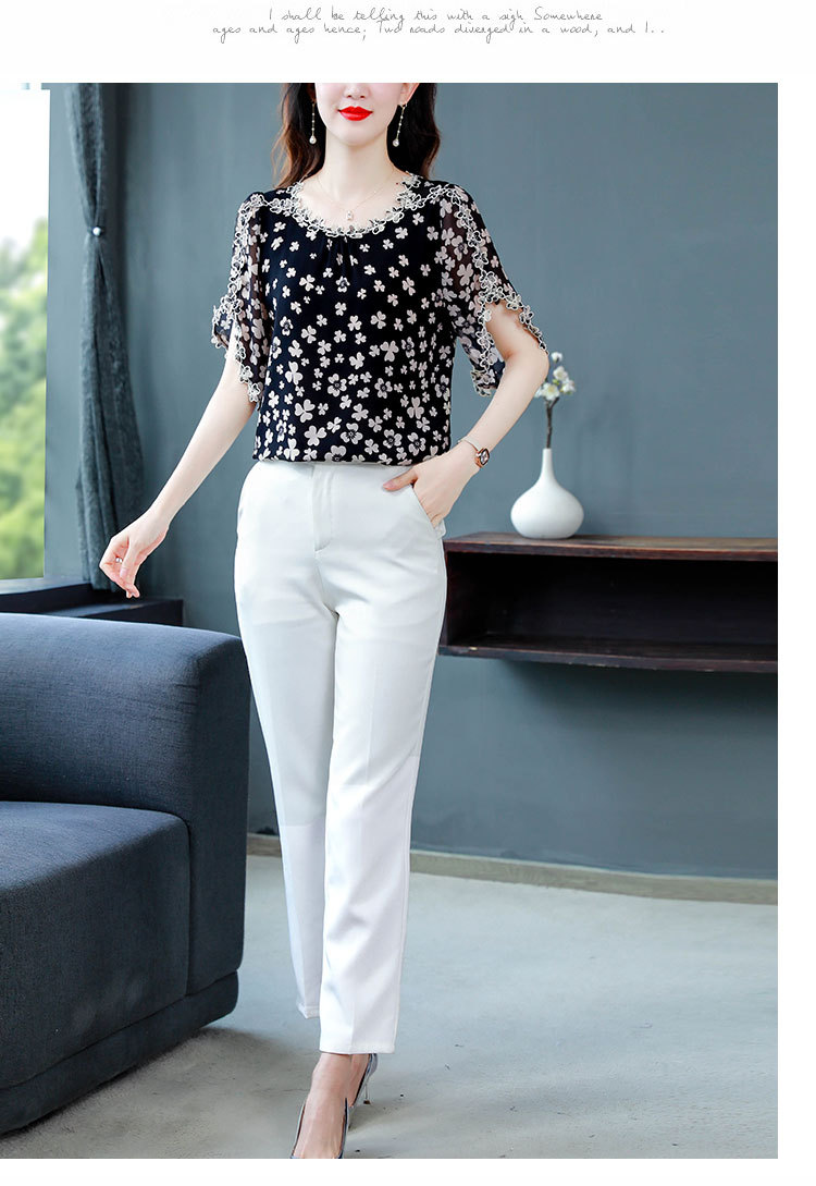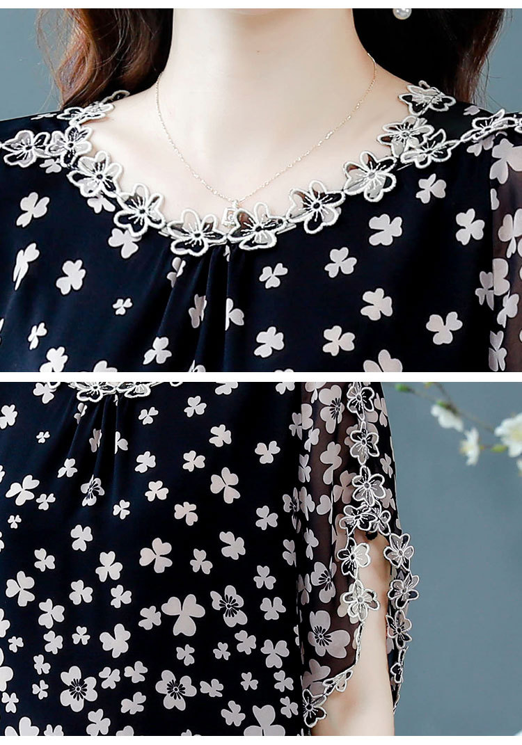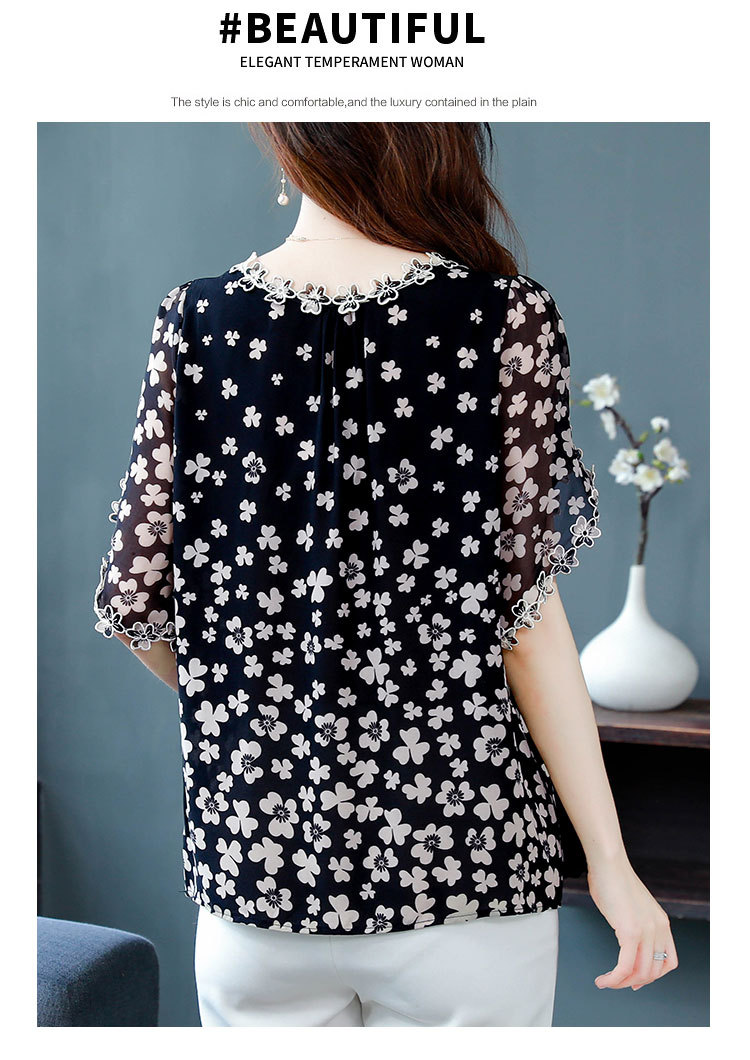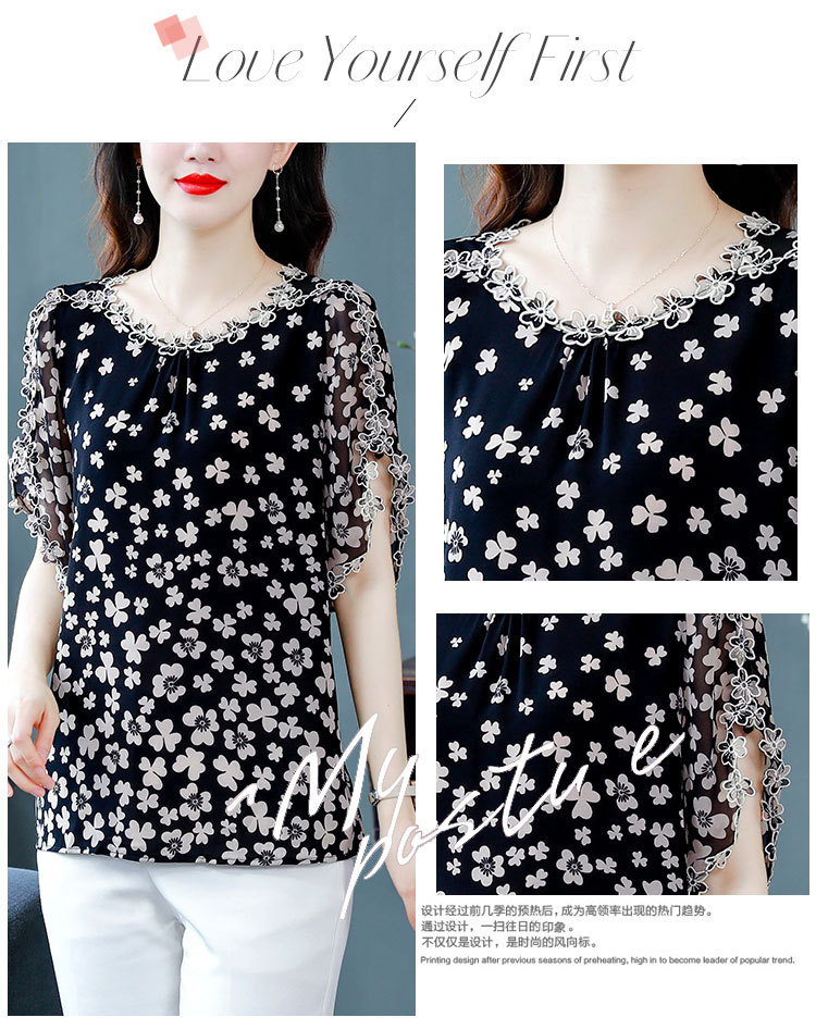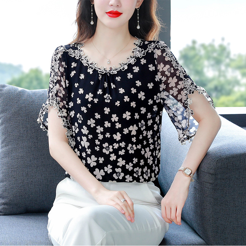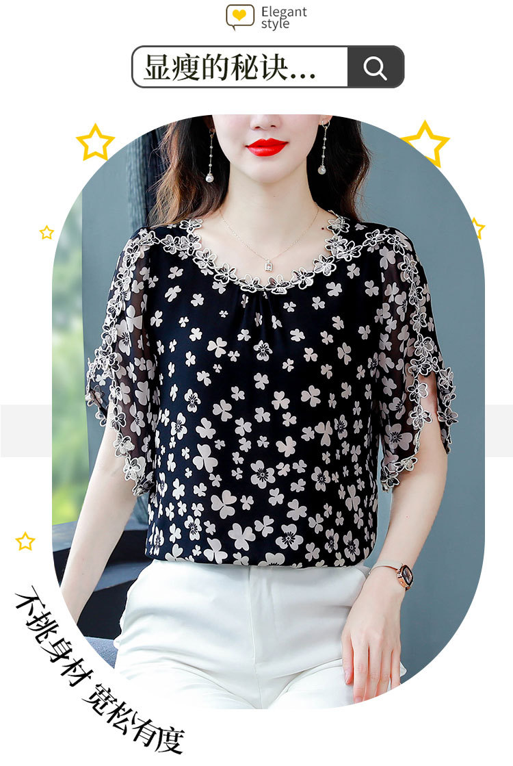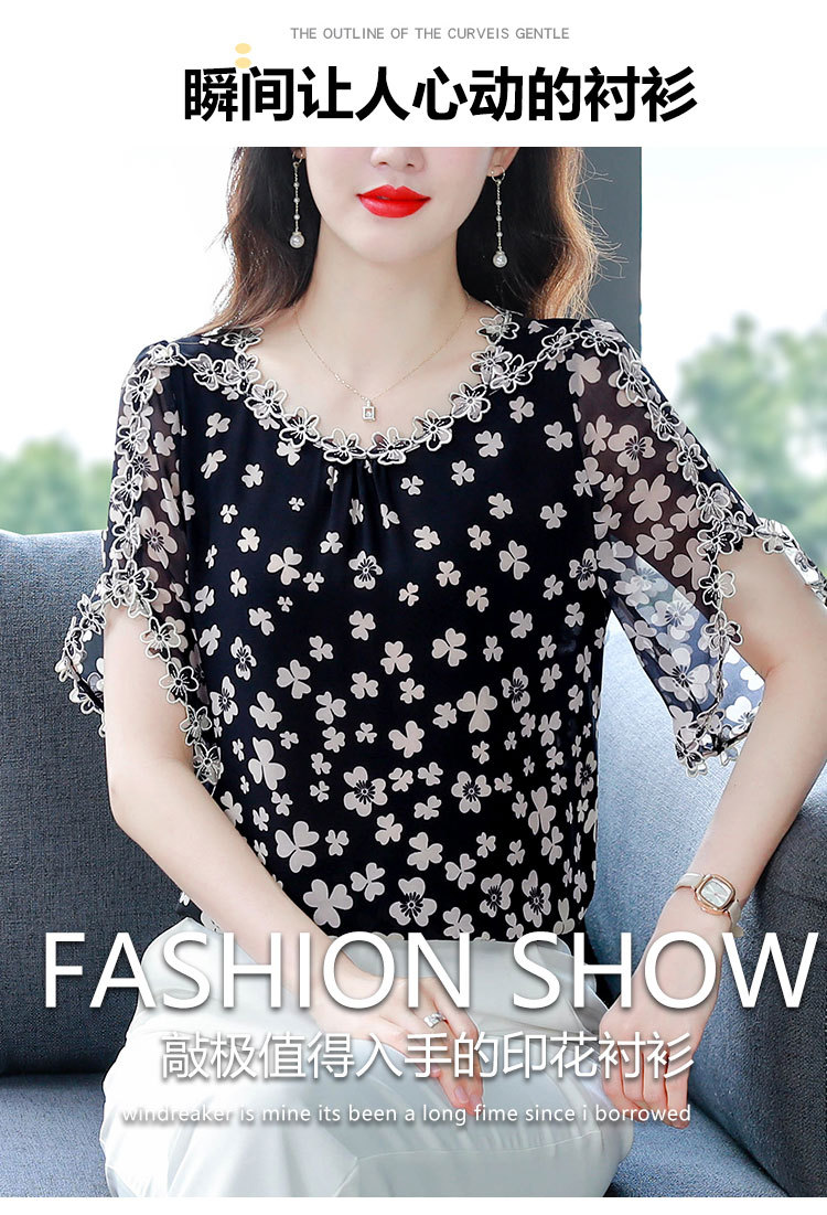 유럽 중공업 플라잉 슬리브 여성용 꽃 무늬 셔츠 2023 여름 새로운 유행 유행 쉬폰 짧은 소매 탑