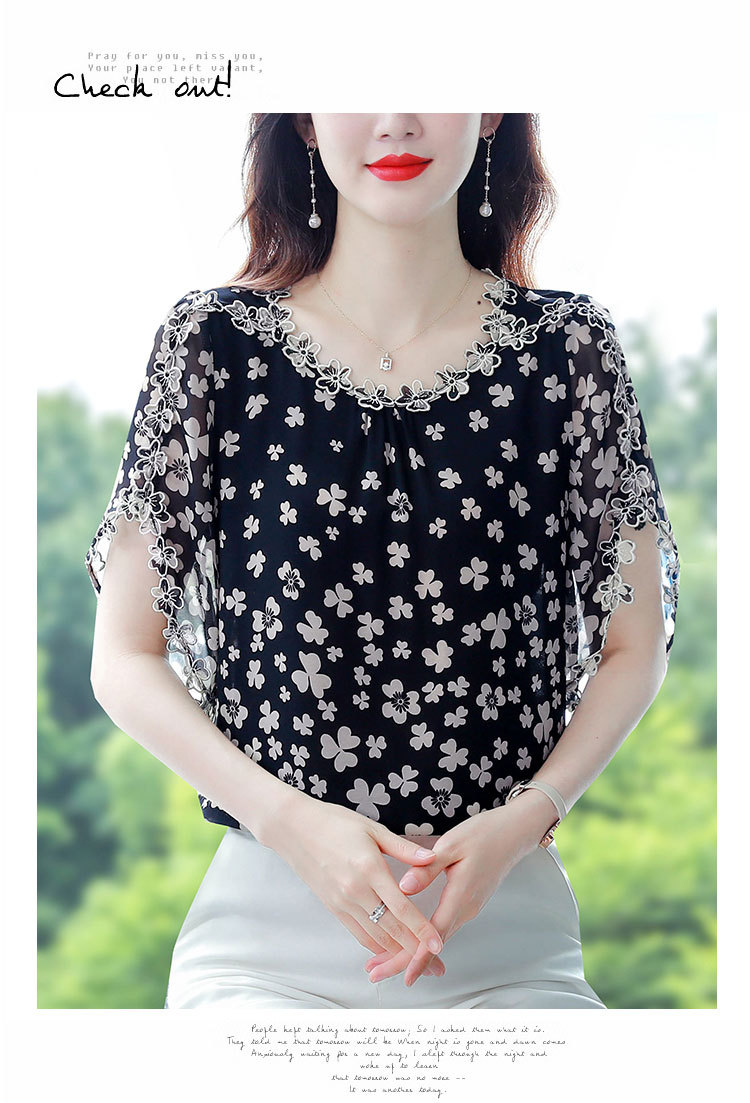 유럽 중공업 플라잉 슬리브 여성용 꽃 무늬 셔츠 2023 여름 새로운 유행 유행 쉬폰 짧은 소매 탑스토어 가기