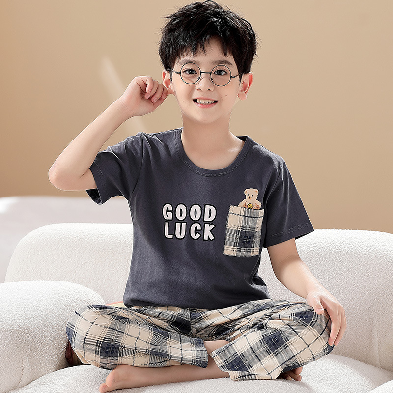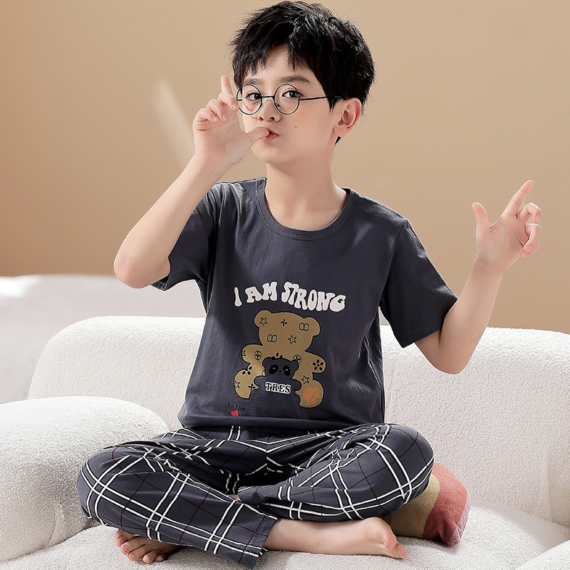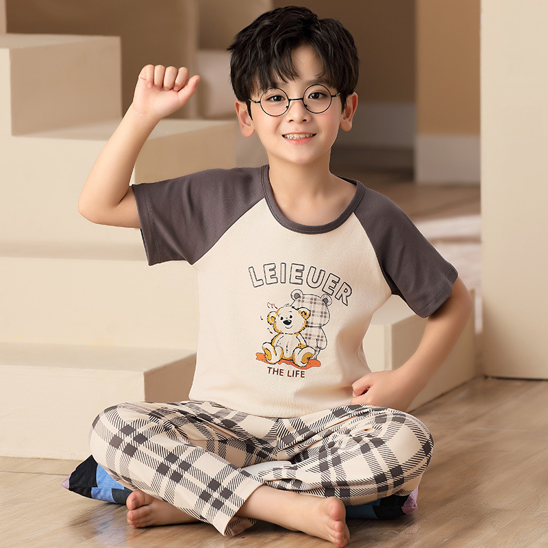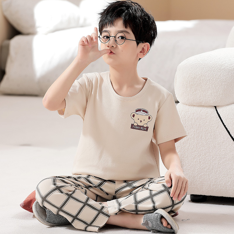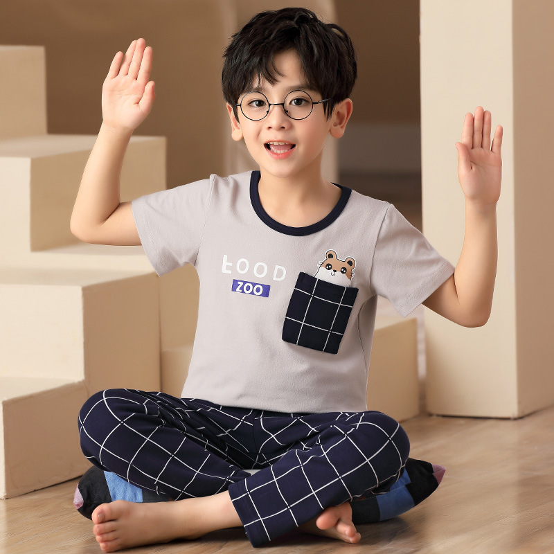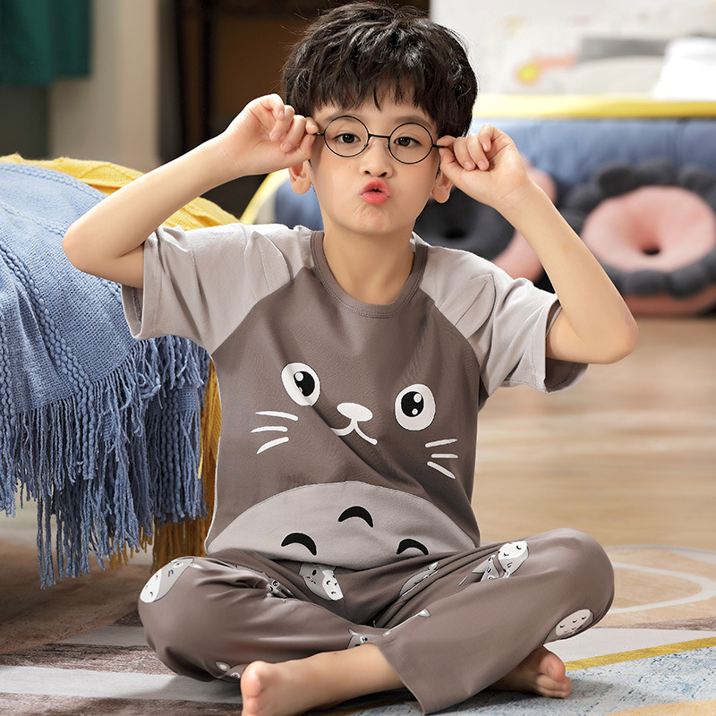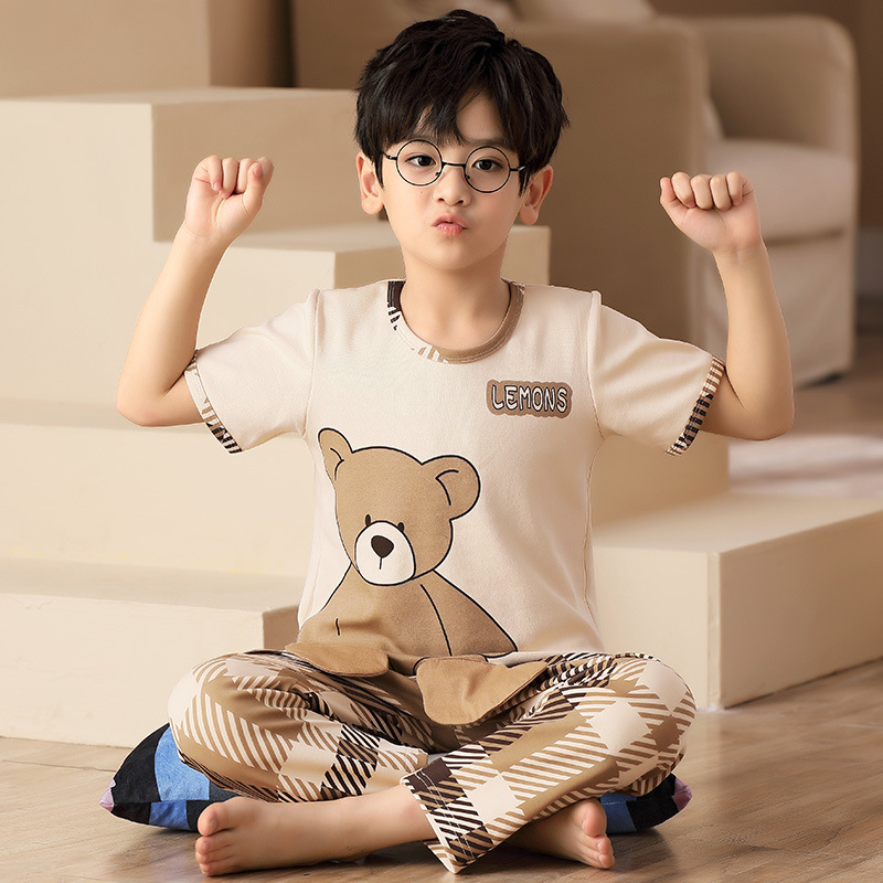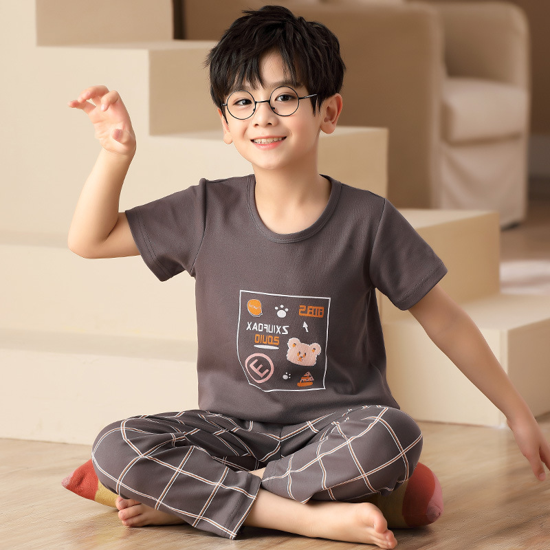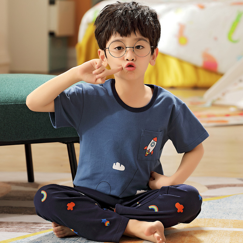 어린이 잠옷 소년의 여름 반팔 바지 소년의 순면 어린이 순면 중형 및 대형 어린이 여름 얇은 가정복스토어 가기
