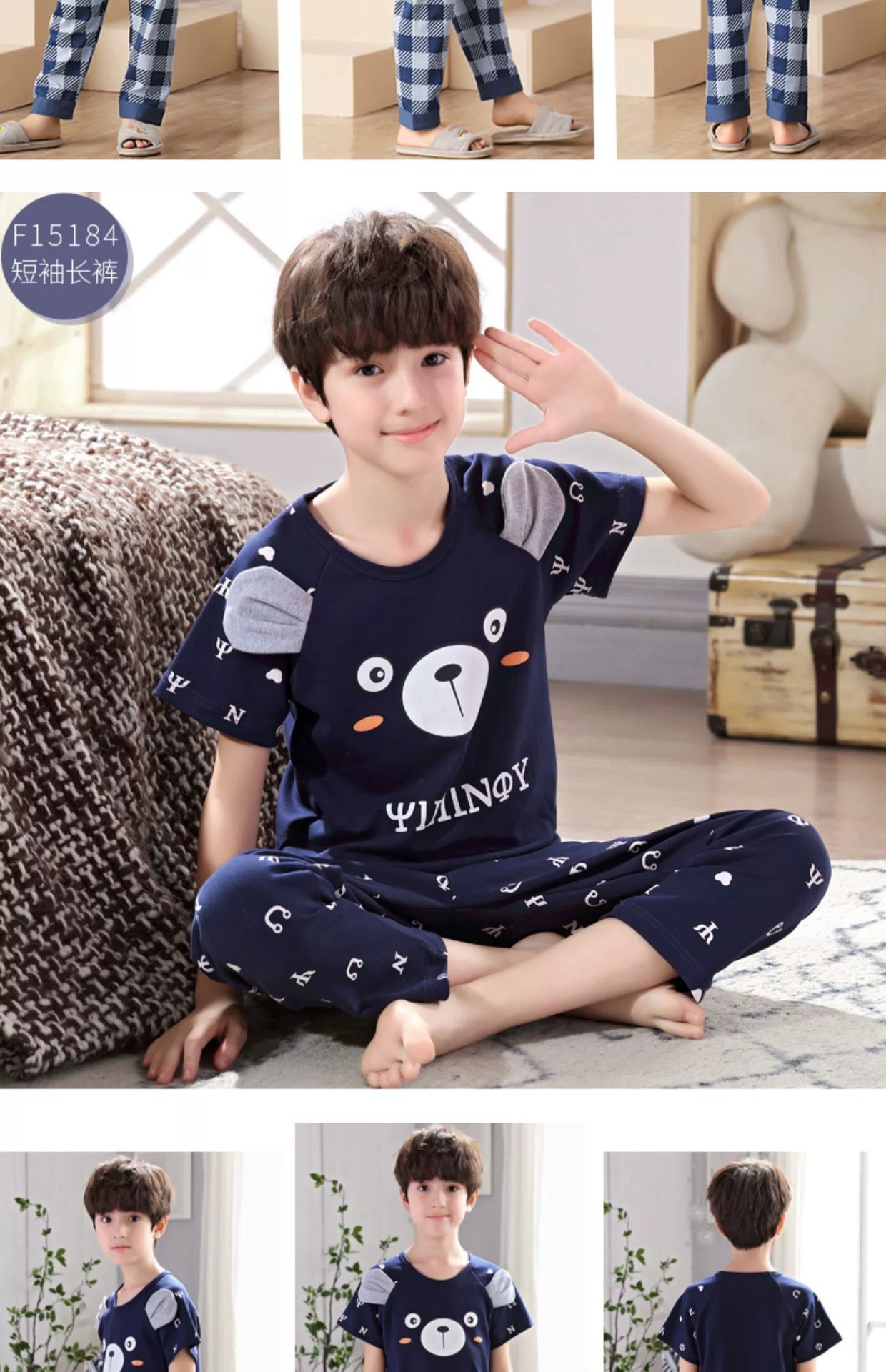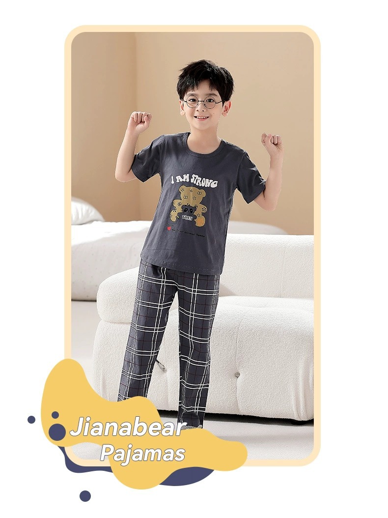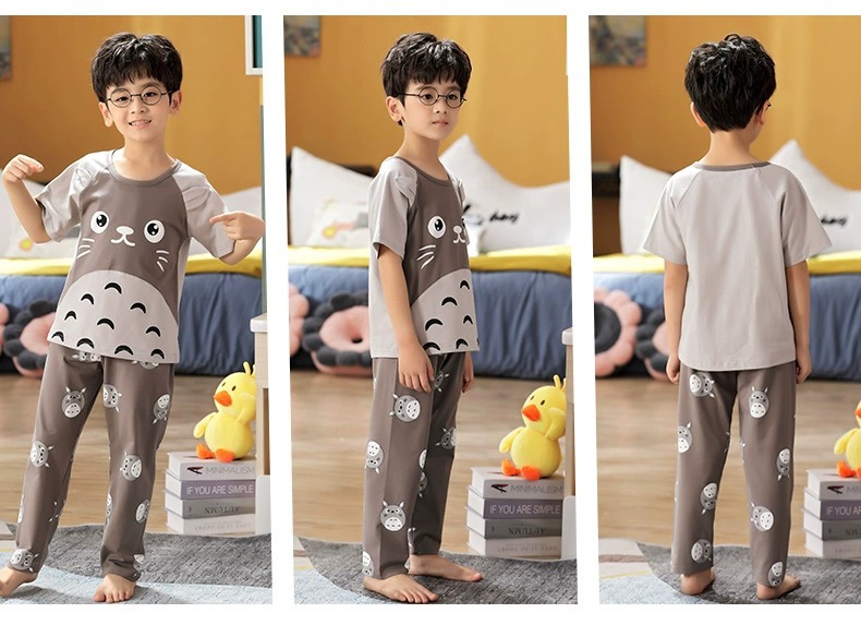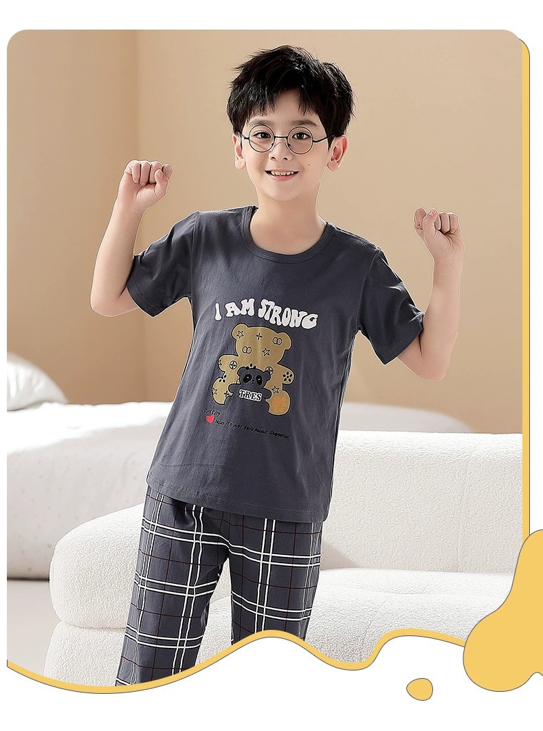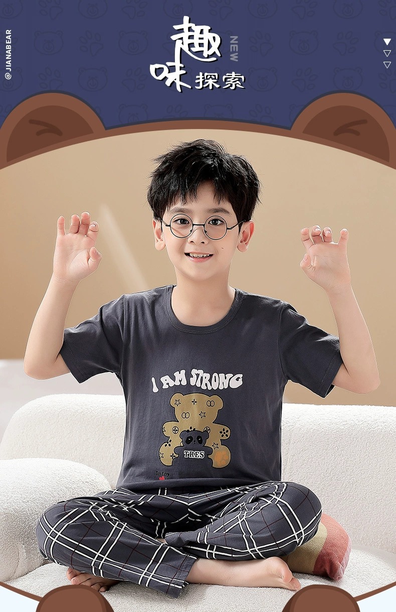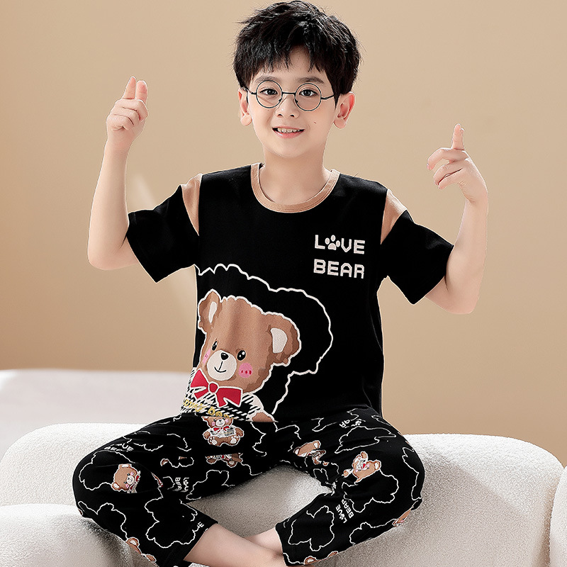 어린이 잠옷 소년의 여름 반팔 바지 소년의 순면 어린이 순면 중형 및 대형 어린이 여름 얇은 가정복스토어 가기