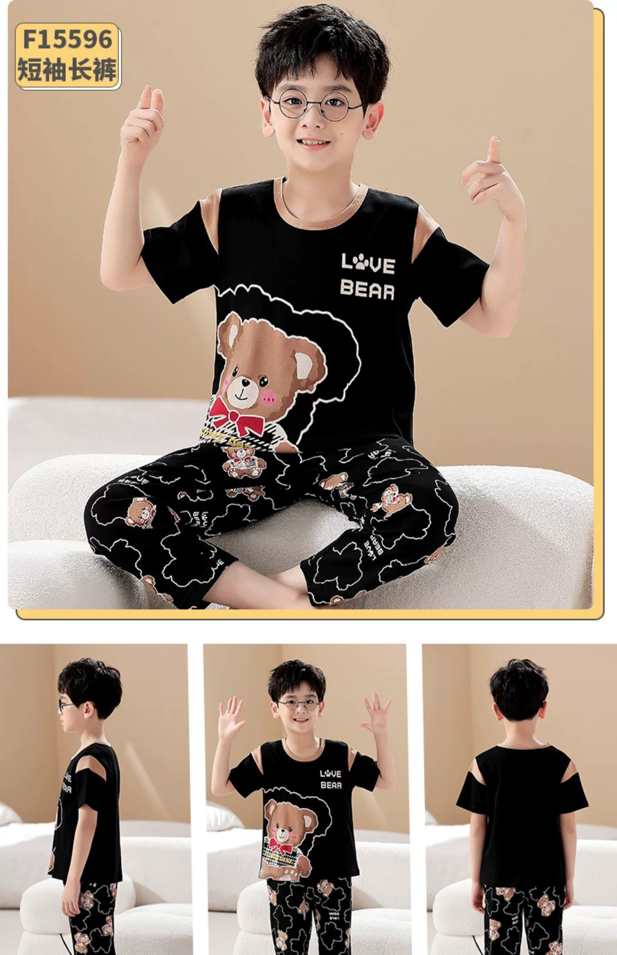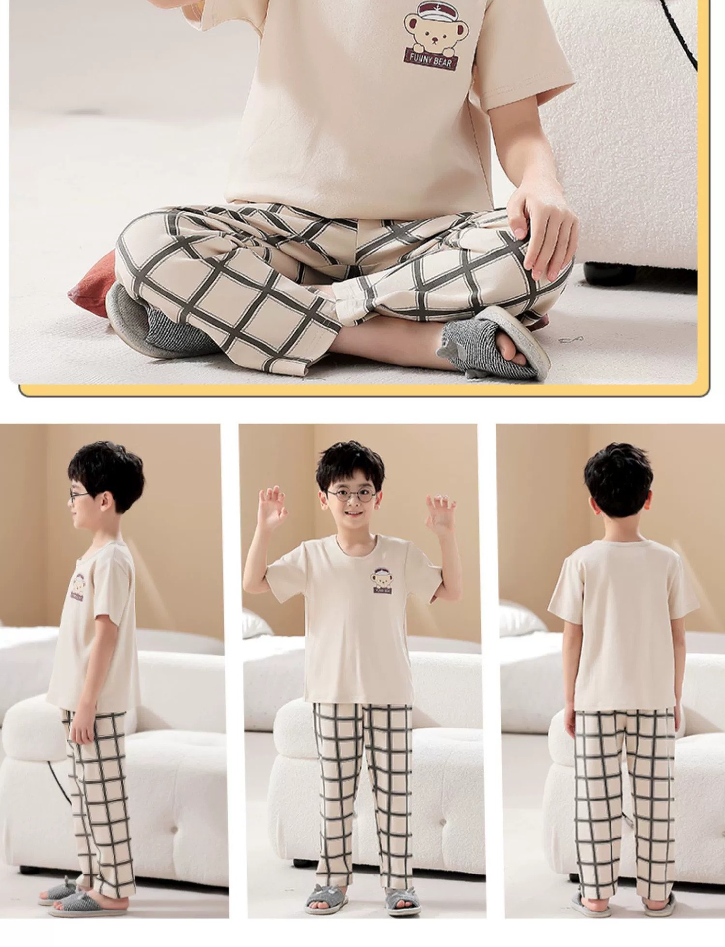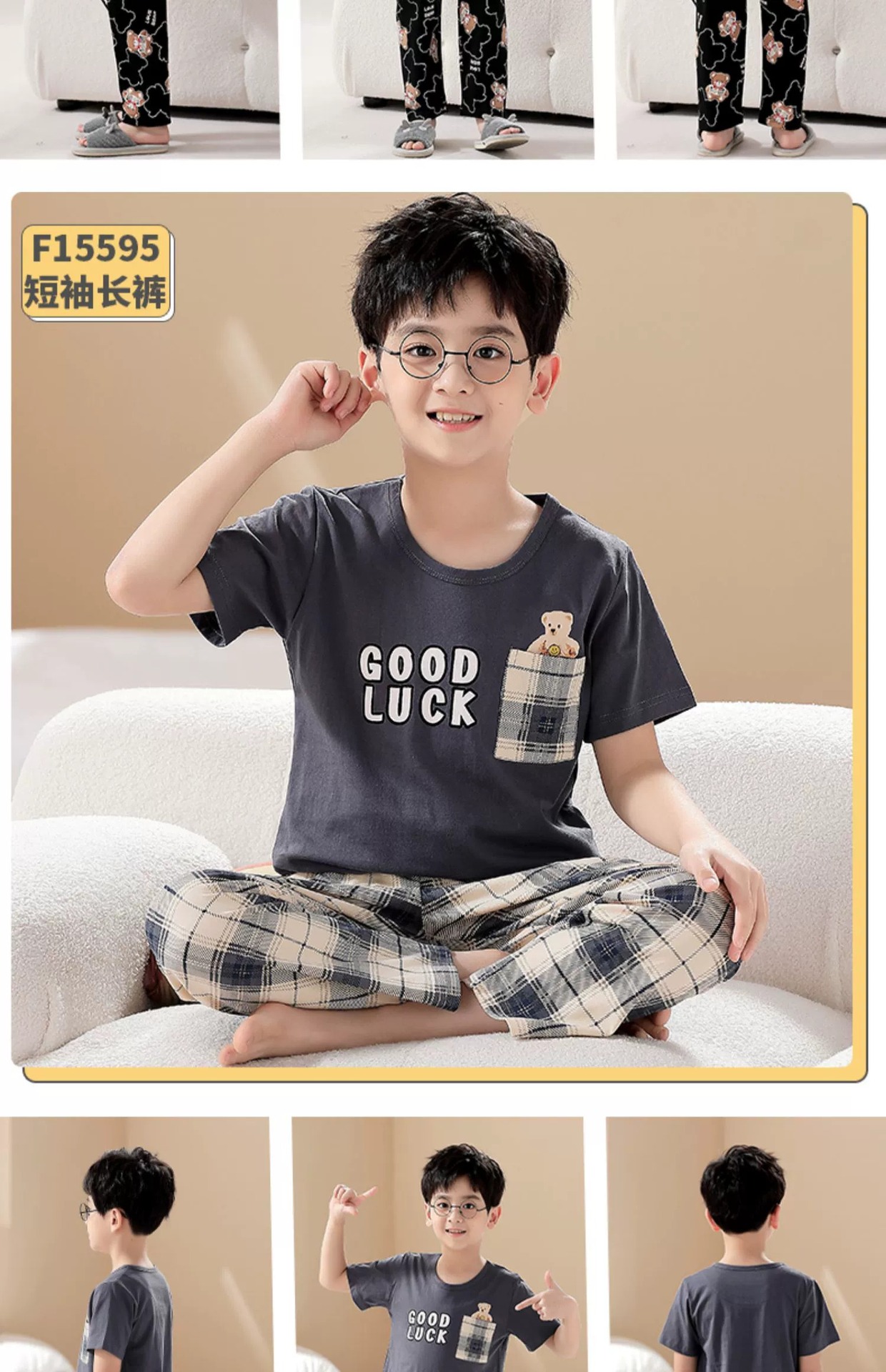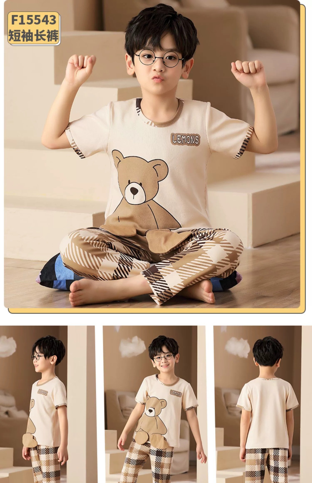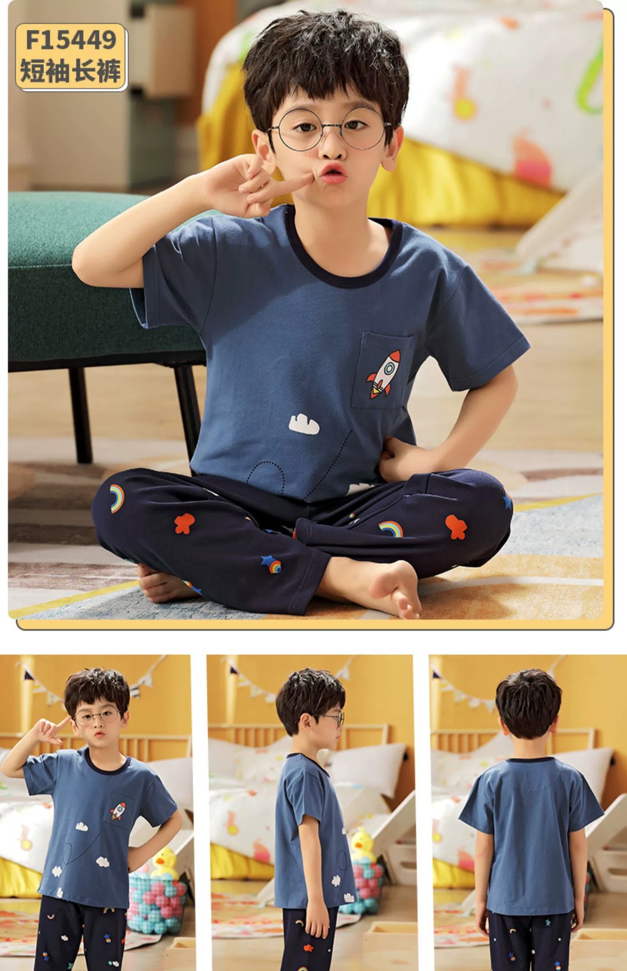 어린이 잠옷 소년의 여름 반팔 바지 소년의 순면 어린이 순면 중형 및 대형 어린이 여름 얇은 가정복스토어 가기