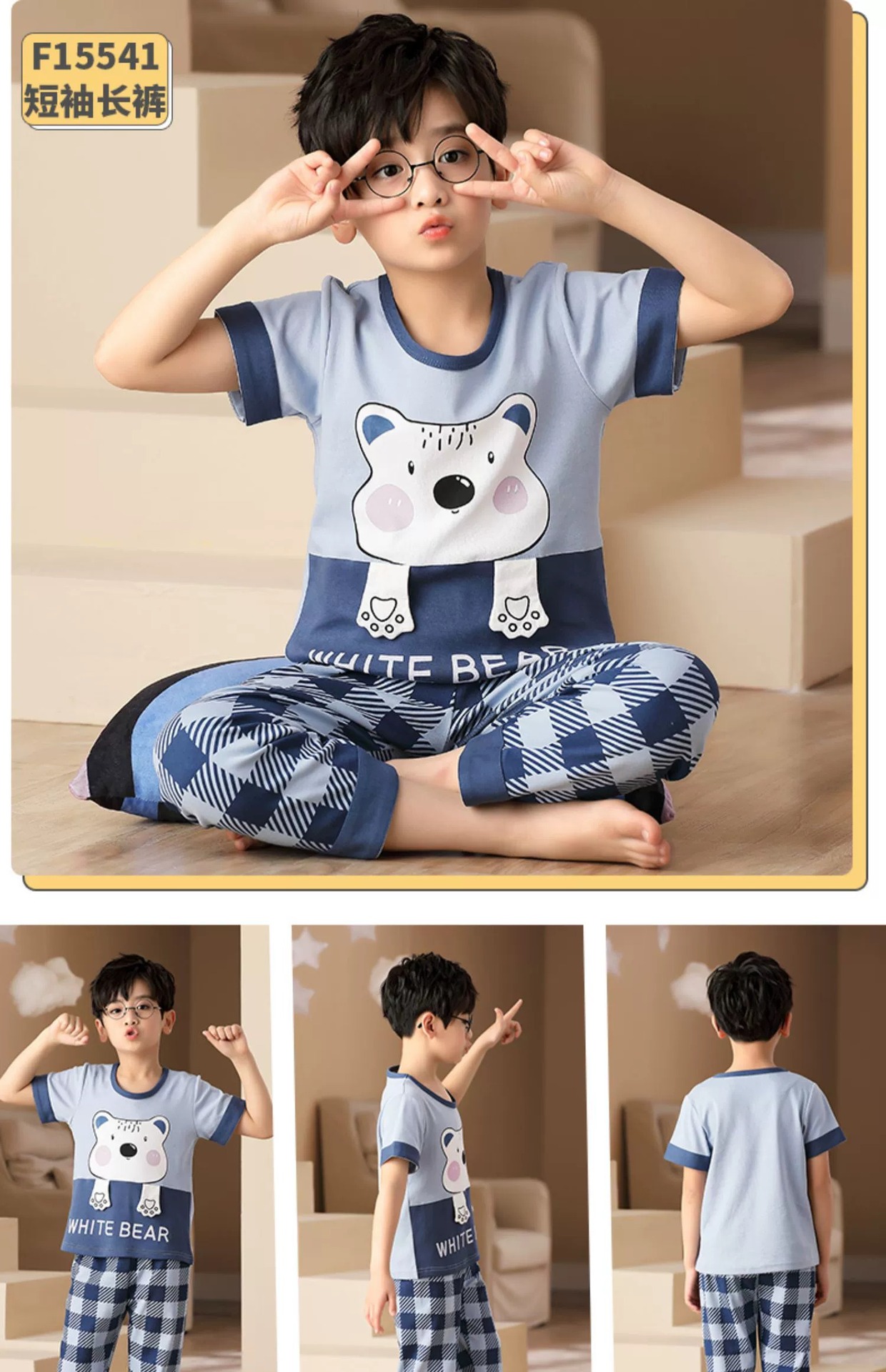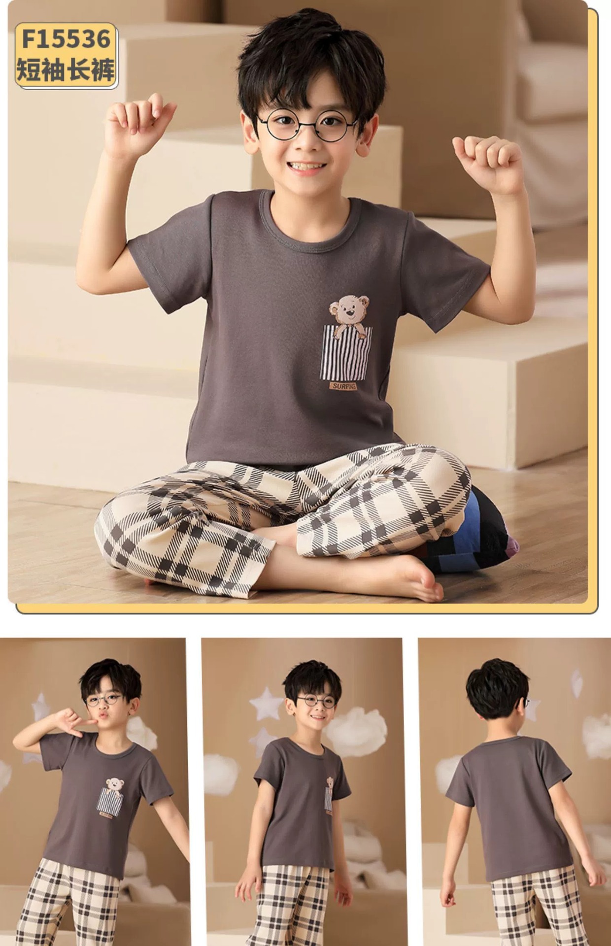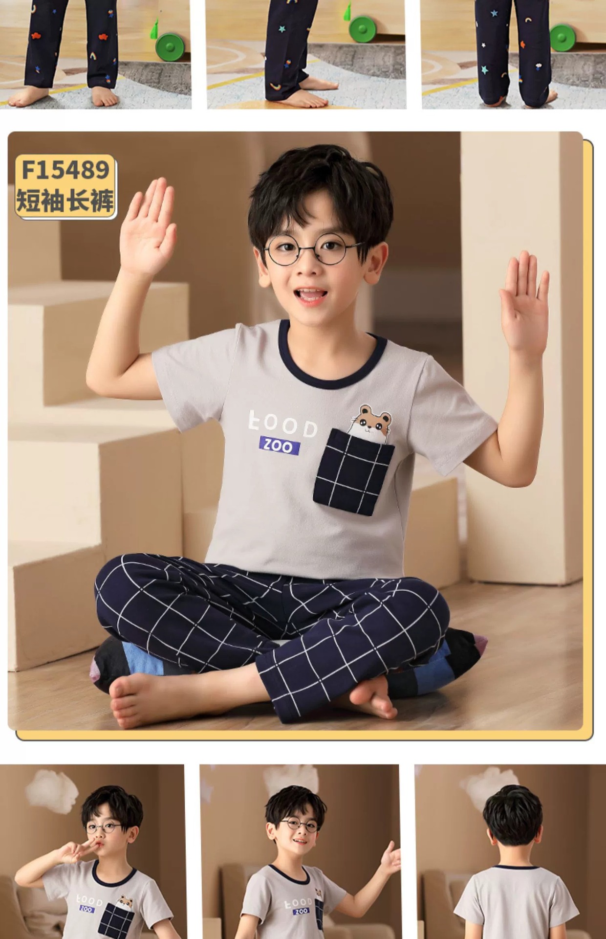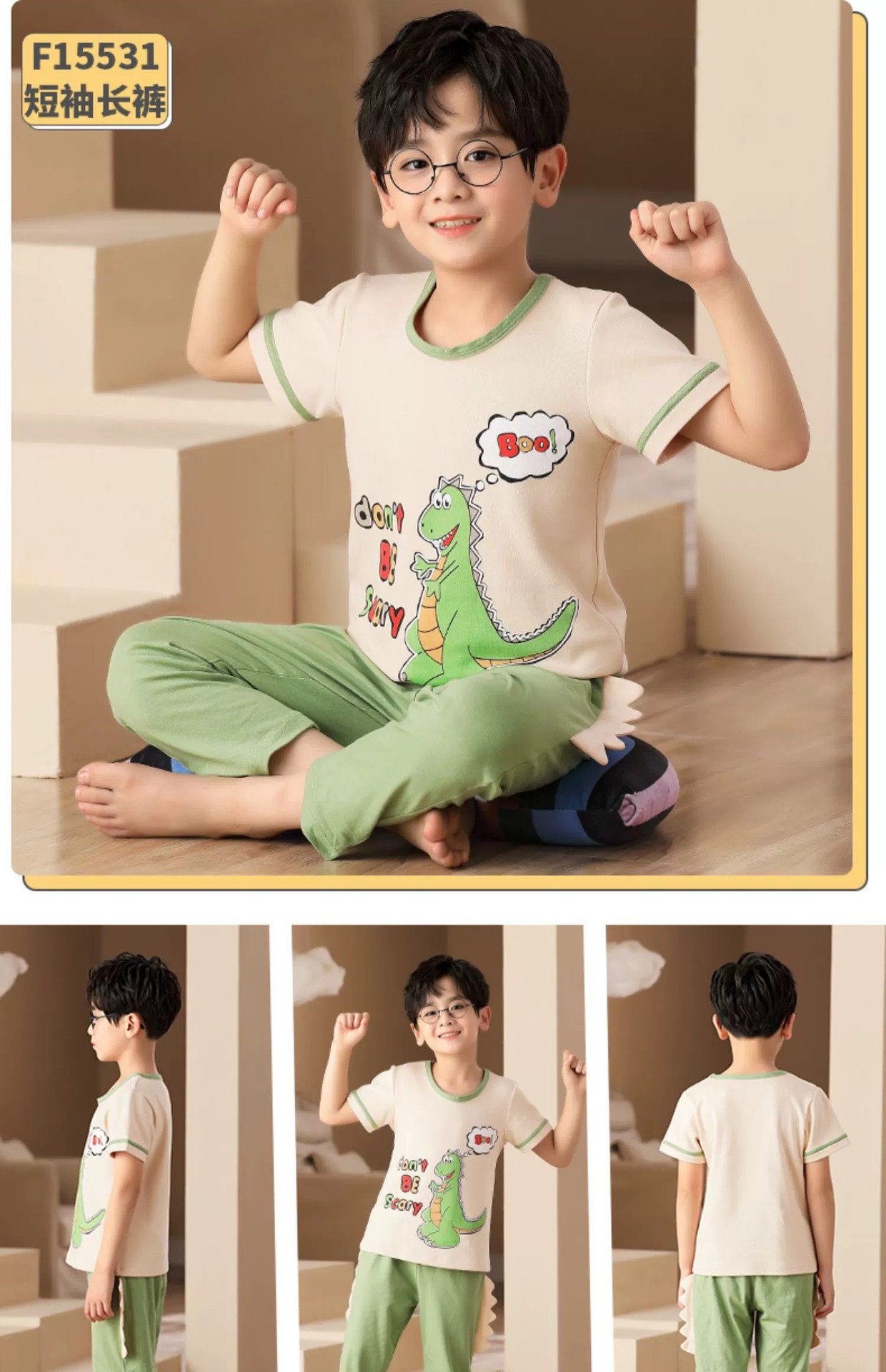 어린이 잠옷 소년의 여름 반팔 바지 소년의 순면 어린이 순면 중형 및 대형 어린이 여름 얇은 가정복스토어 가기