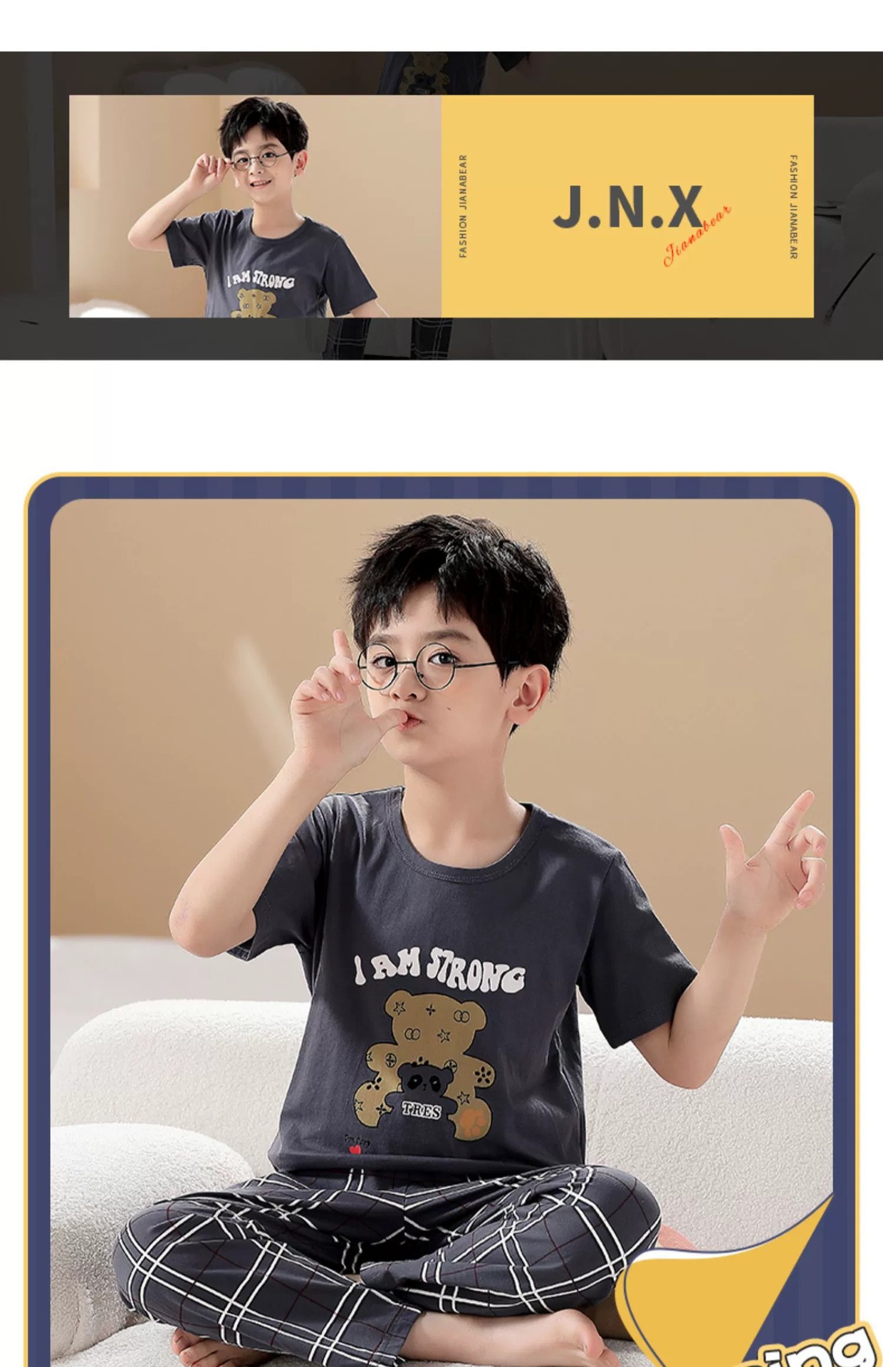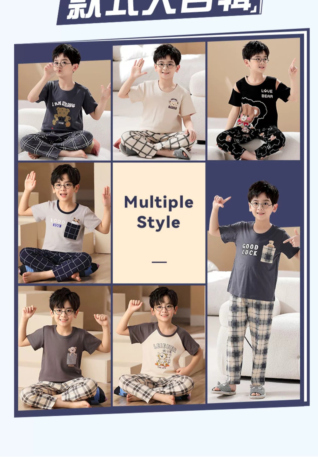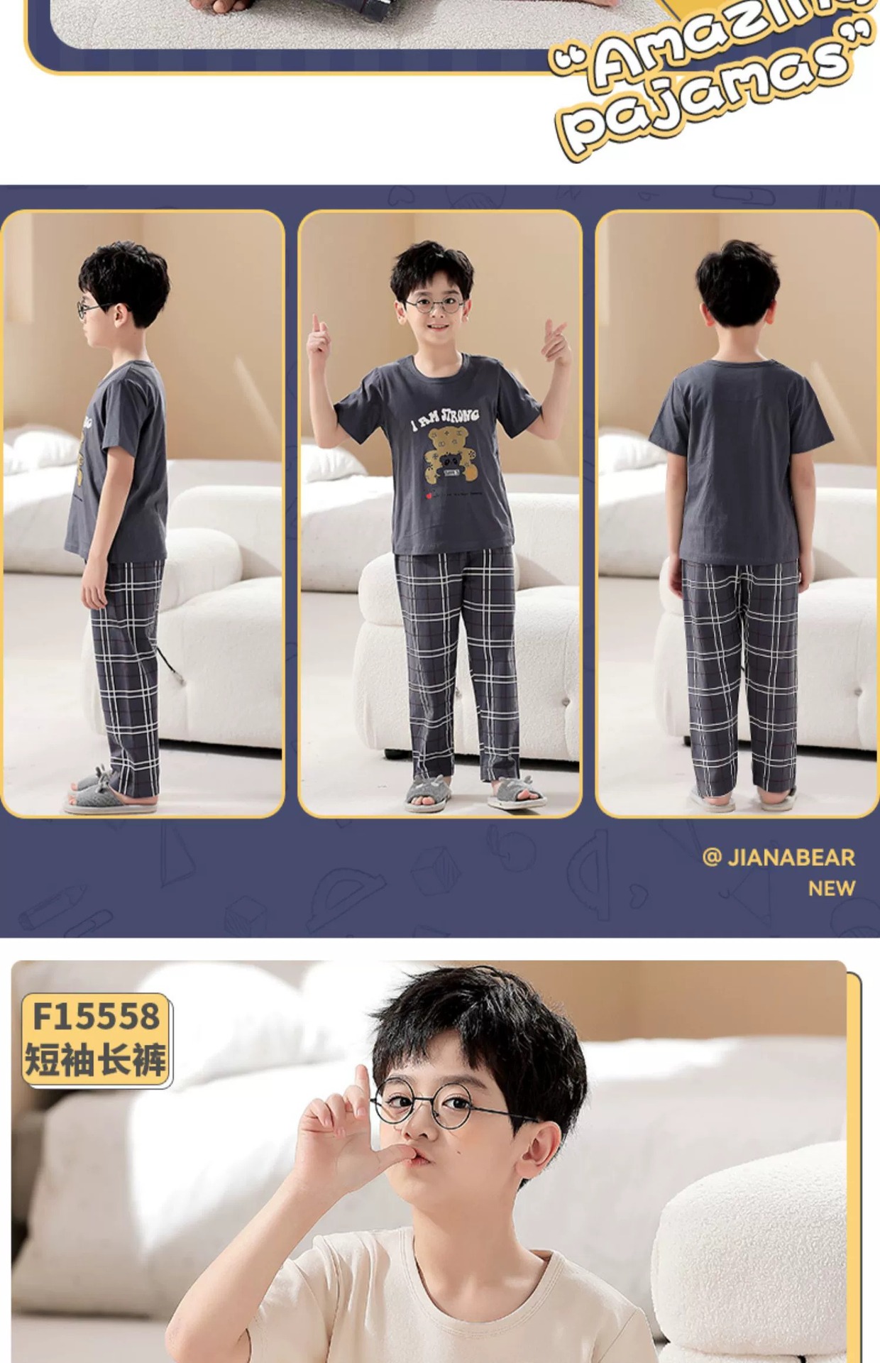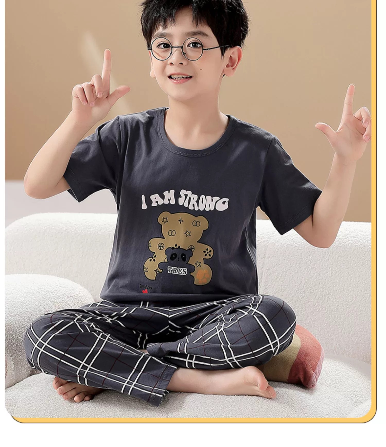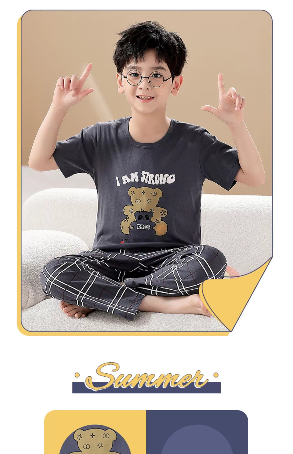 어린이 잠옷 소년의 여름 반팔 바지 소년의 순면 어린이 순면 중형 및 대형 어린이 여름 얇은 가정복스토어 가기