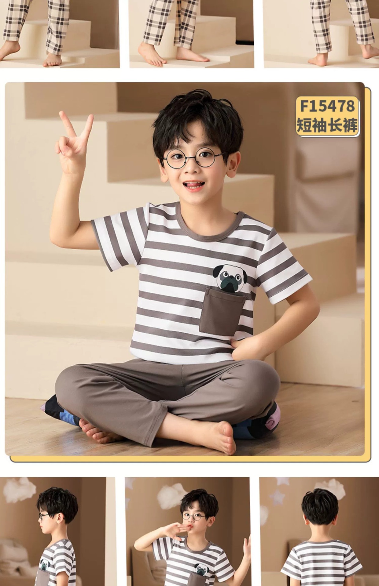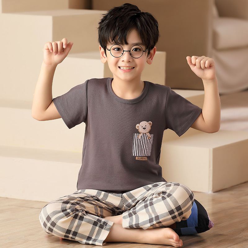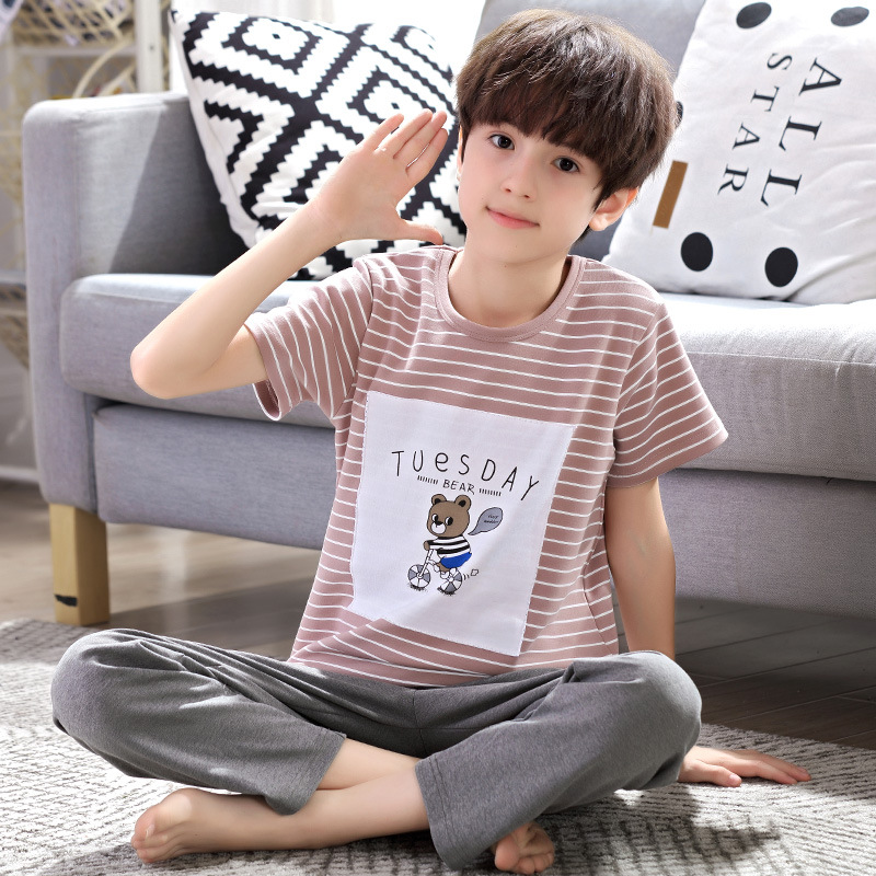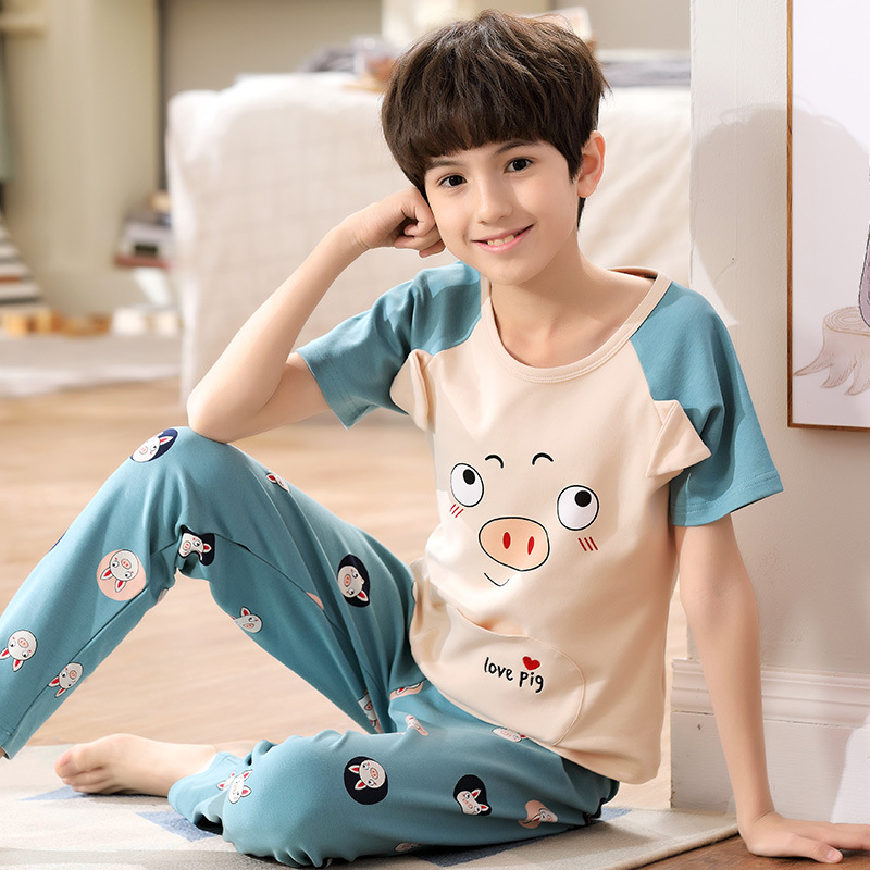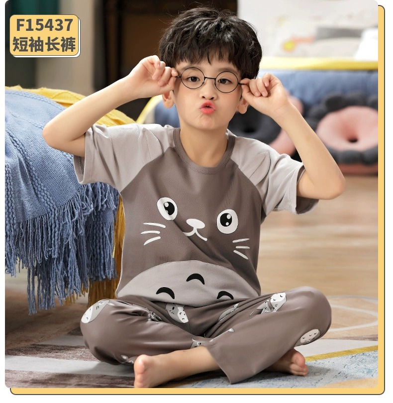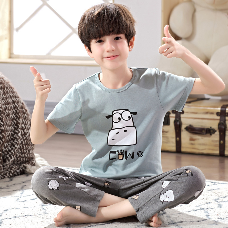 어린이 잠옷 소년의 여름 반팔 바지 소년의 순면 어린이 순면 중형 및 대형 어린이 여름 얇은 가정복