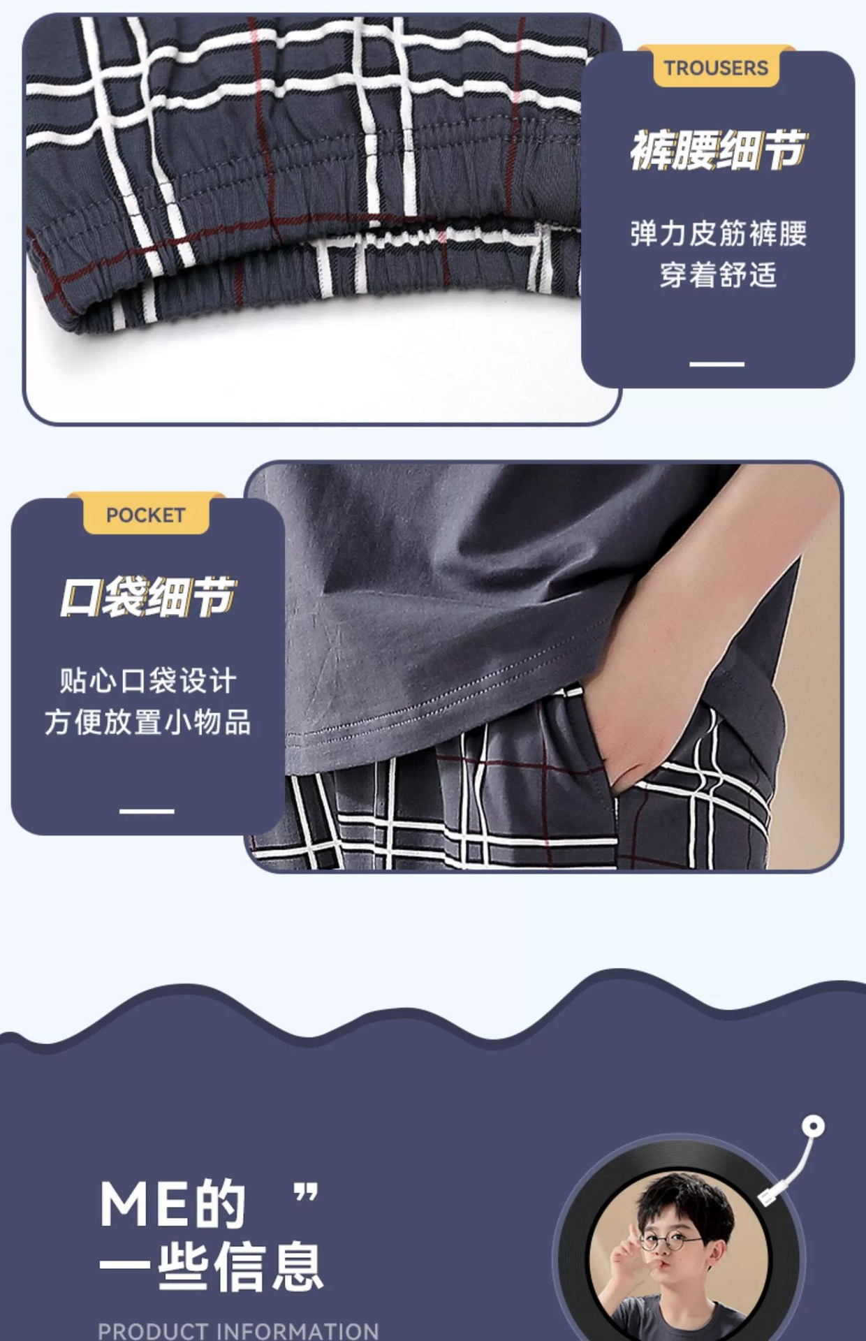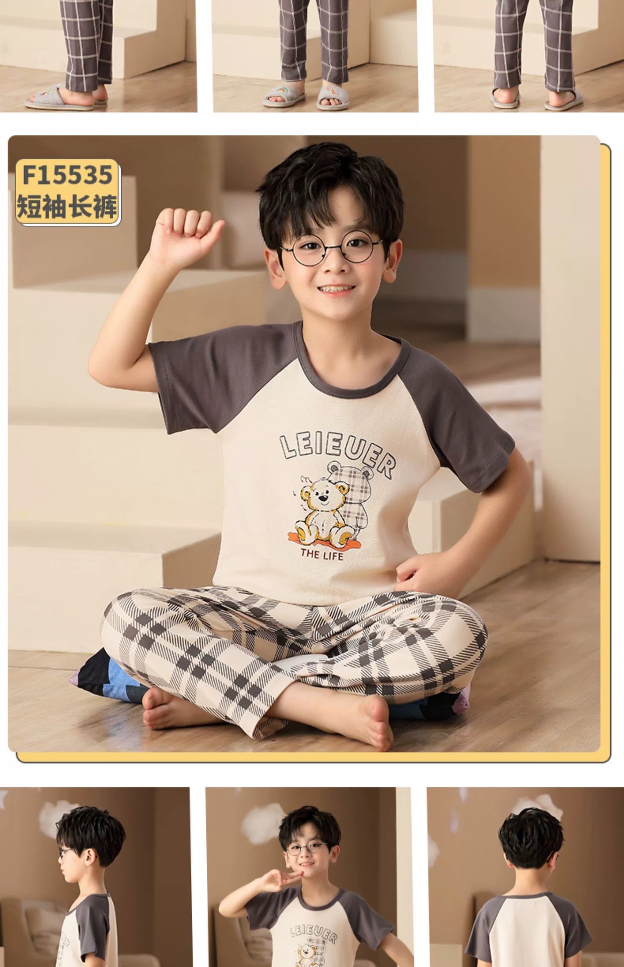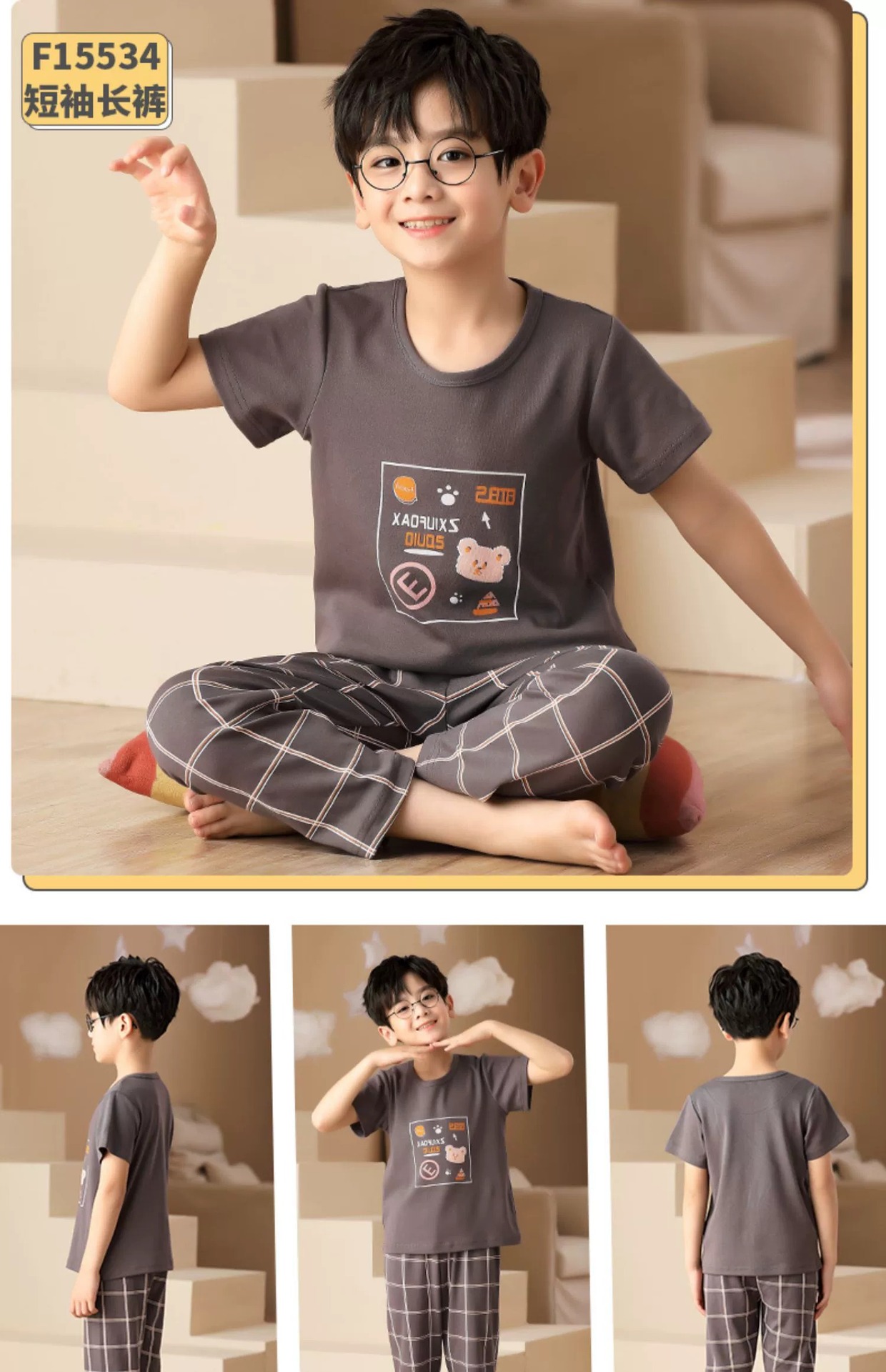 어린이 잠옷 소년의 여름 반팔 바지 소년의 순면 어린이 순면 중형 및 대형 어린이 여름 얇은 가정복