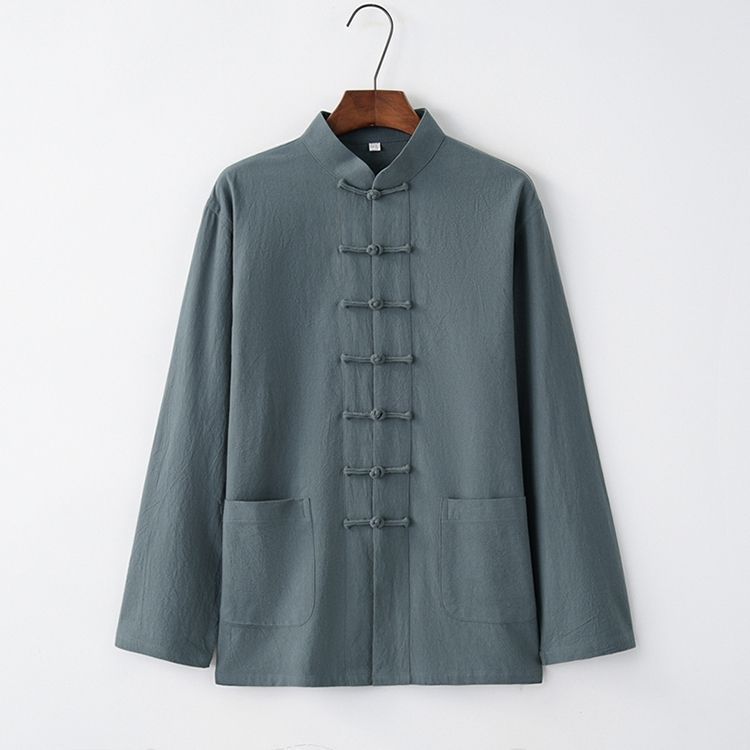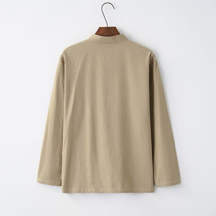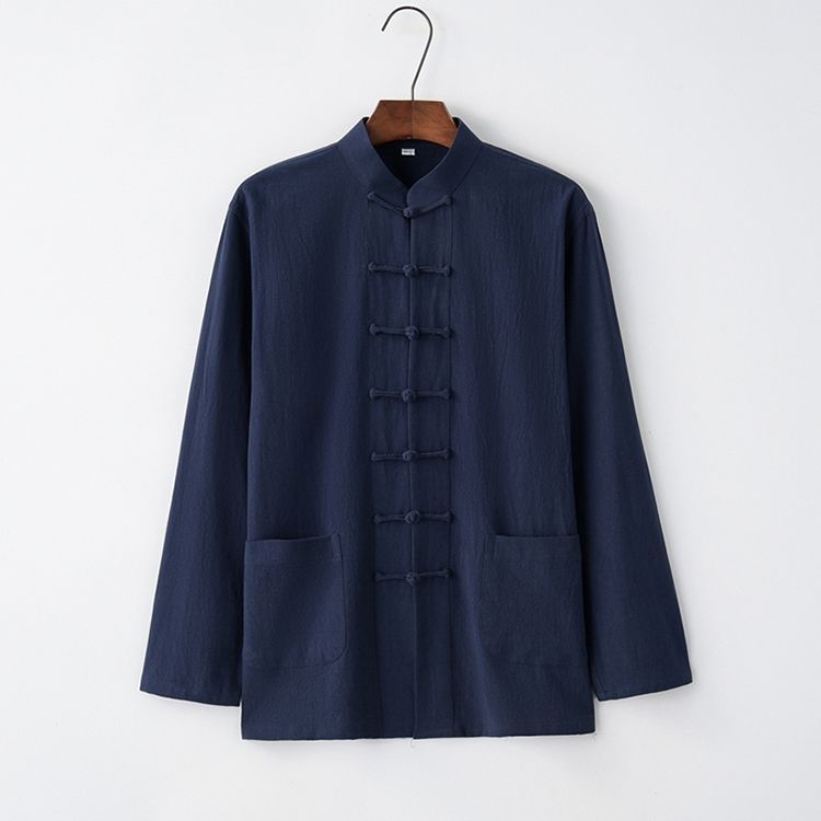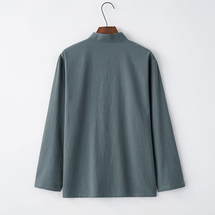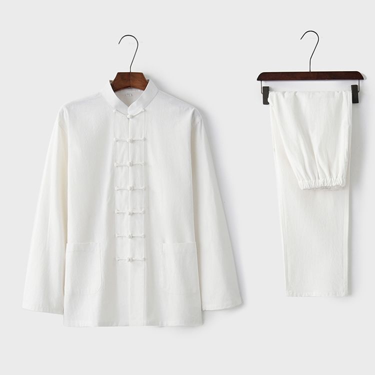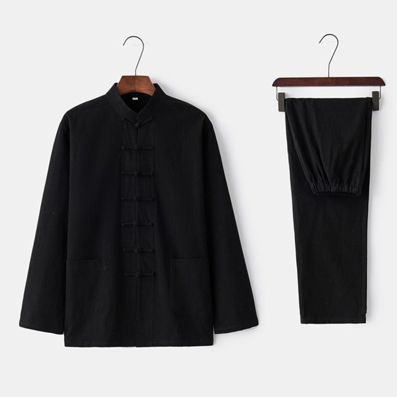 Tang 세트 남성용 Loose Cotton 및 Linen 긴팔 바지 세트 명상 남편 세트 중국 레트로 버클 탑 레트로 남성 의류