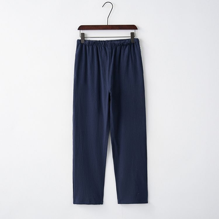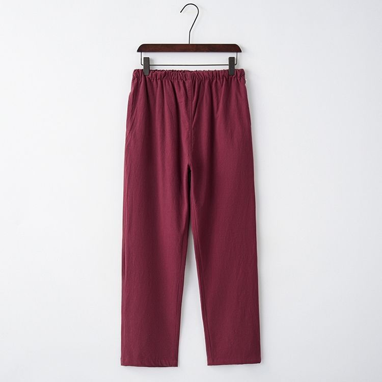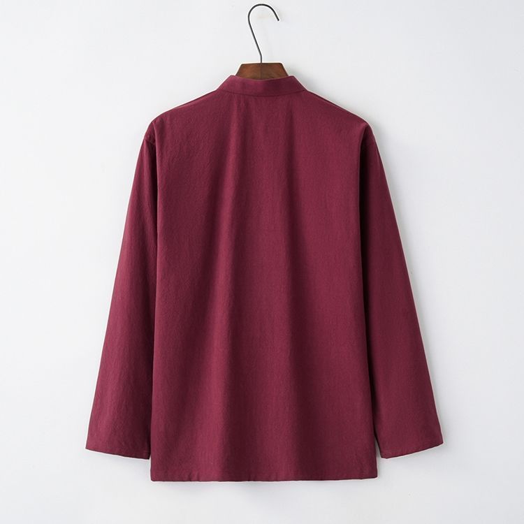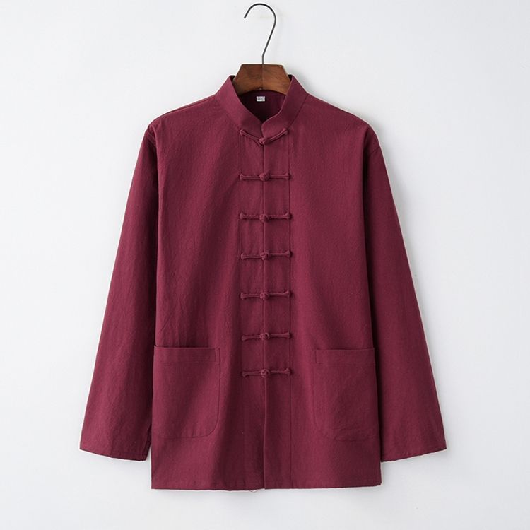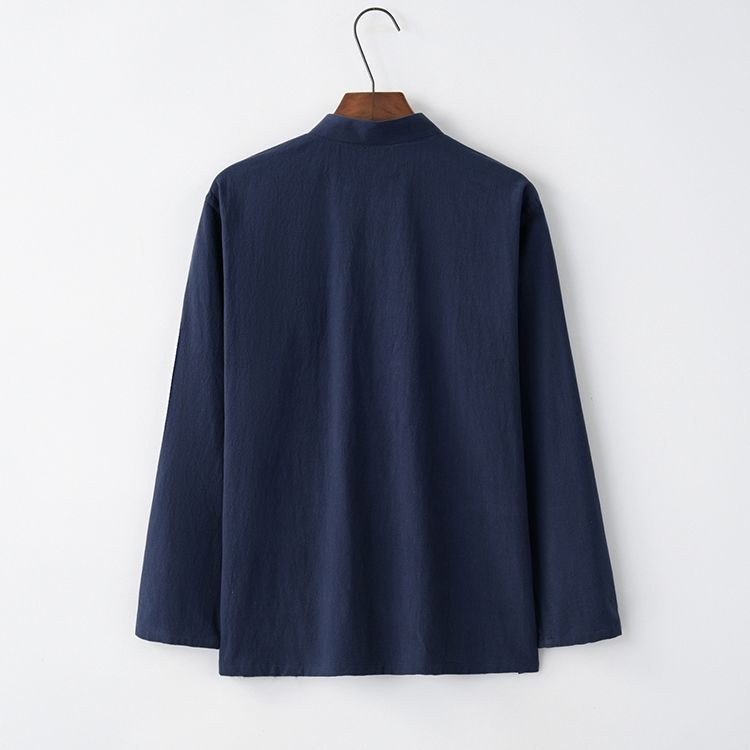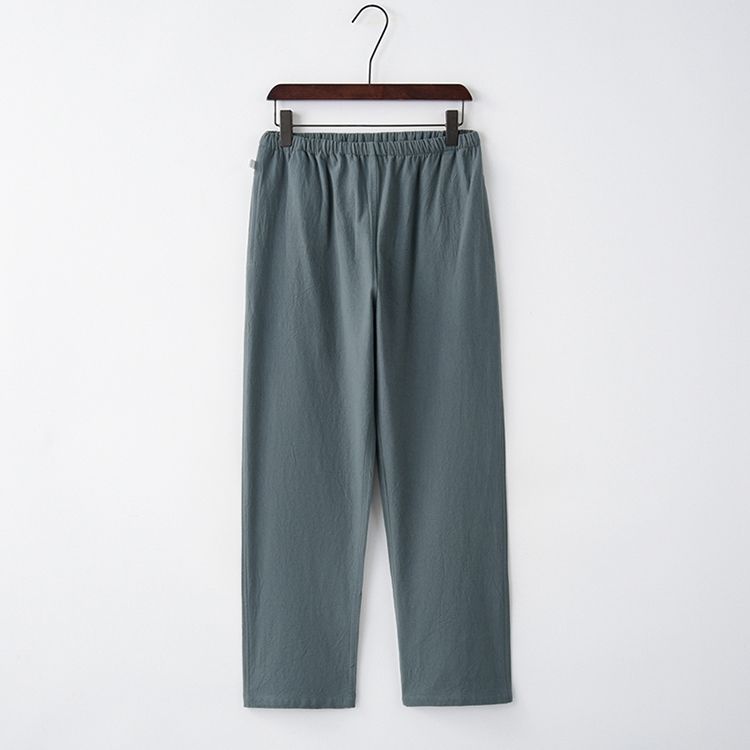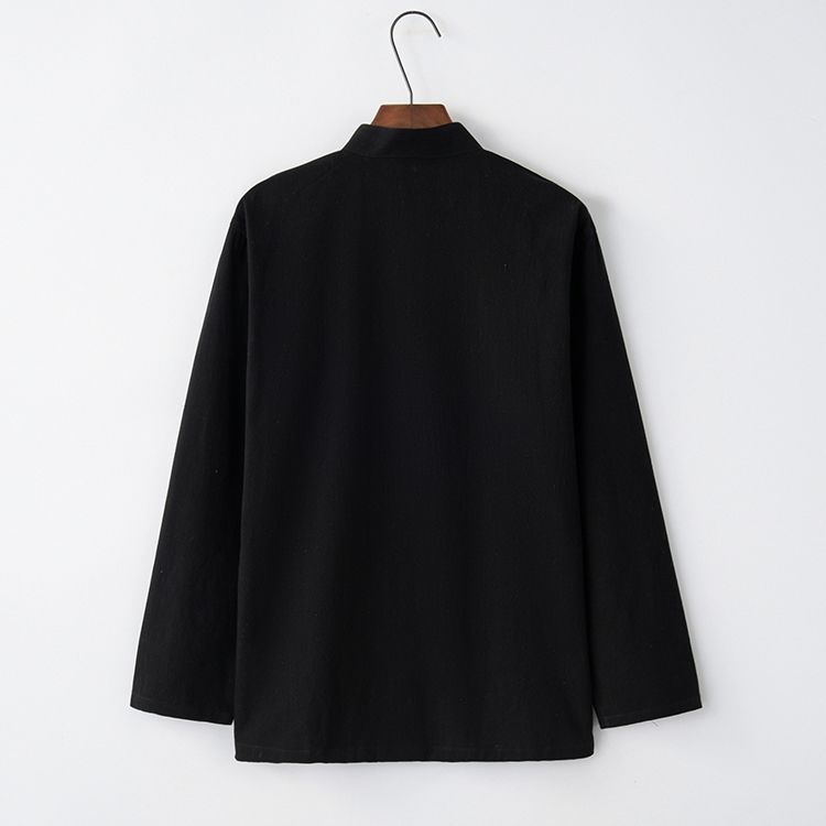 Tang 세트 남성용 Loose Cotton 및 Linen 긴팔 바지 세트 명상 남편 세트 중국 레트로 버클 탑 레트로 남성 의류