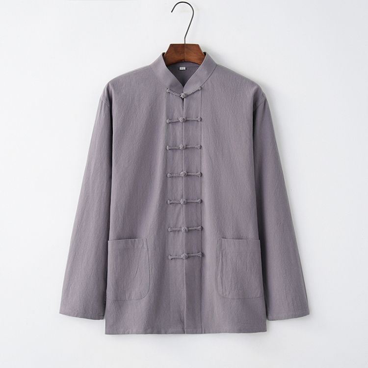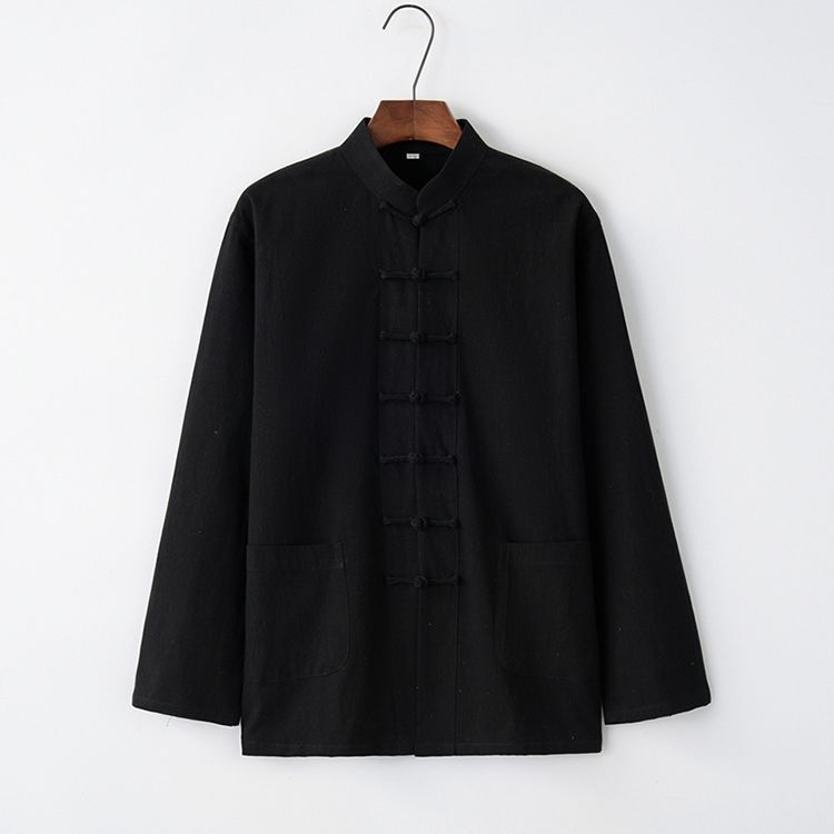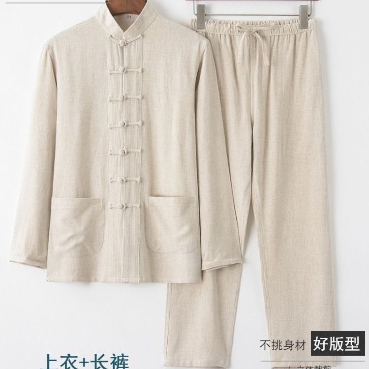 Tang 세트 남성용 Loose Cotton 및 Linen 긴팔 바지 세트 명상 남편 세트 중국 레트로 버클 탑 레트로 남성 의류스토어 가기
