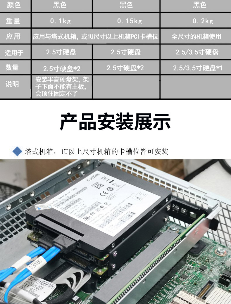 • 검정색 2.5inch 하드 드라이브 랙 전체 높이 12CM PCI 슬롯 나사 포함