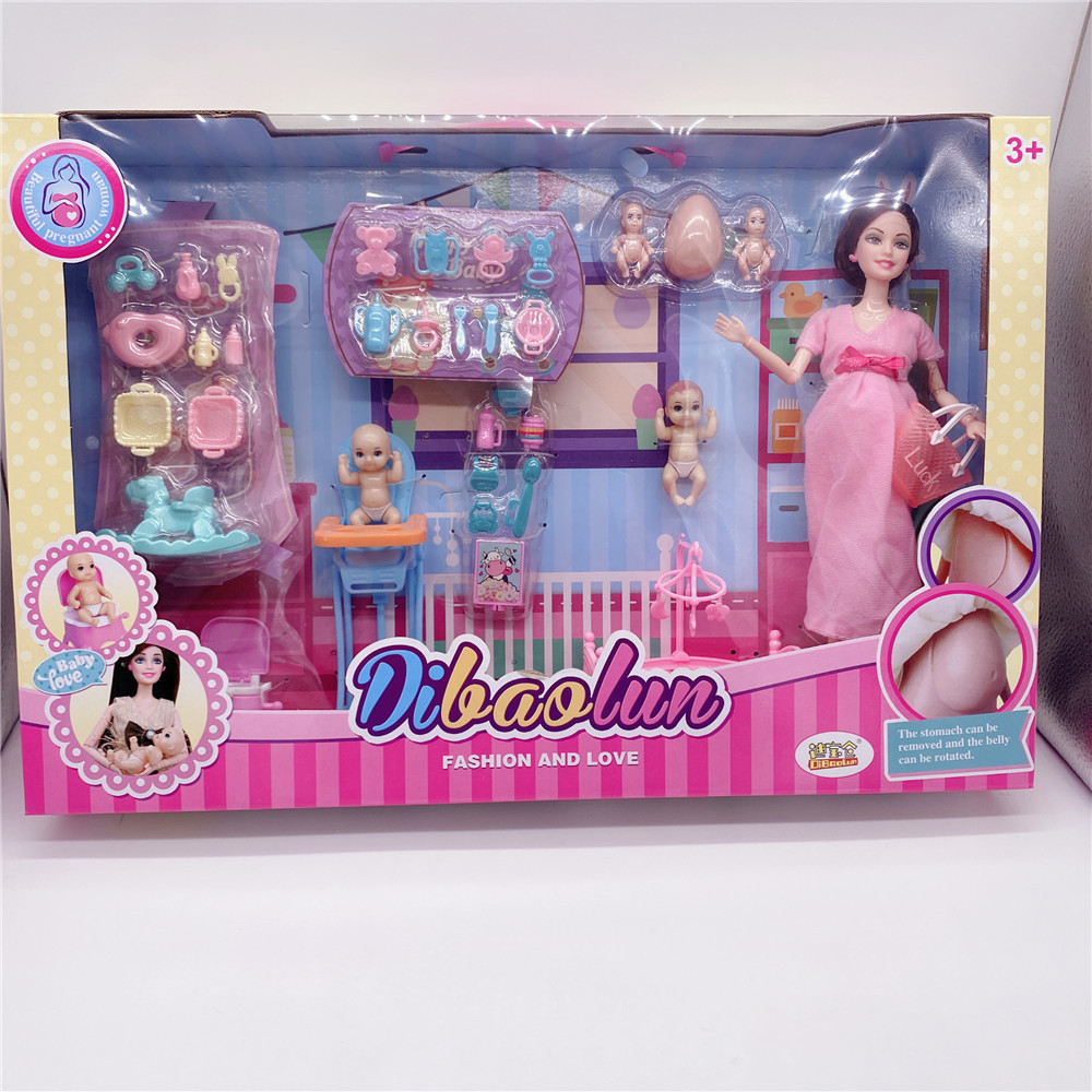 New 5 명 패밀리 콤비 엄마와 아빠/컬러 박스 식기 이층 침대 임신 배 엄마 인형 30cm스토어 가기