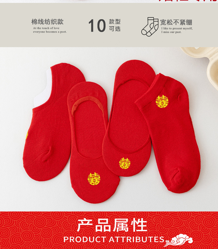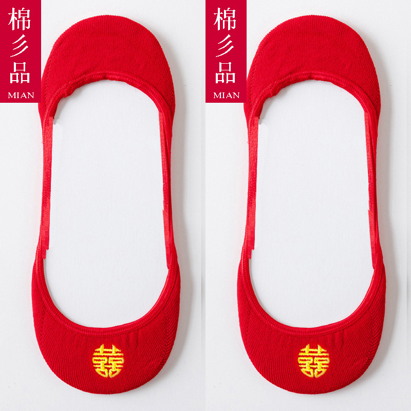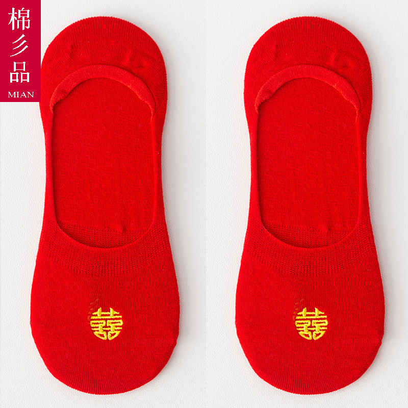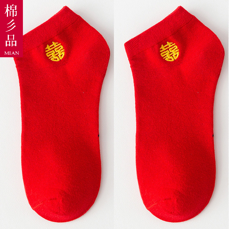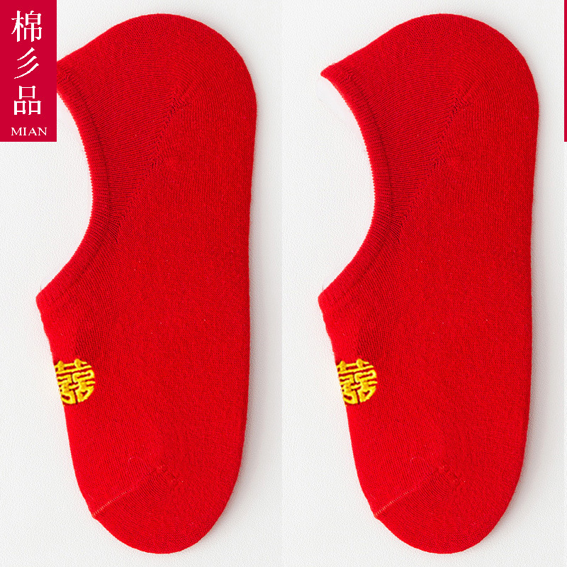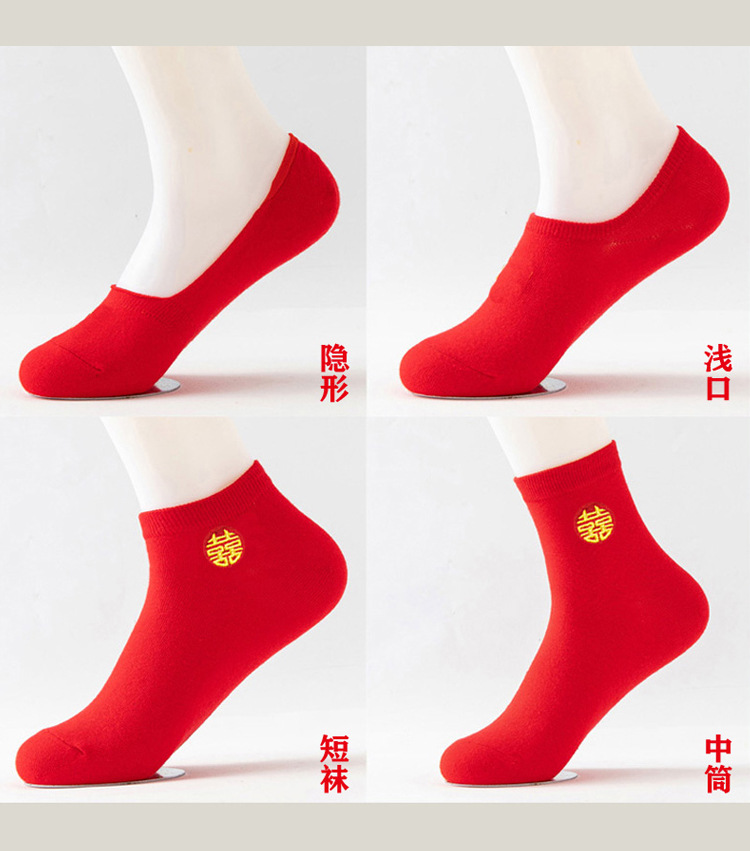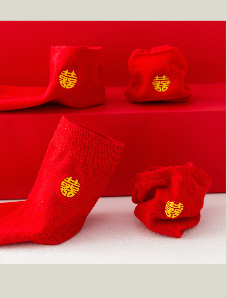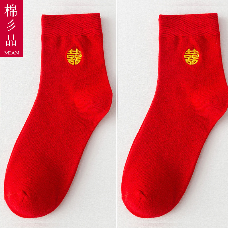 웨딩 레드 양말 수 놓은 해피 보트 양말 남자와 여자를위한 빨간 웨딩 양말스토어 가기