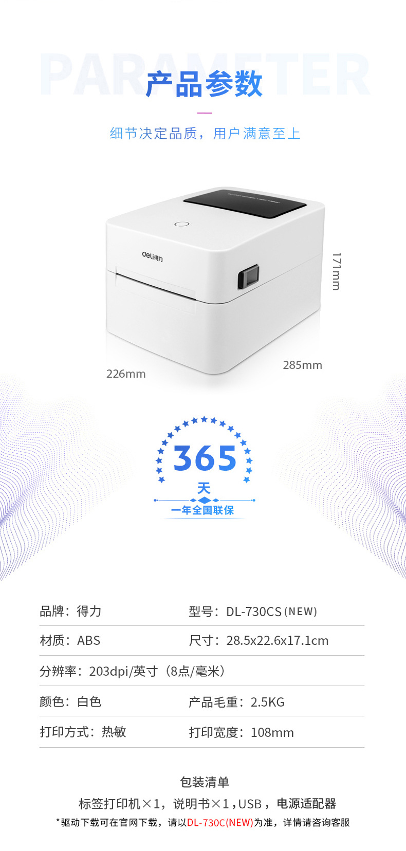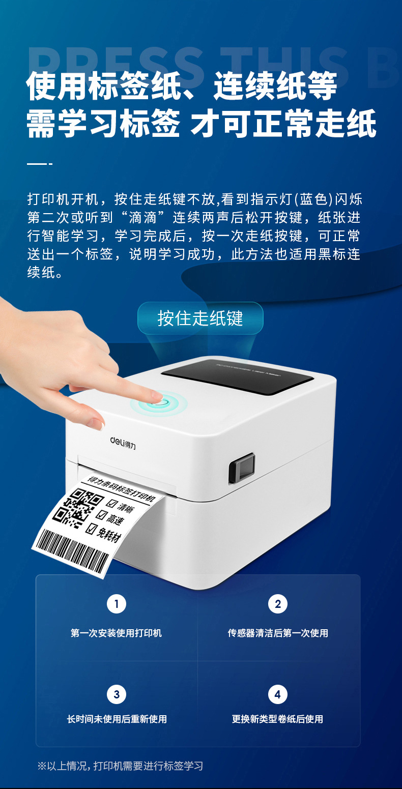 델리 730CS 전자 표면 단일 프린터 가정용 접착 QR 코드 열 익스프레스 단일 라벨 프린터