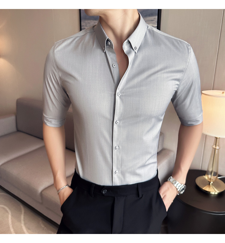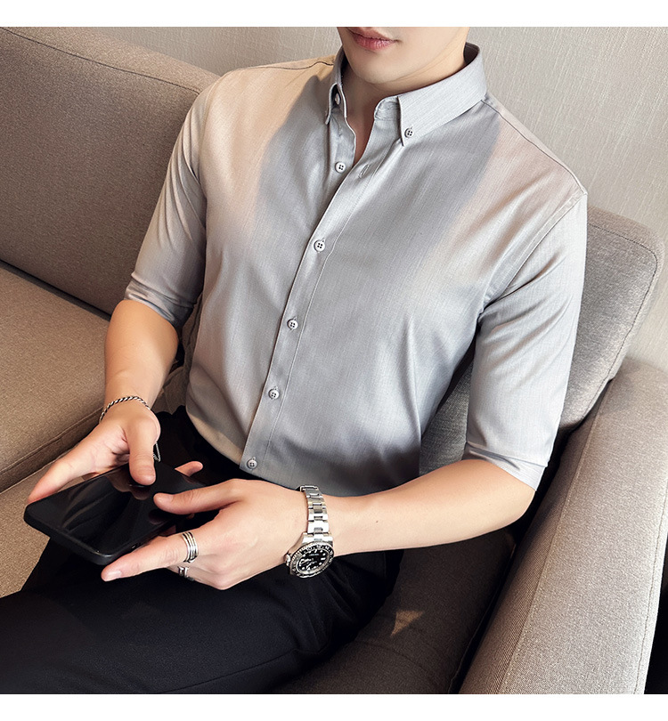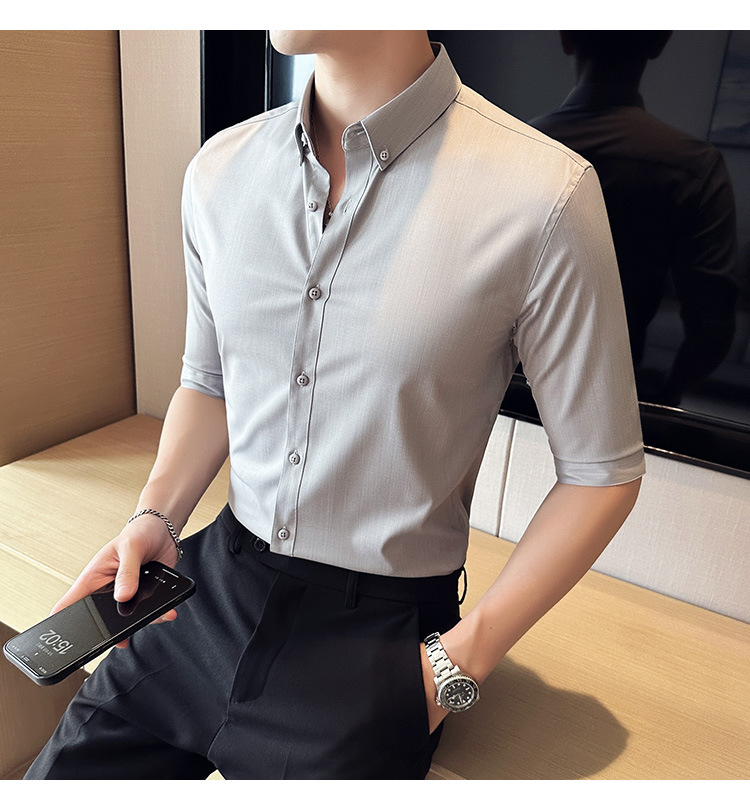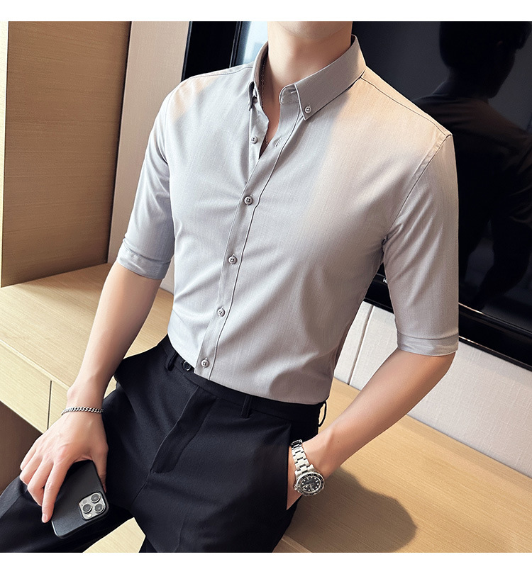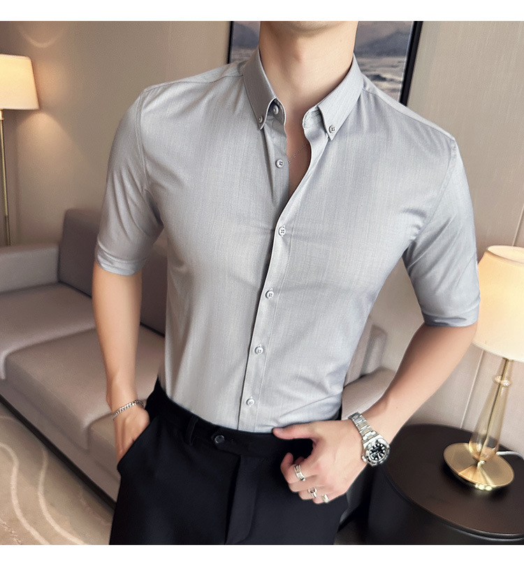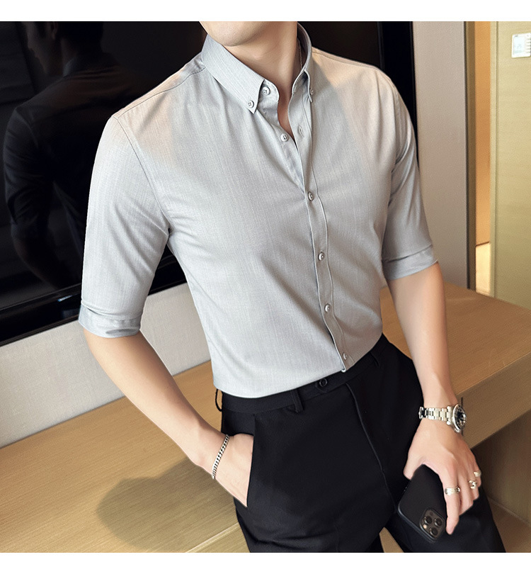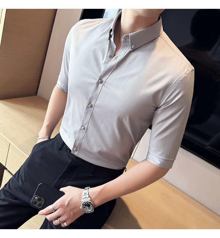 그물 연예인 여름 새로운 남자의 중간 소매 셔츠 영국 스타일 질감 비즈니스 5 소매 셔츠 쉐이크 보이스 라이브 공급