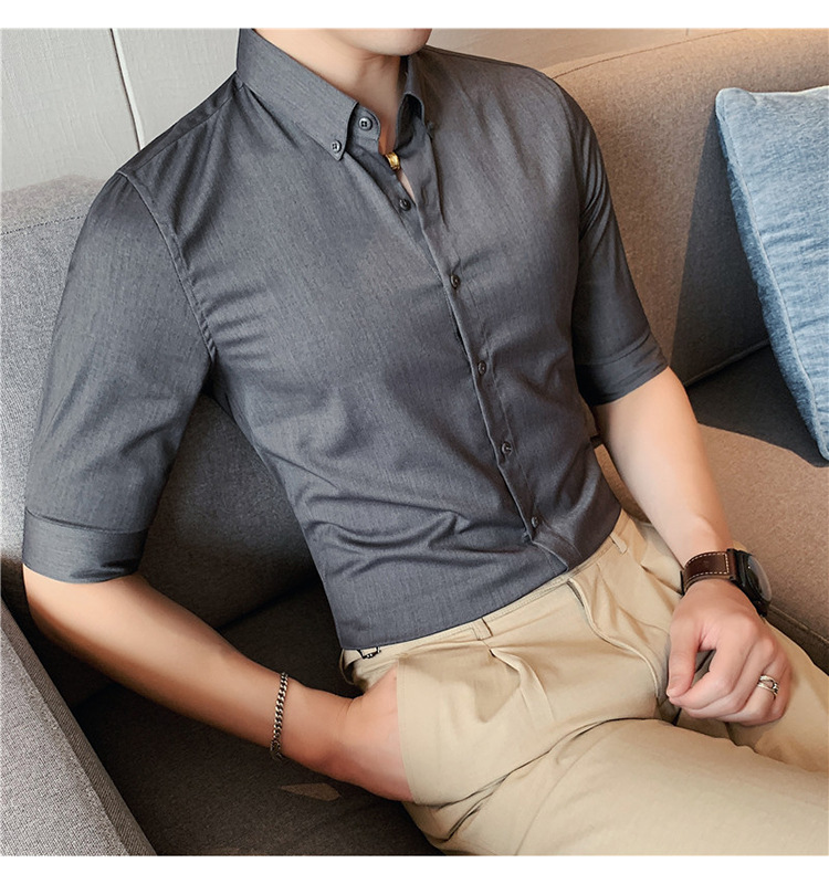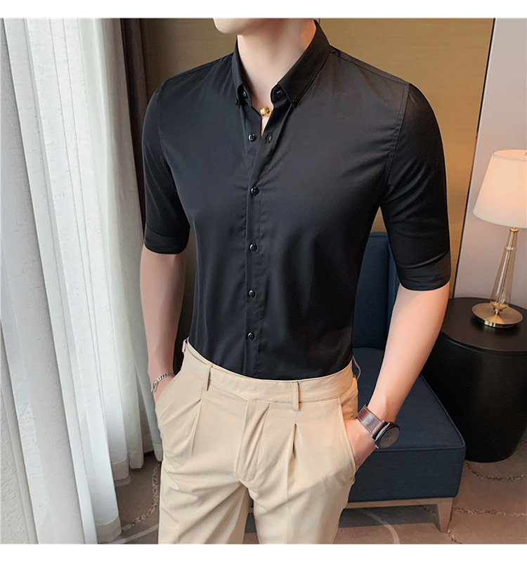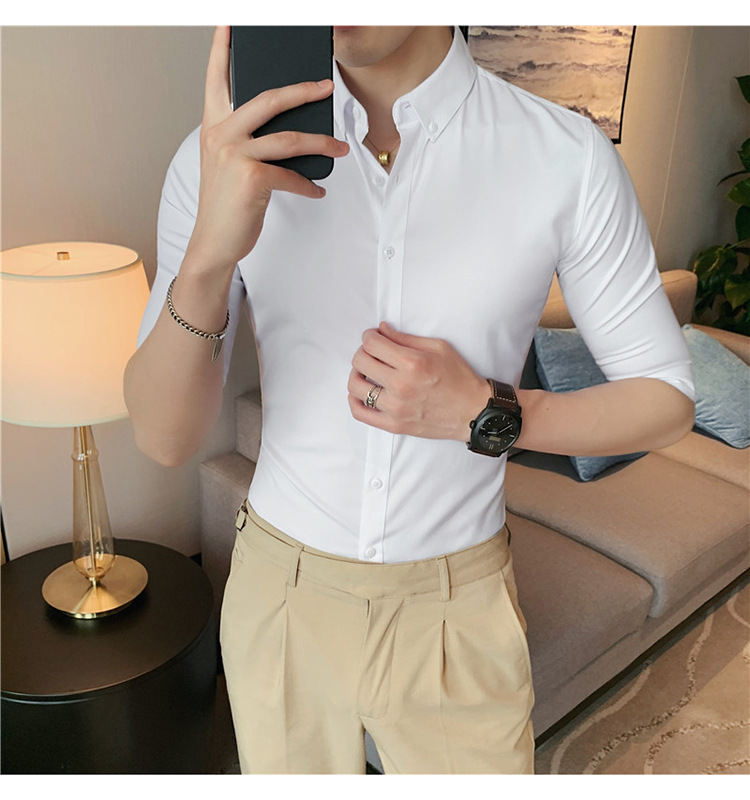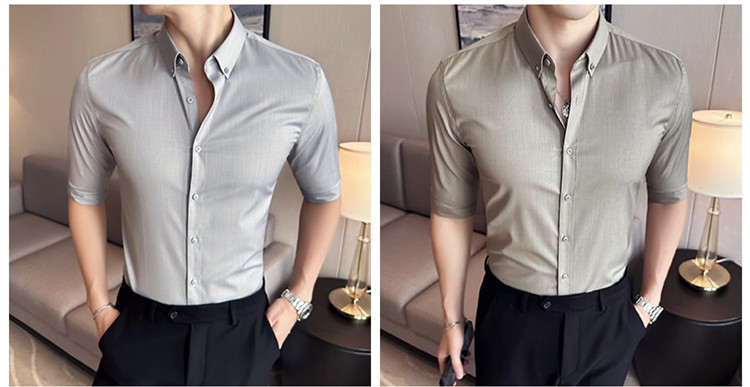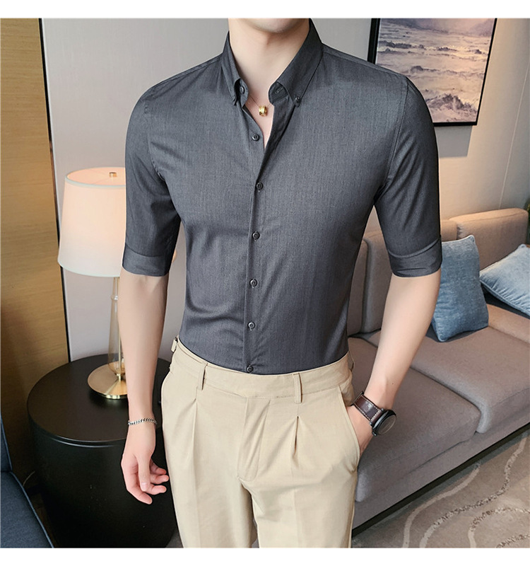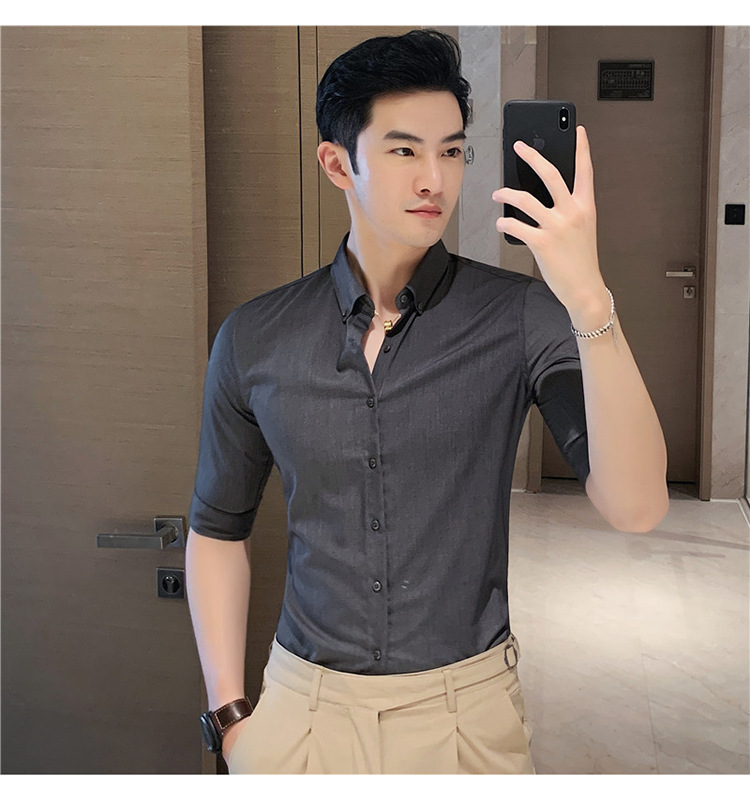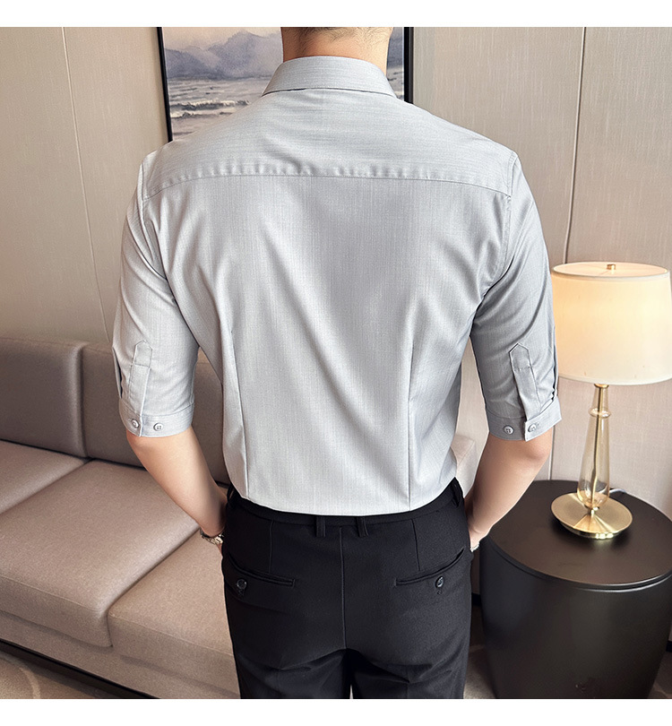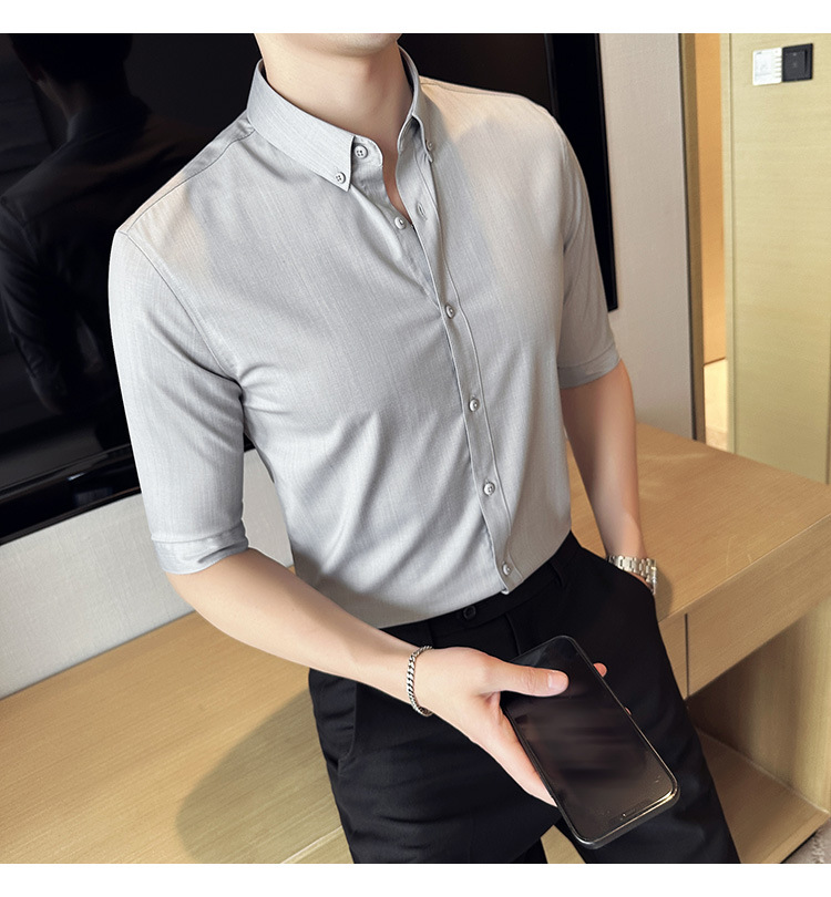 그물 연예인 여름 새로운 남자의 중간 소매 셔츠 영국 스타일 질감 비즈니스 5 소매 셔츠 쉐이크 보이스 라이브 공급
