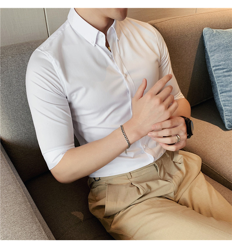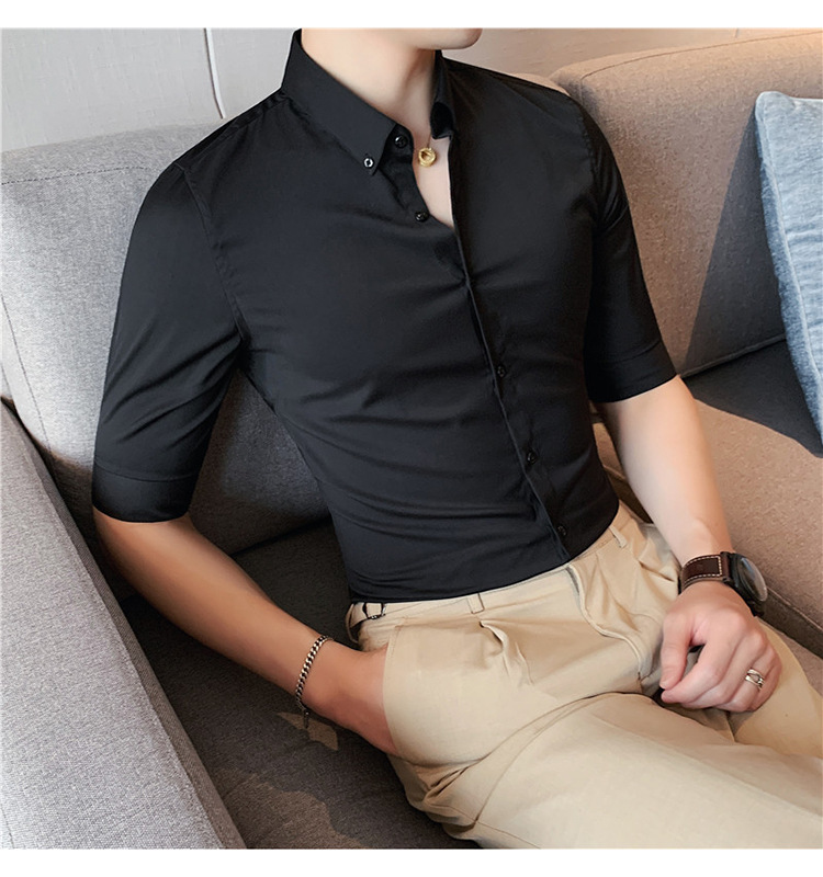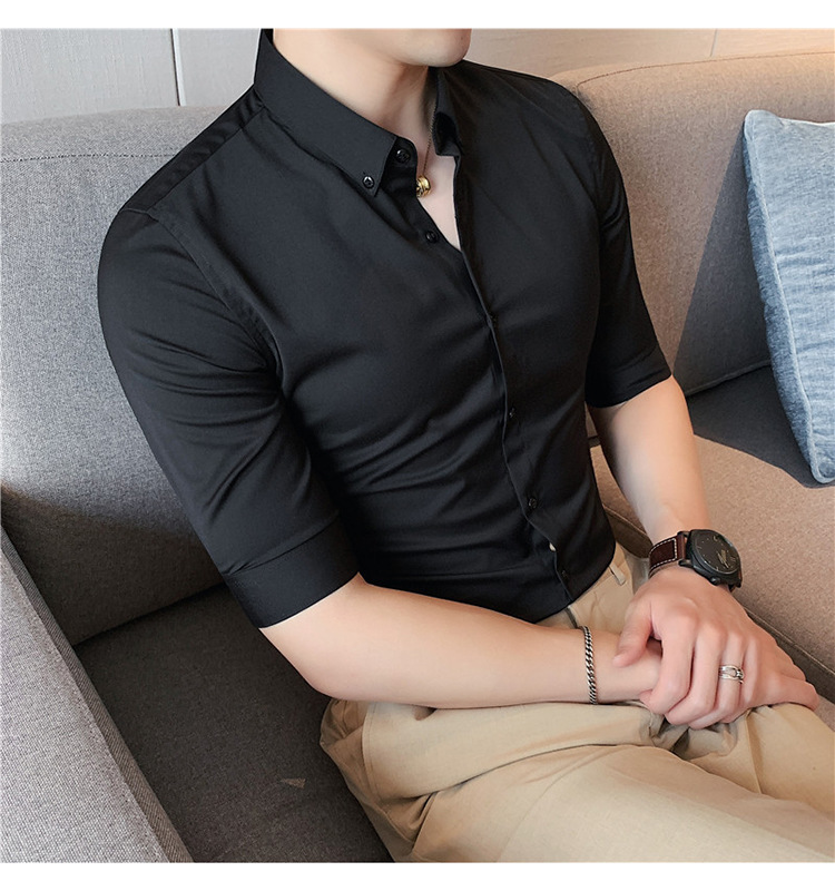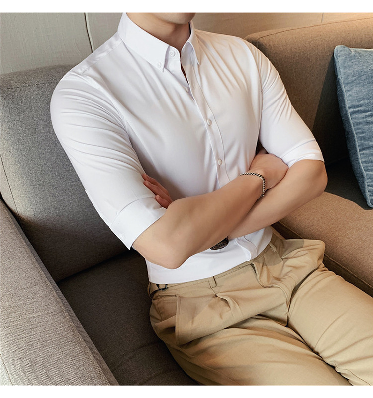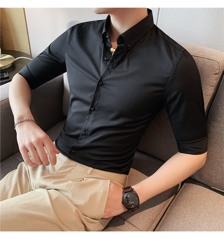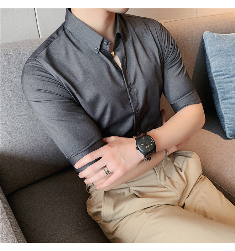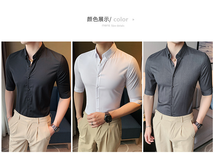 그물 연예인 여름 새로운 남자의 중간 소매 셔츠 영국 스타일 질감 비즈니스 5 소매 셔츠 쉐이크 보이스 라이브 공급