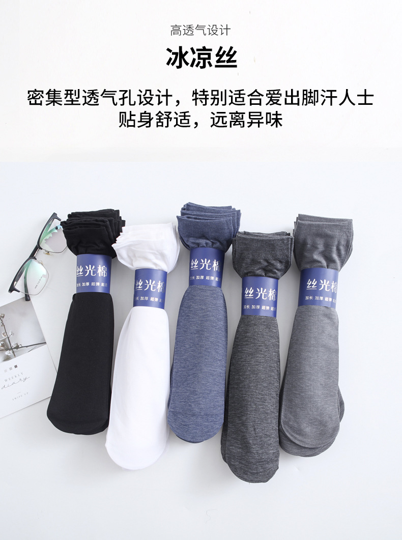10 실크 스타킹 남성용 얇은 미드 배럴 남성용 봄과 여름 아이스 실크 통기성 짧은 배럴 머서라이즈드 면 미끄럼 방지 비즈니스 내마모성 양말