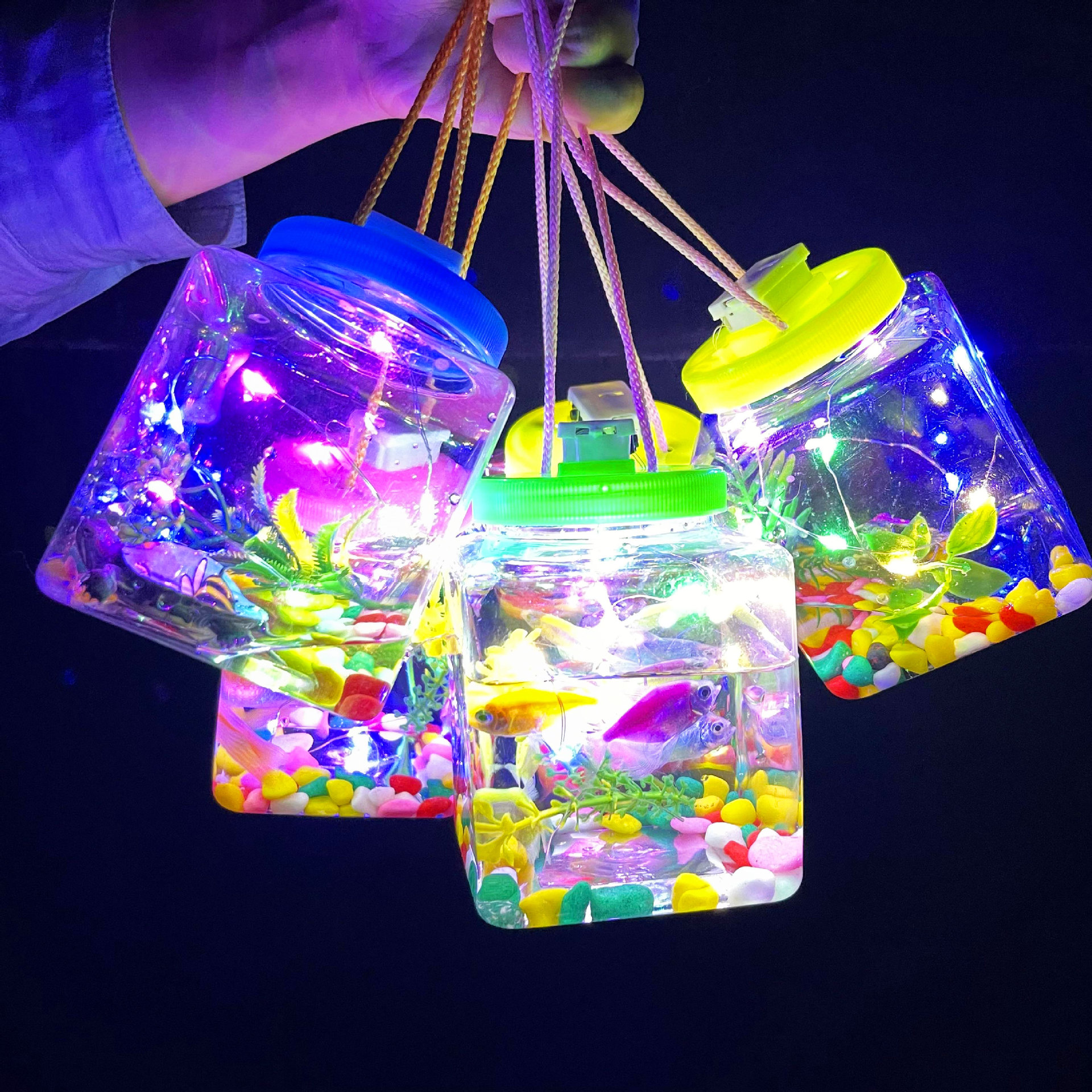 그물 빨간 폭발 발광 거품 물고기 병 야시장 마구간 유치원 어린이 그룹 건물 예열 재료 플라스틱 발광 병