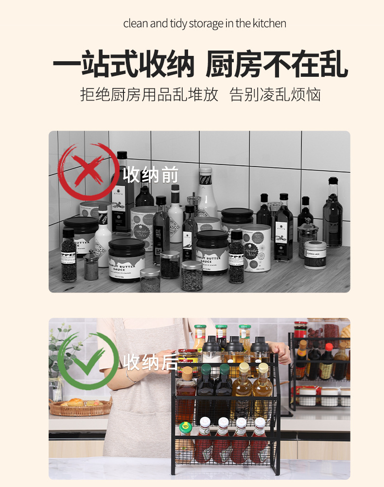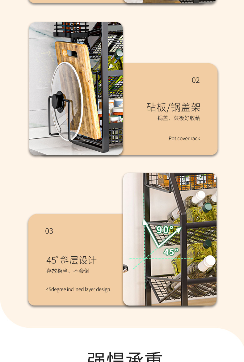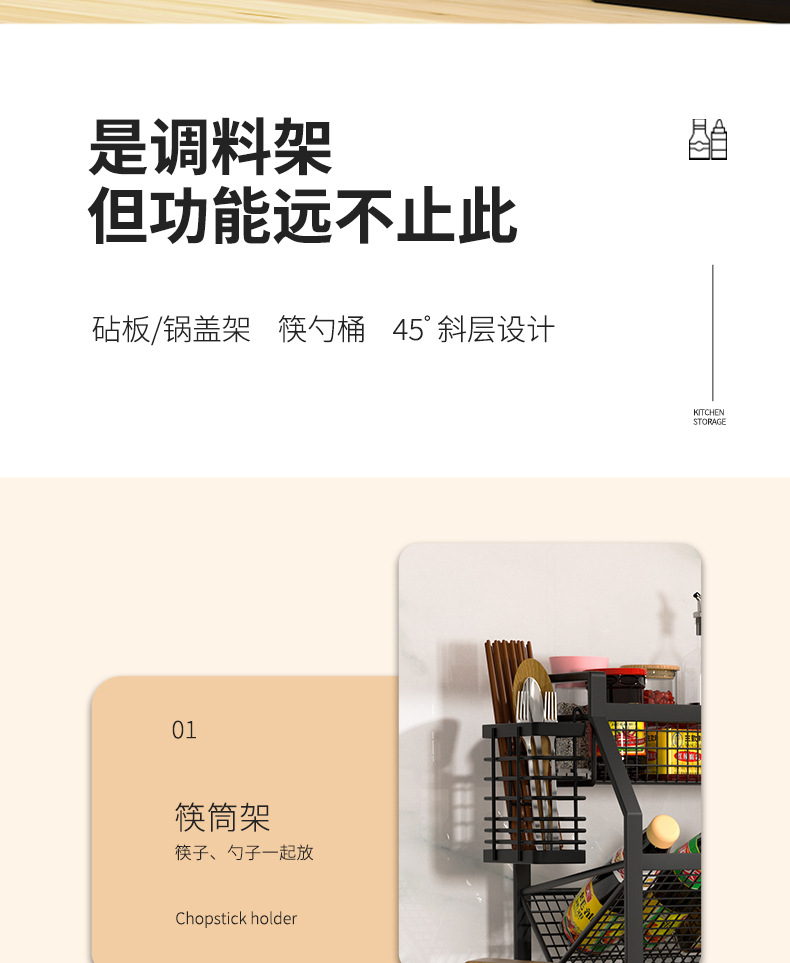 다층 조리대 바닥형 양념통 칼 도마 보관 정리대 주방 선반 가정용 캐비닛