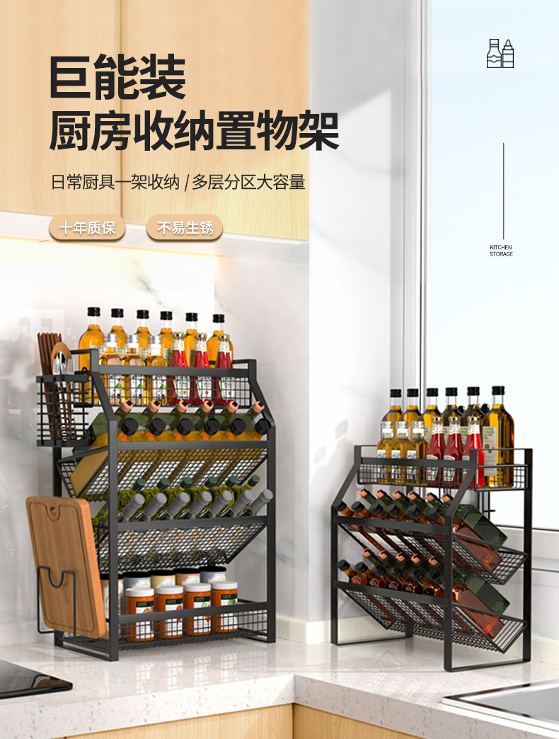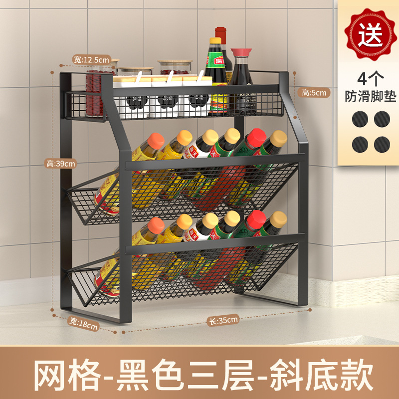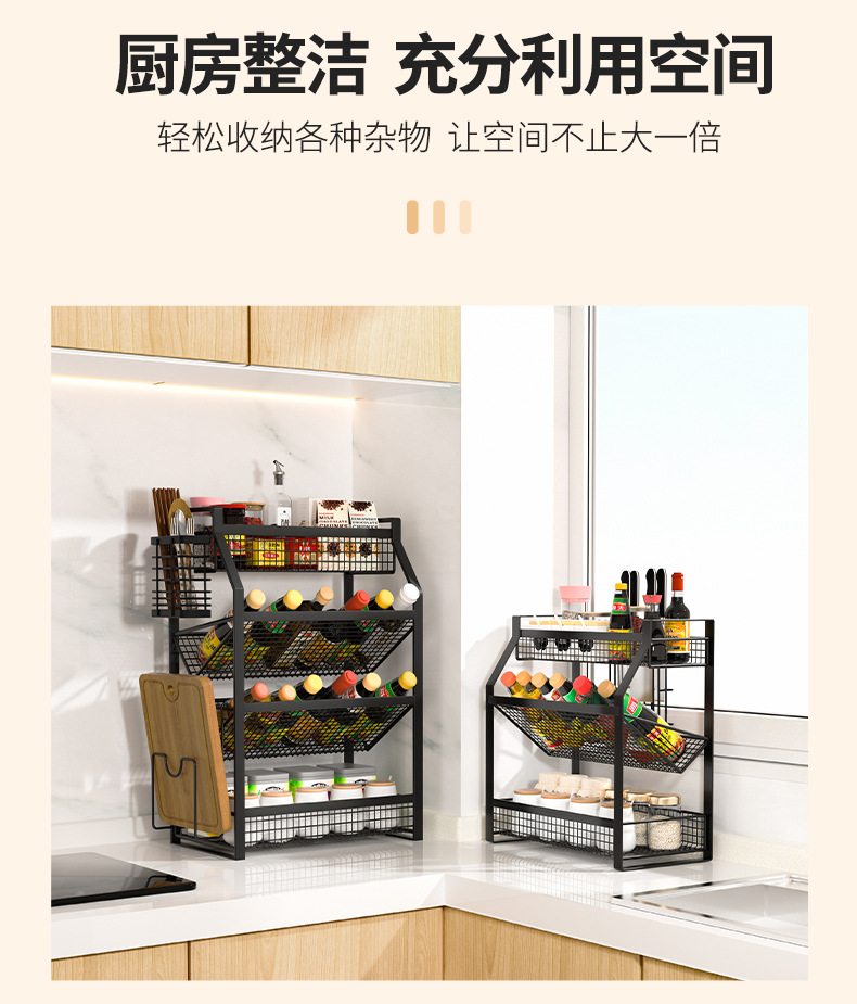 다층 조리대 바닥형 양념통 칼 도마 보관 정리대 주방 선반 가정용 캐비닛스토어 가기