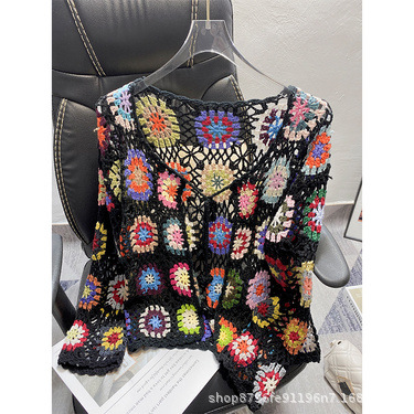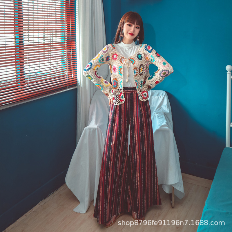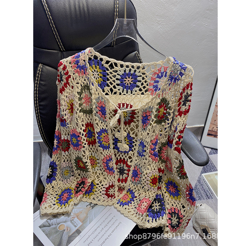 수제 크로 셰 뜨개질 니트 가디건 여성의 봄과 가을 새로운 에스닉 스타일 빈티지 중공 보헤미안 코트 긴팔 탑