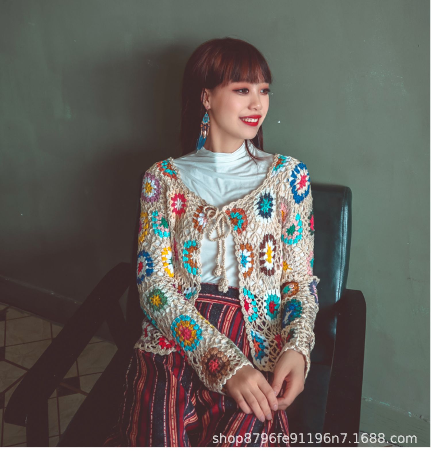 수제 크로 셰 뜨개질 니트 가디건 여성의 봄과 가을 새로운 에스닉 스타일 빈티지 중공 보헤미안 코트 긴팔 탑스토어 가기