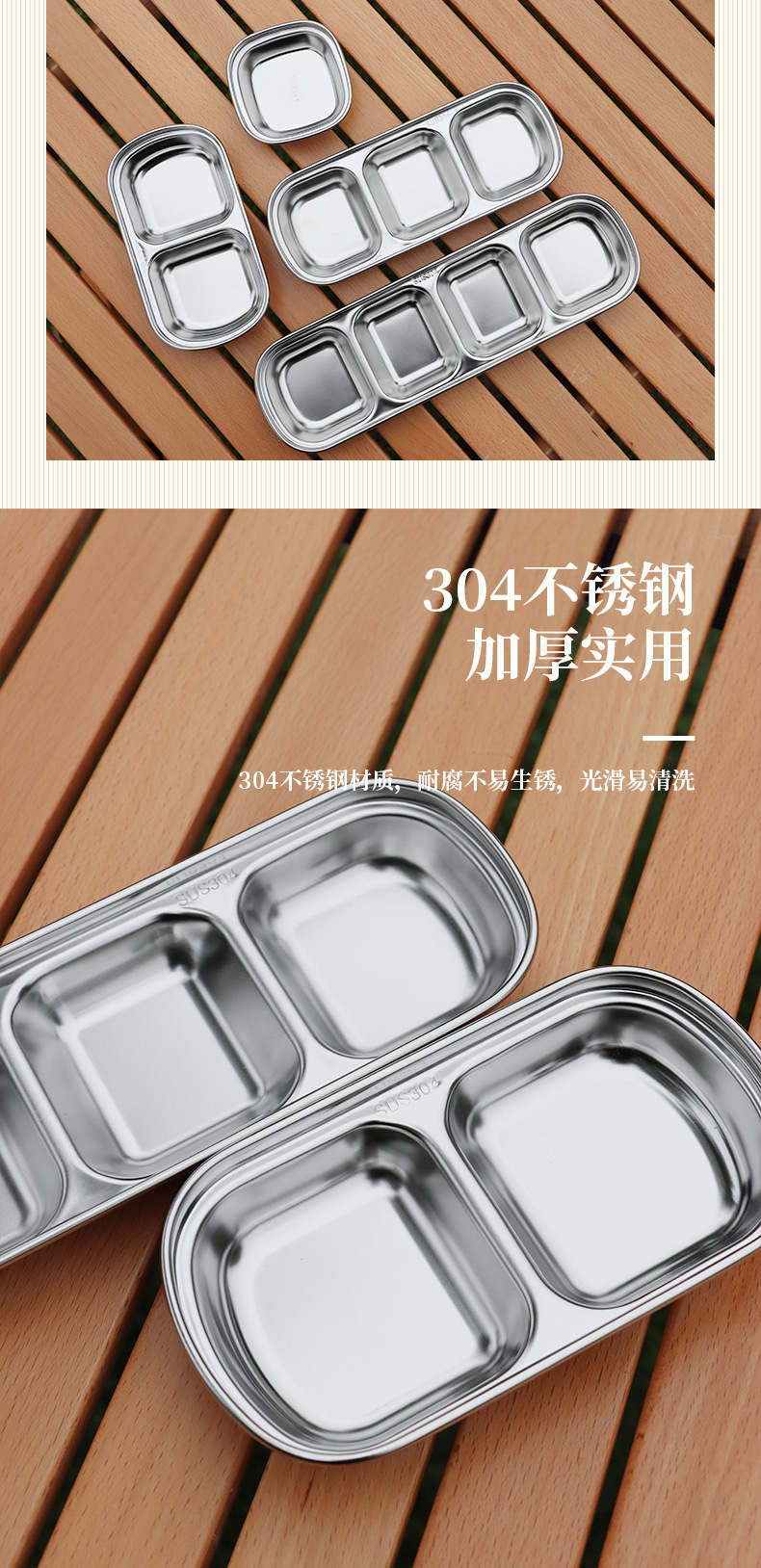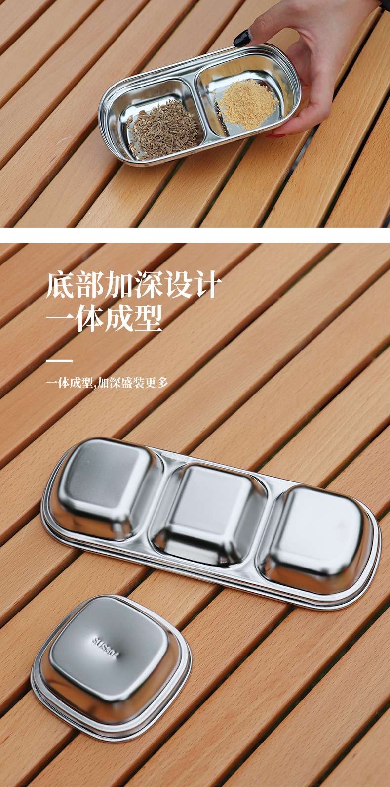 야외 304 스테인레스 스틸 조미료 접시 조합 소스 접시 딥 볼 2 칸 3 칸 접시 식초 접시 캠핑 식기
