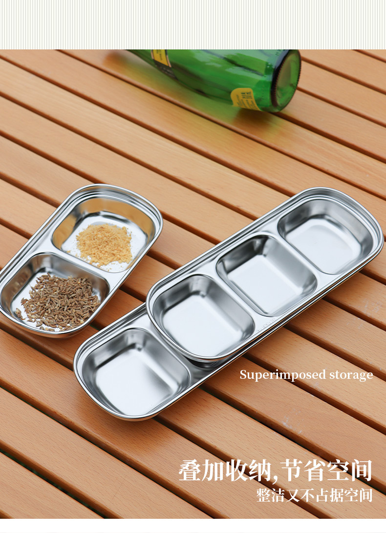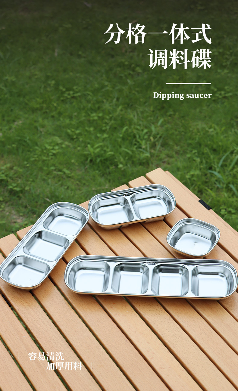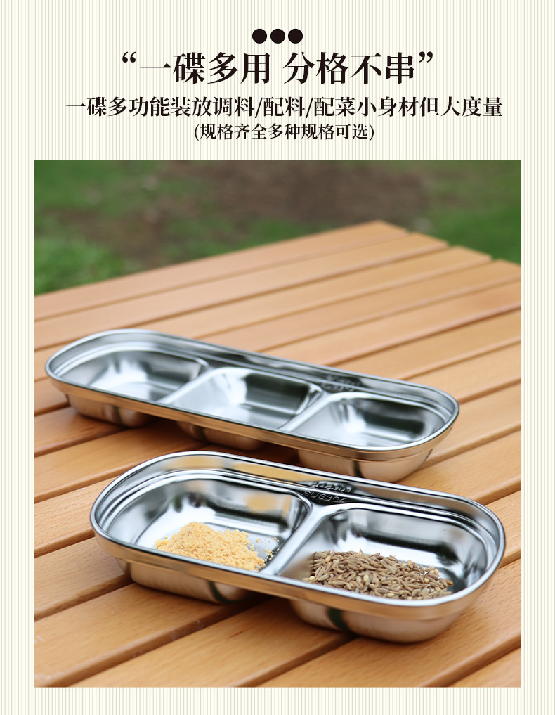 야외 304 스테인레스 스틸 조미료 접시 조합 소스 접시 딥 볼 2 칸 3 칸 접시 식초 접시 캠핑 식기스토어 가기