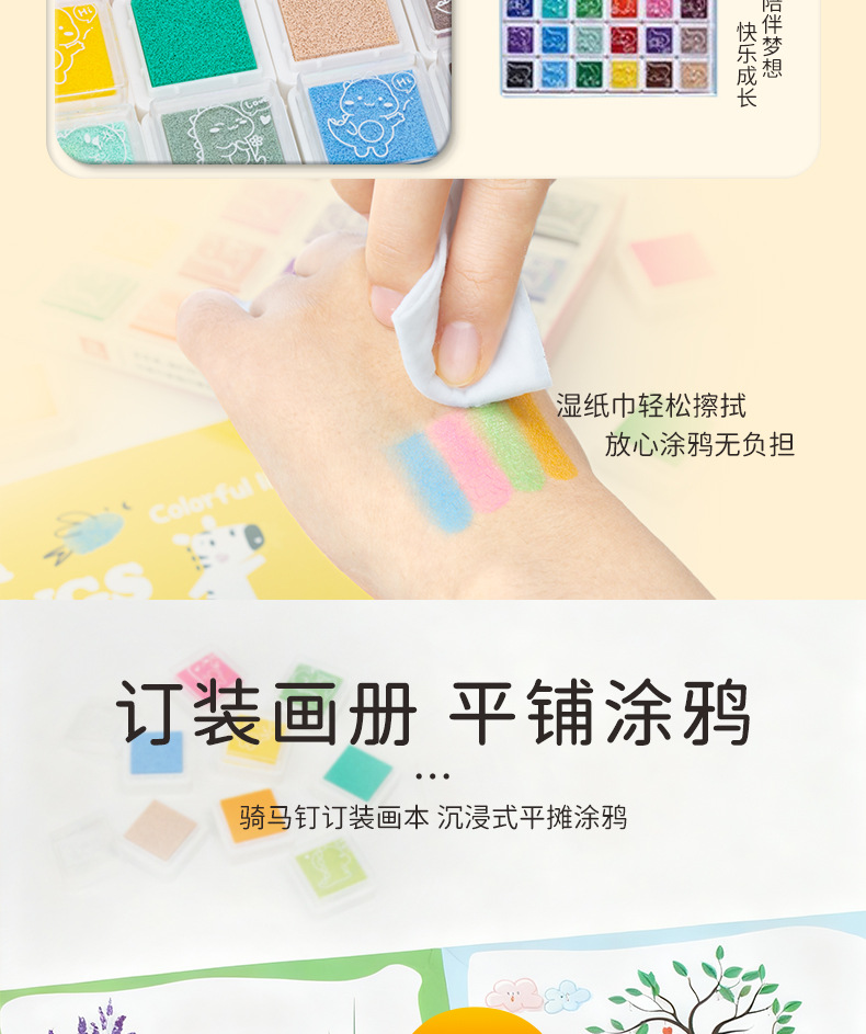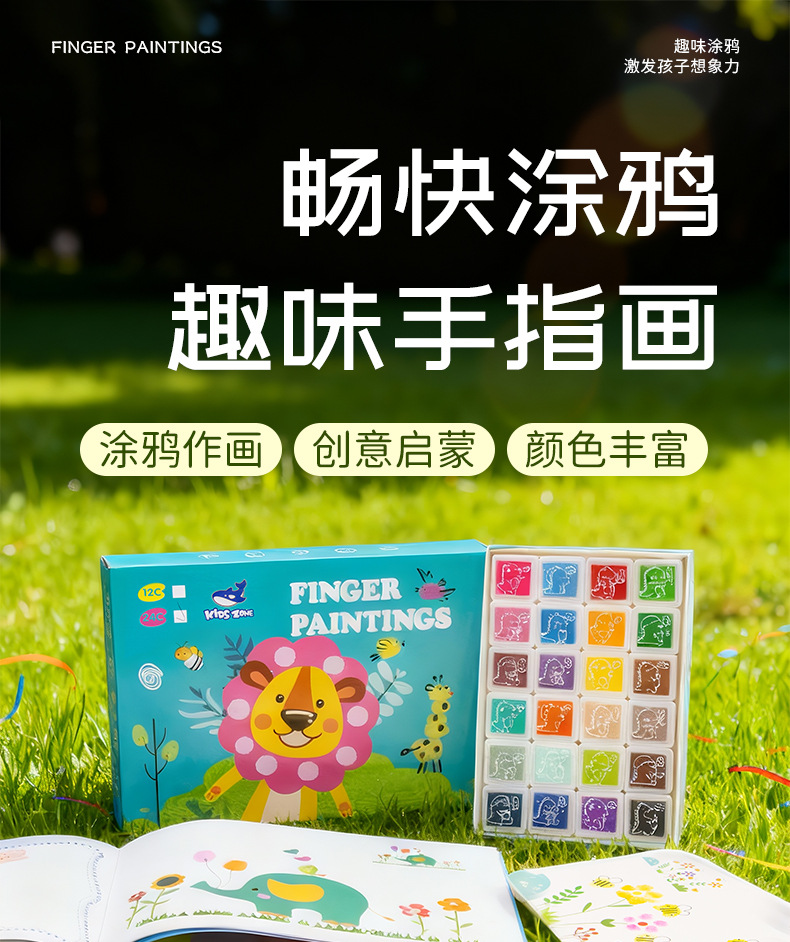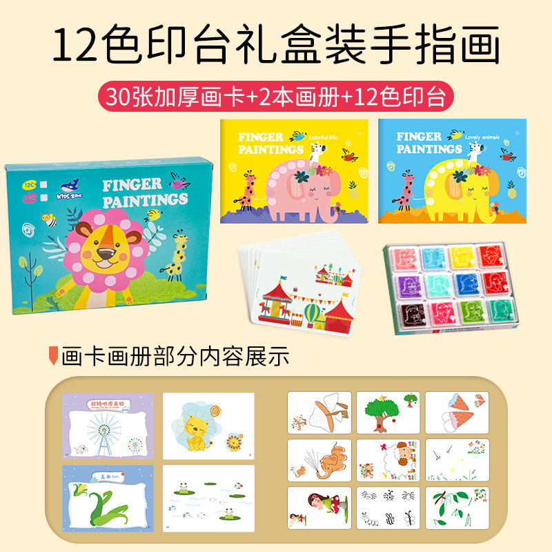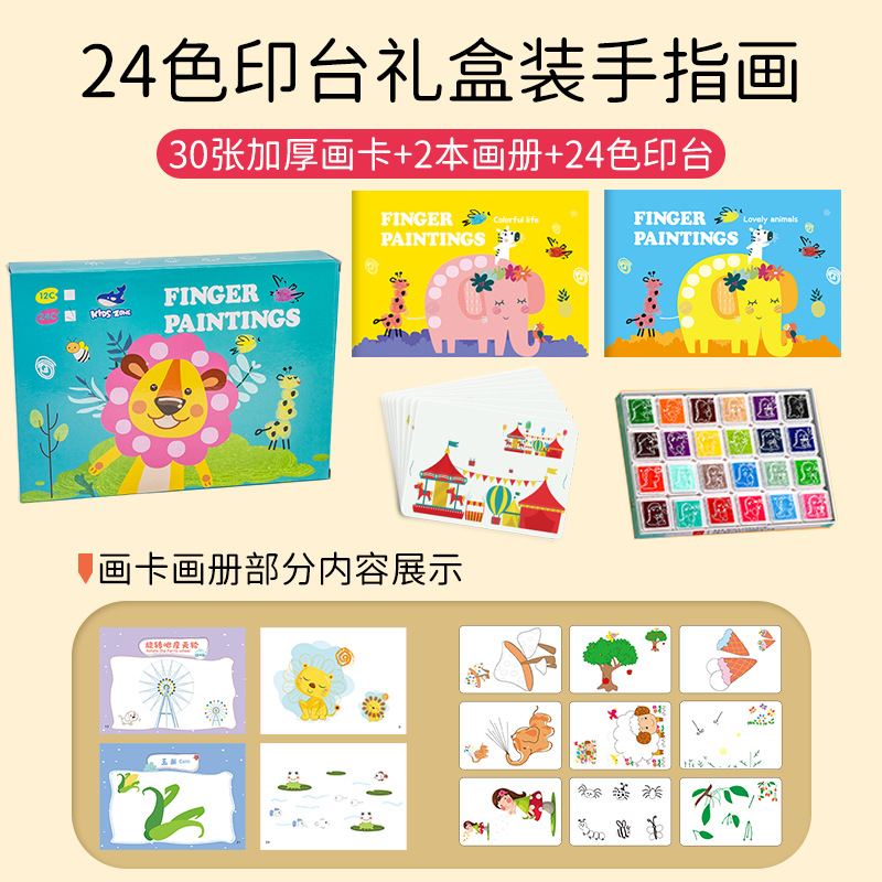 어린이 핑거 페인팅 12색 24색 잉크 패드 물감 유치원 낙서 그림책 아기 그림책 해외판 영어판