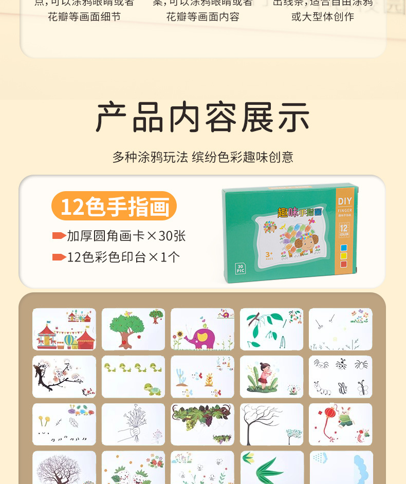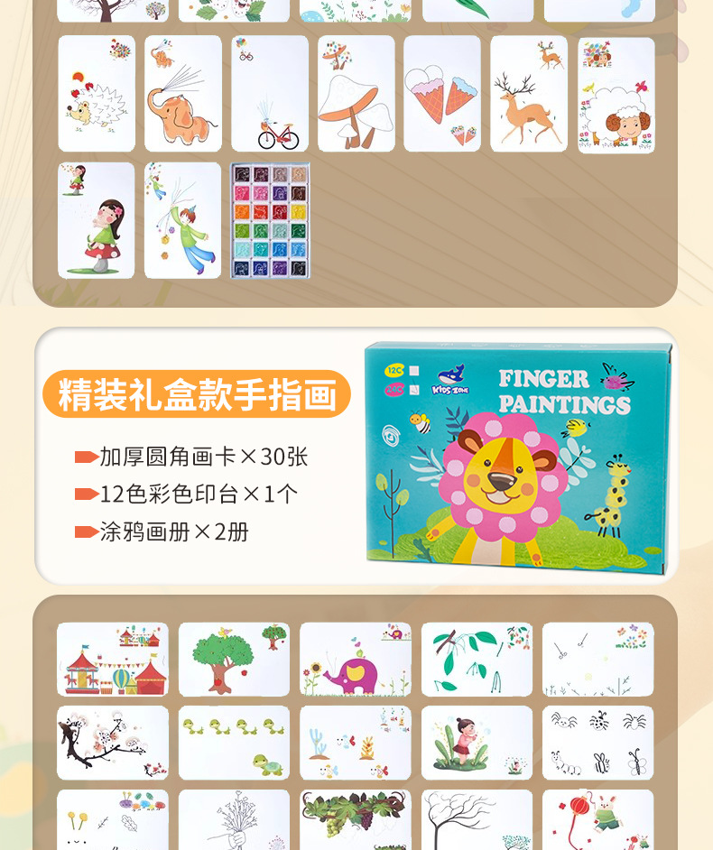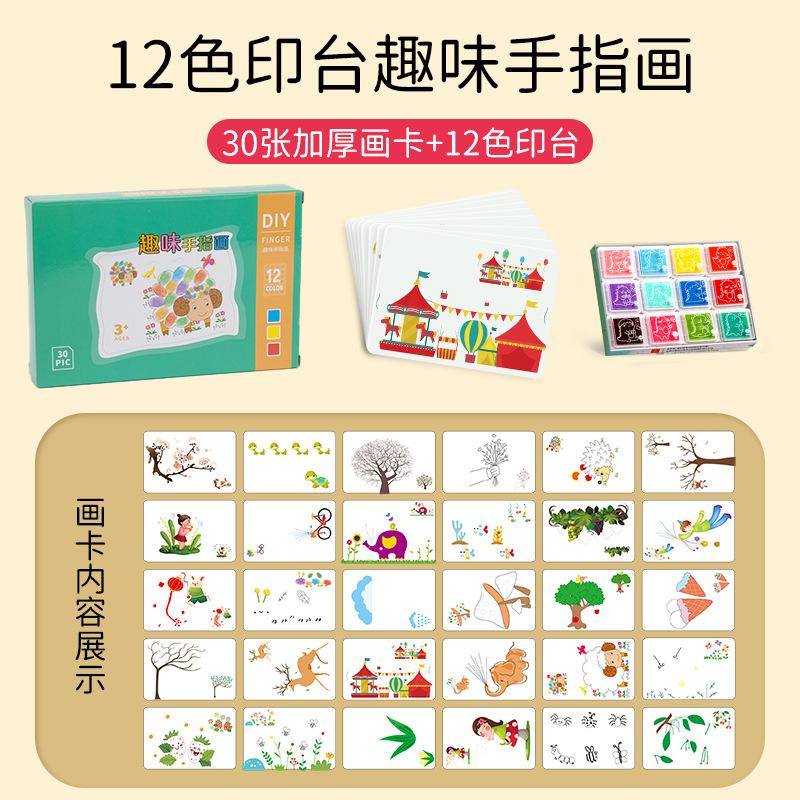 • 핑거 페인팅 (30 페이지 페인팅 카드 + 12 색 인쇄 테이블