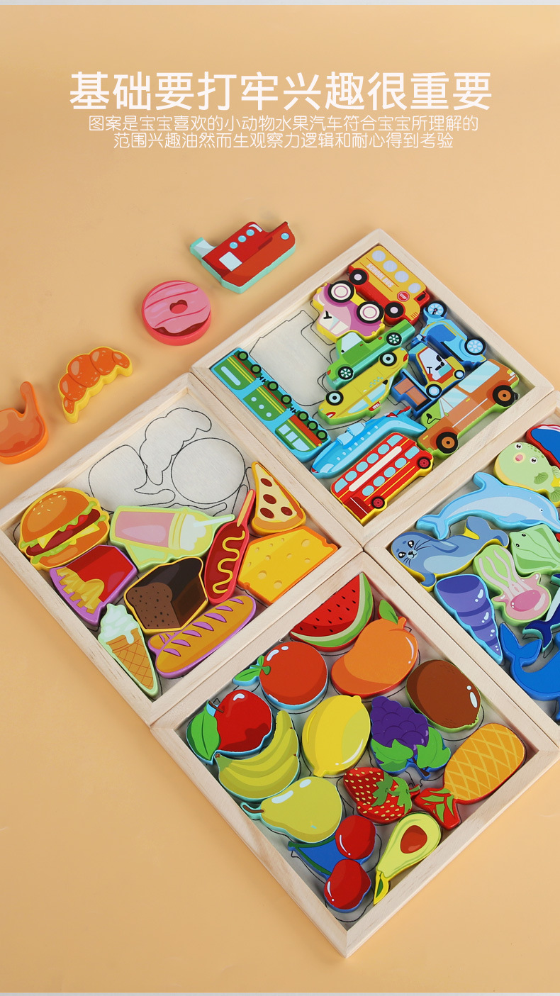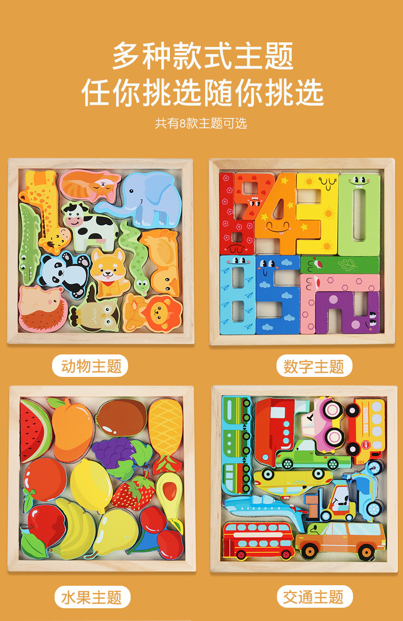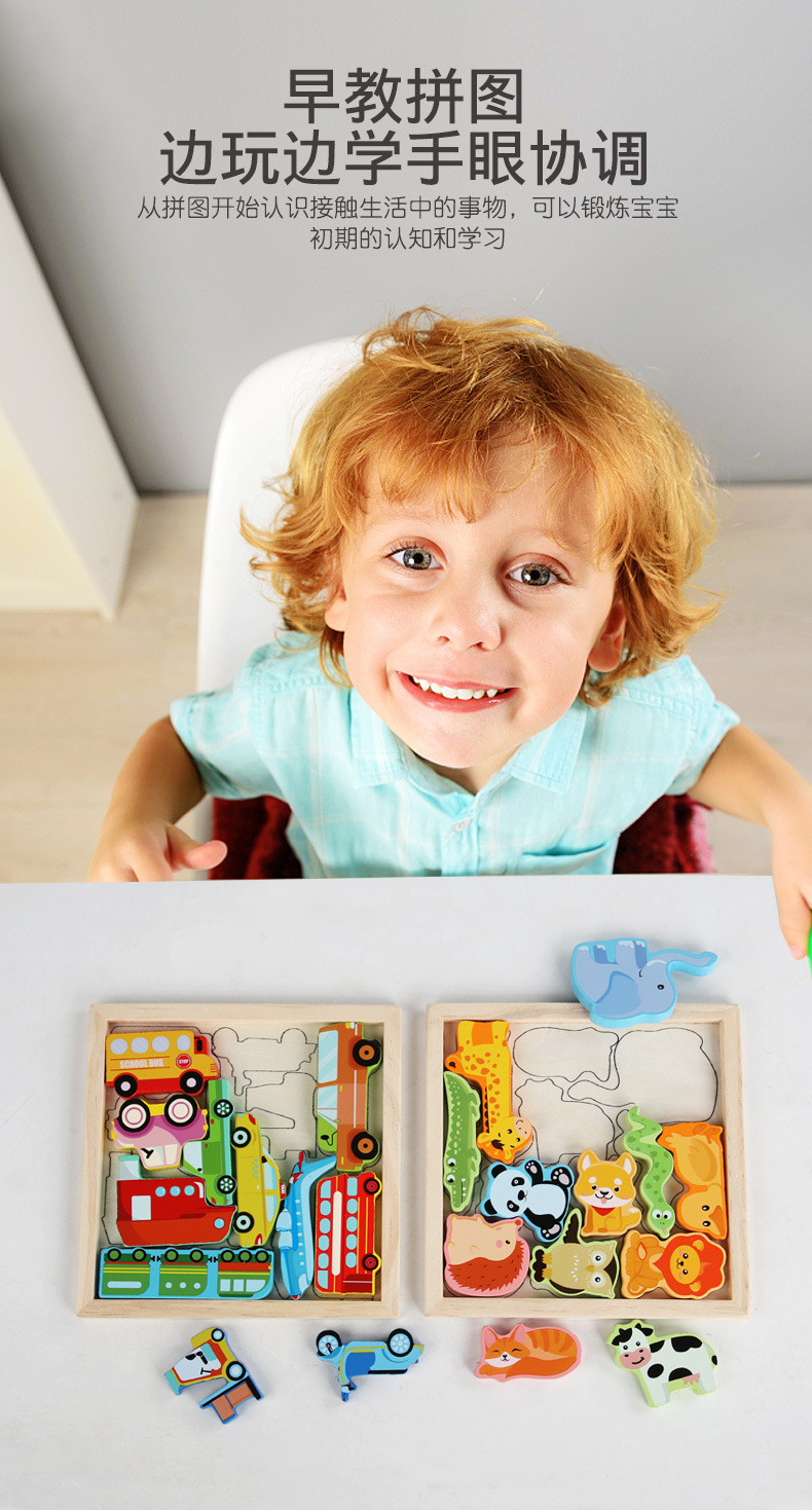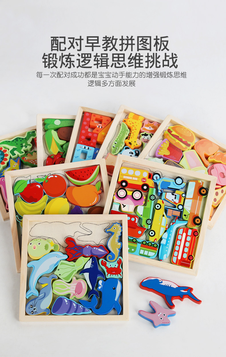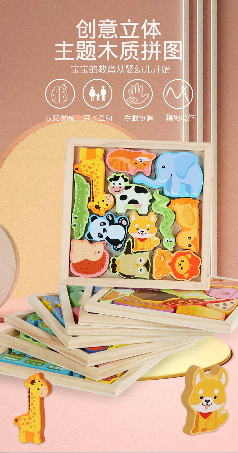 어린이용 나무 3D 입체 퍼즐 장난감 3-6세용 목재 창의적 퍼즐 장난감 도매 조기 교육용스토어 가기