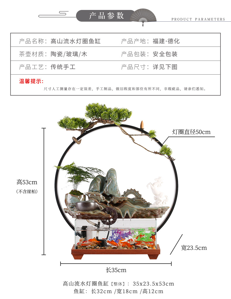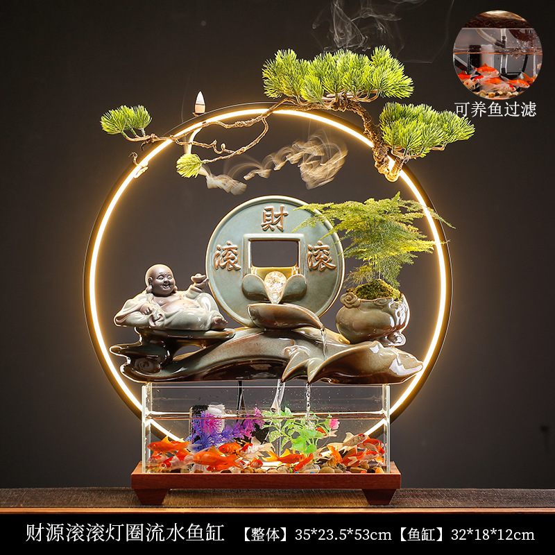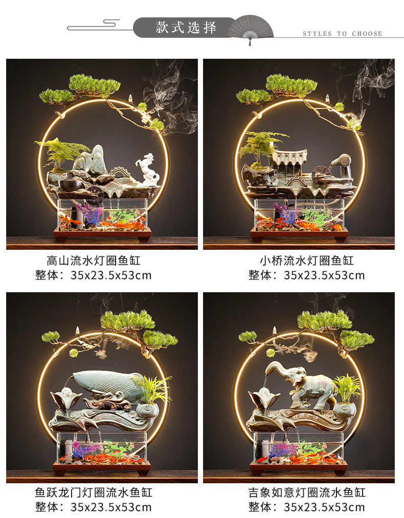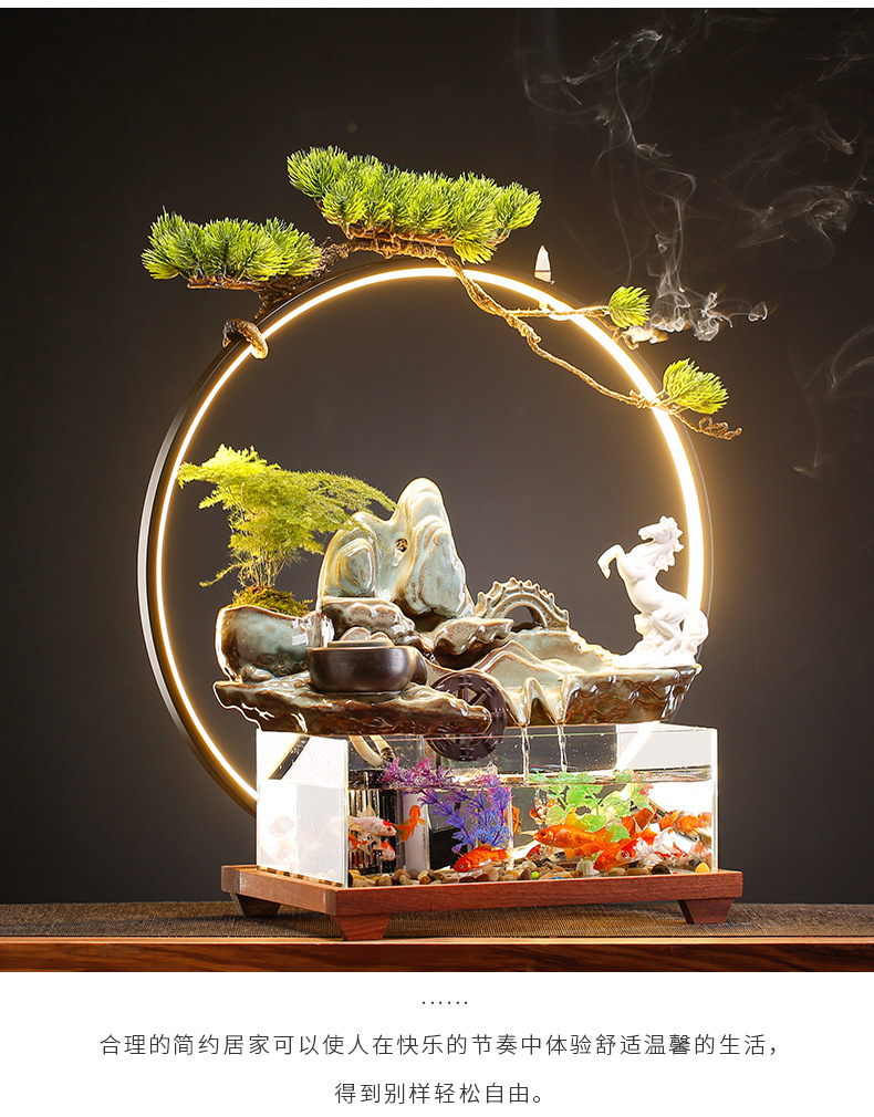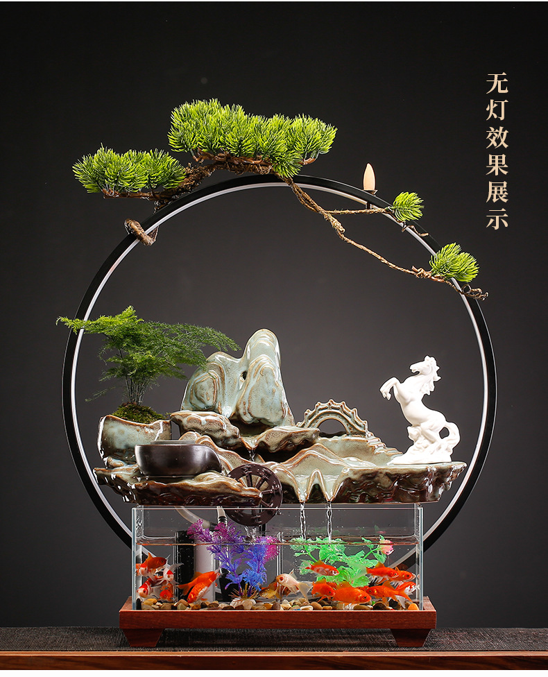 새로운 중국 스타일 흐르는 물 유리 어항 장식품 복도 홈 사무실 거실 데스크탑 장식 오프닝 선물