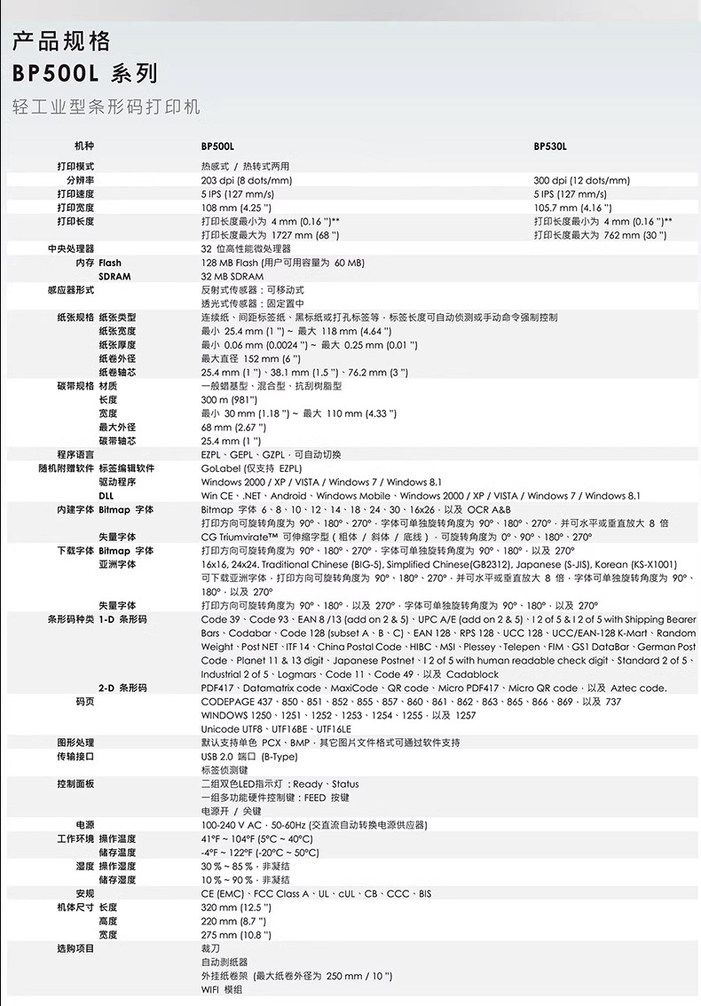 • BP500L(203dpi) 자동 필링 라벨 버전