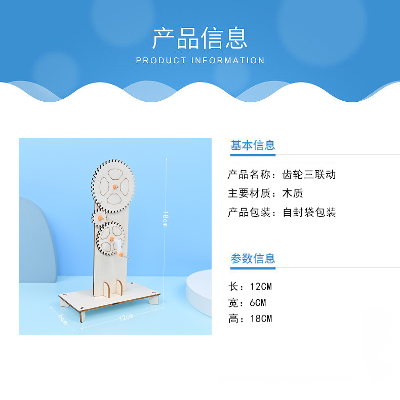 기어 트리플 링키지 어린이 퍼즐 수제 기술 소량 생산 증기 물리학 과학 소규모 실험 재료 패키지 New스토어 가기