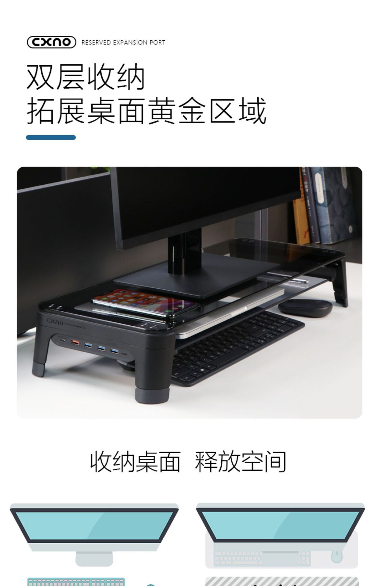 컴퓨터 모니터 높이 조절대 USB 확장 데스크탑 스크린 스탠드 노트북 수납 선반 키보드 받침대