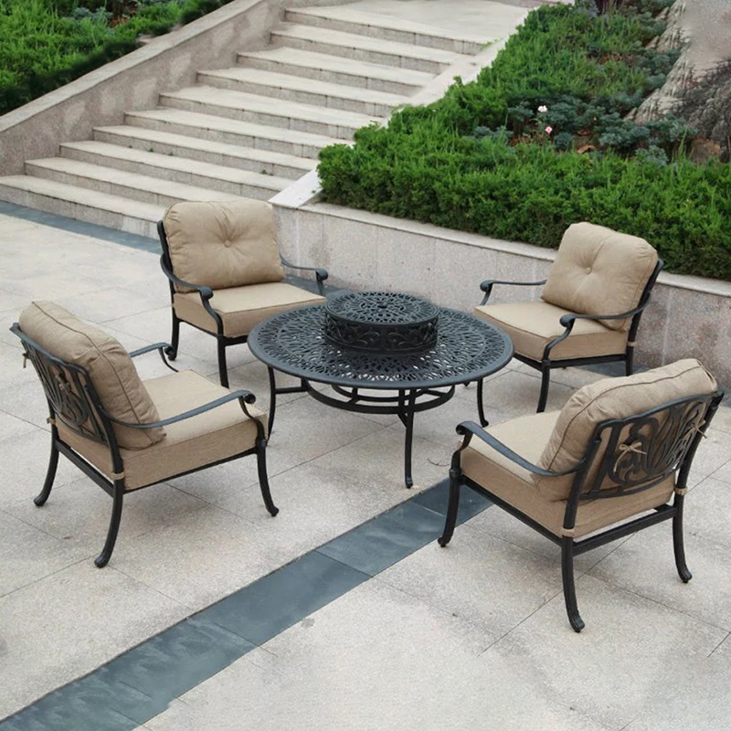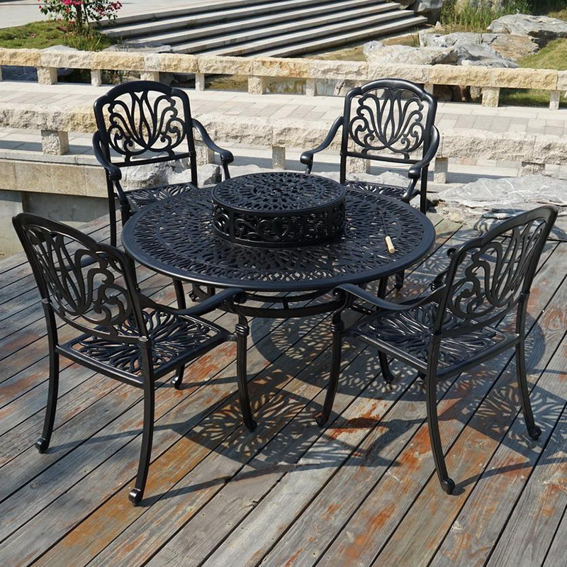 130 야외 바베큐 테이블 캐스트 알루미늄 대형 테이블 라운드 테이블 탄소 구운 BBQ 테이블 안뜰 정원 테이블 및 의자 농장 캐주얼 식탁