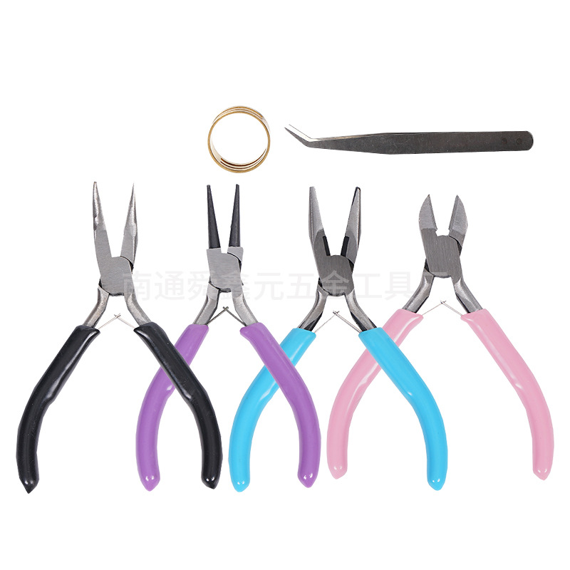 4.5 인치 컬러 쥬얼리 펜치 4 피스 세트 액세서리 쥬얼리 펜치 DIY 수제 펜치 카본 스틸 뾰족한 코 펜치