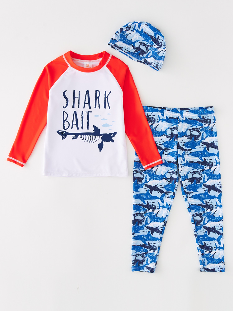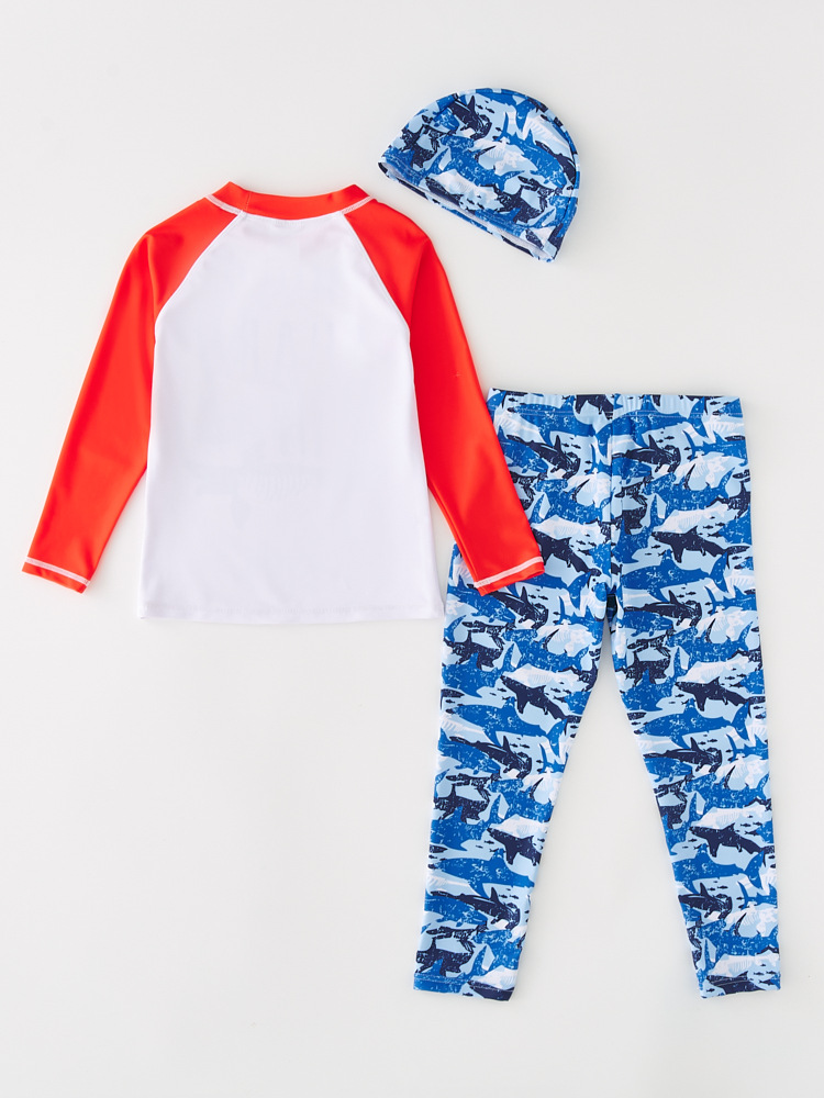 韩国儿童泳衣男童长袖长裤防晒速干泳衣温泉套装可爱宝宝小中童