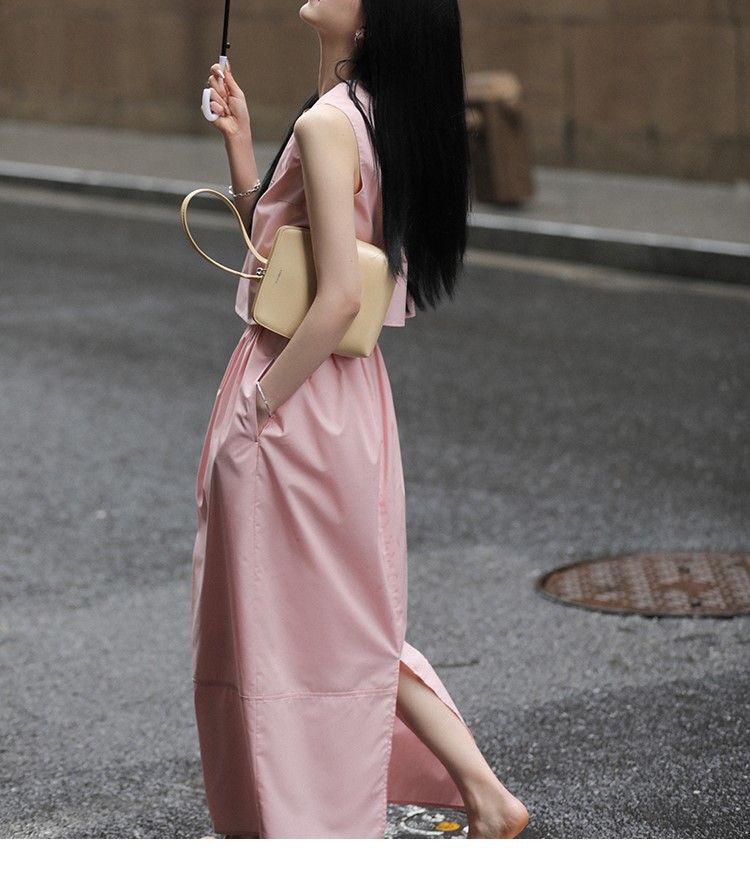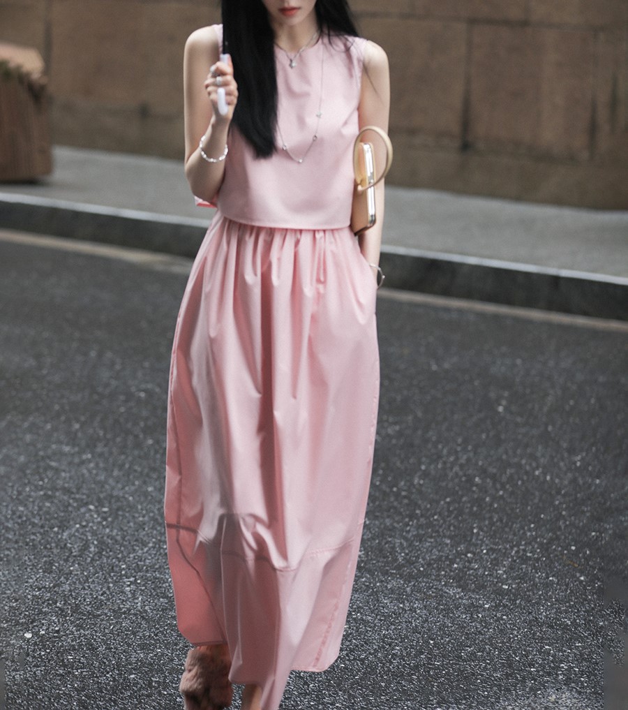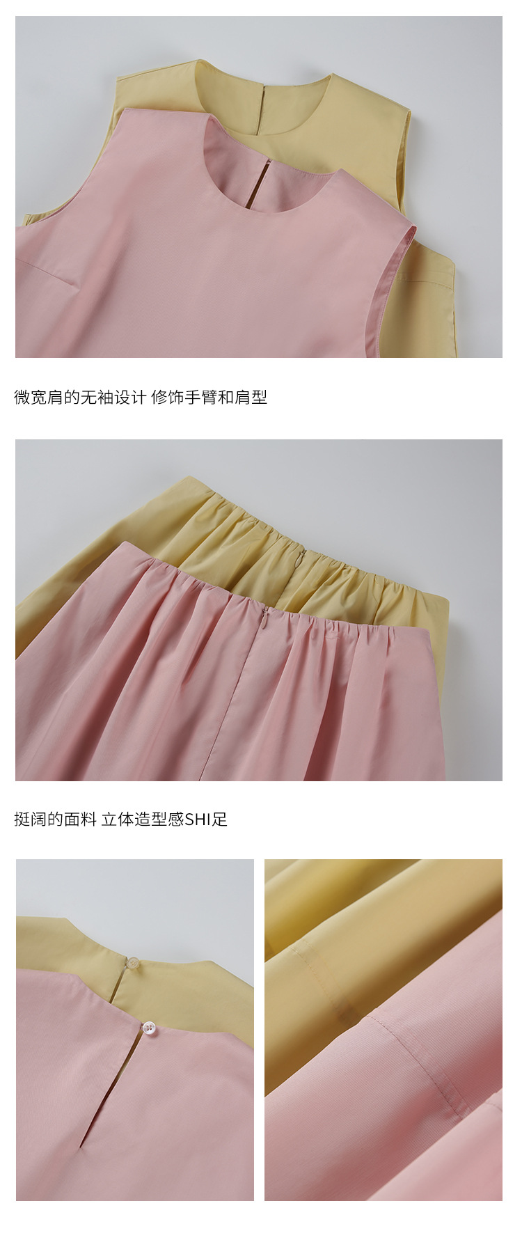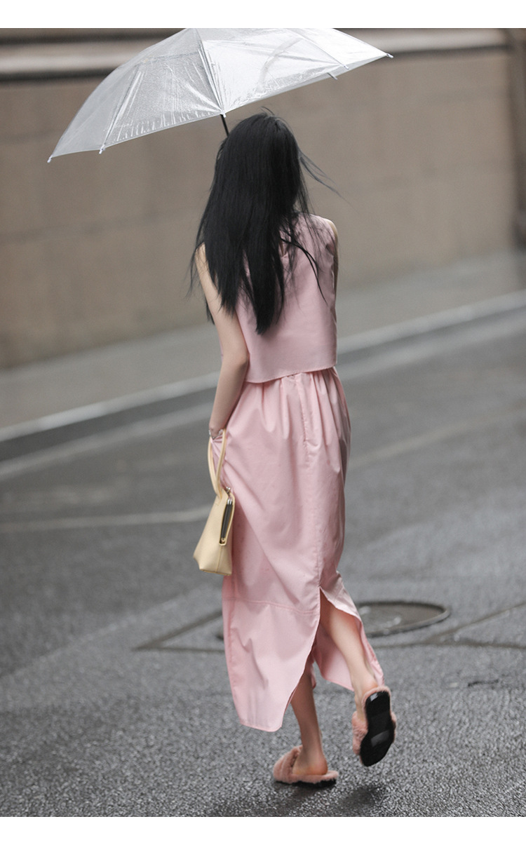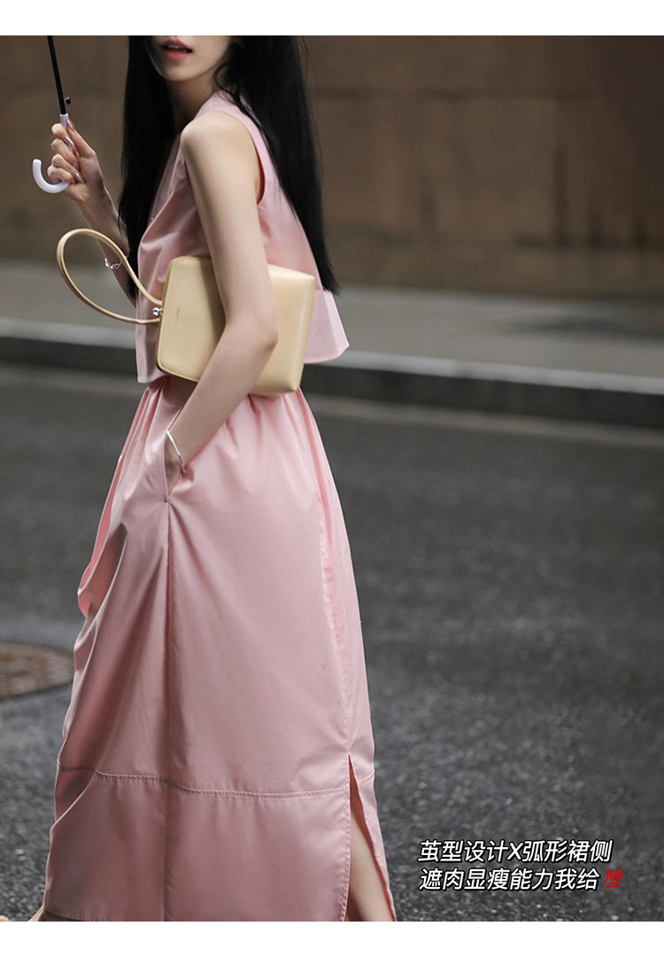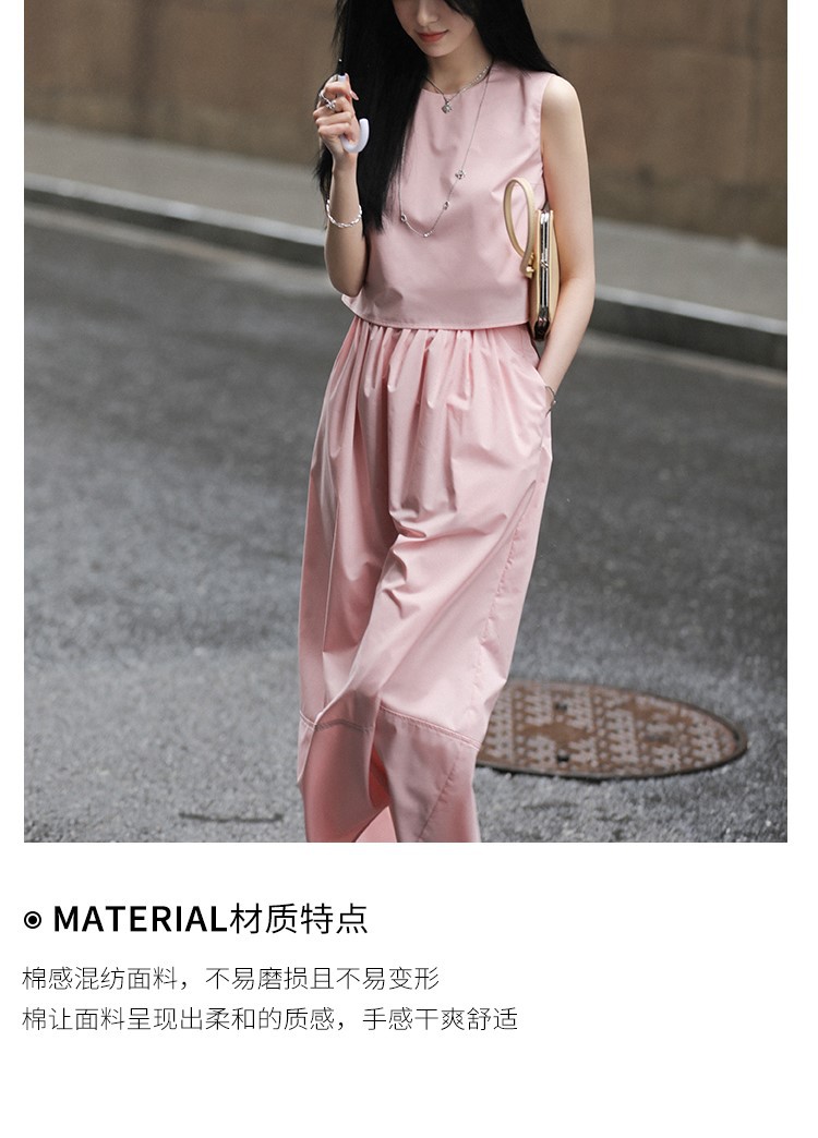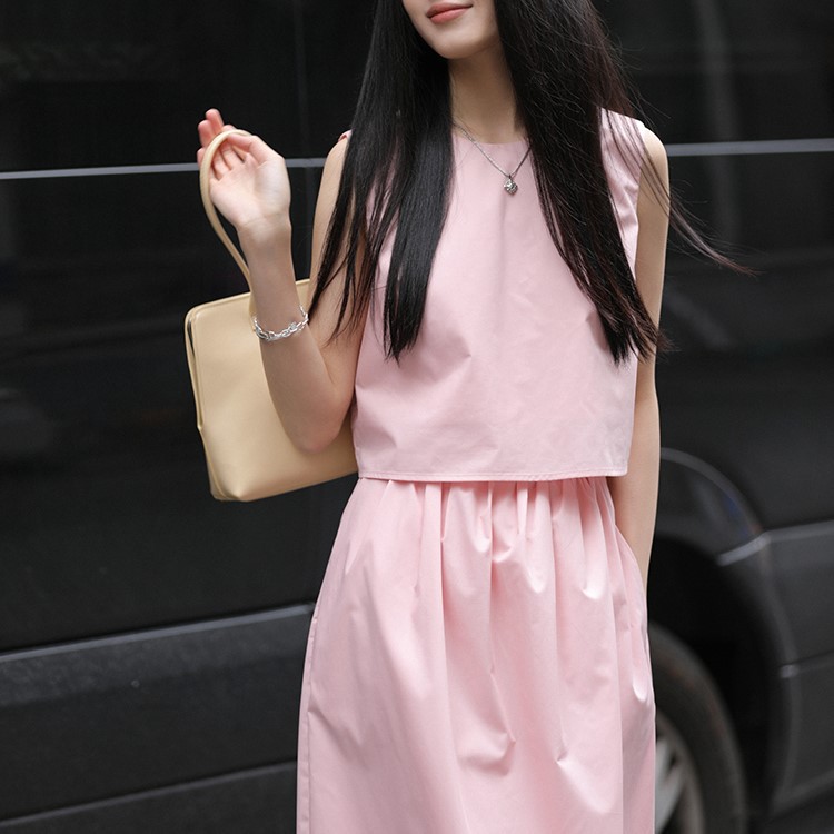 봄 여름 신상 스커트 패션 세트, 스트레이트 스커트, 한국 스타일 민소매 셔츠, 라운드넥 코튼 느낌의 구김 방지 탑 여성용스토어 가기