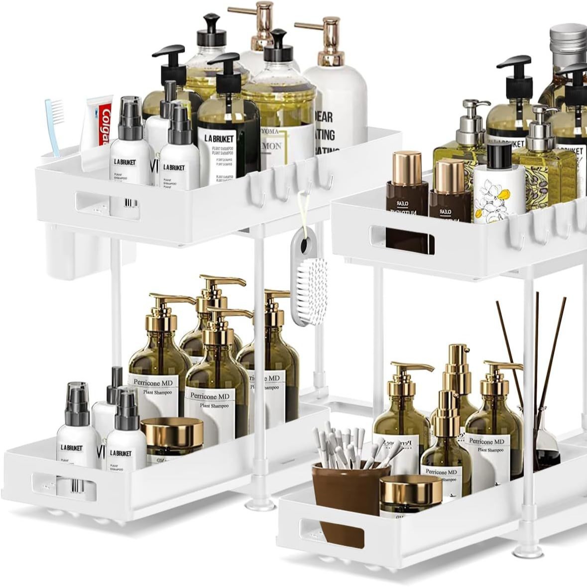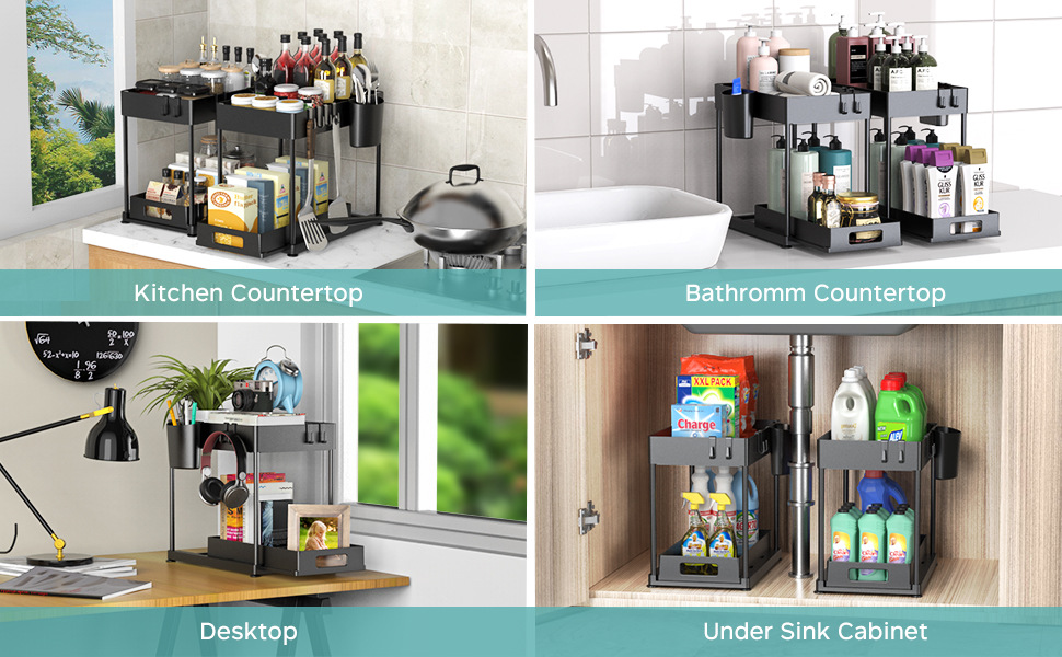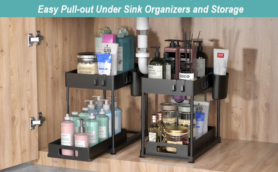 아마존 핫 세일 주방 주최자 조리대 더블 레이어 풀 아웃 스토리지 랙 캐비닛 드로어블 하부 싱크 랙