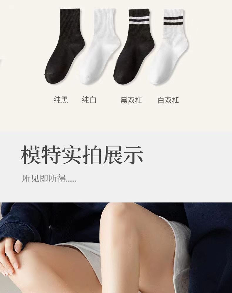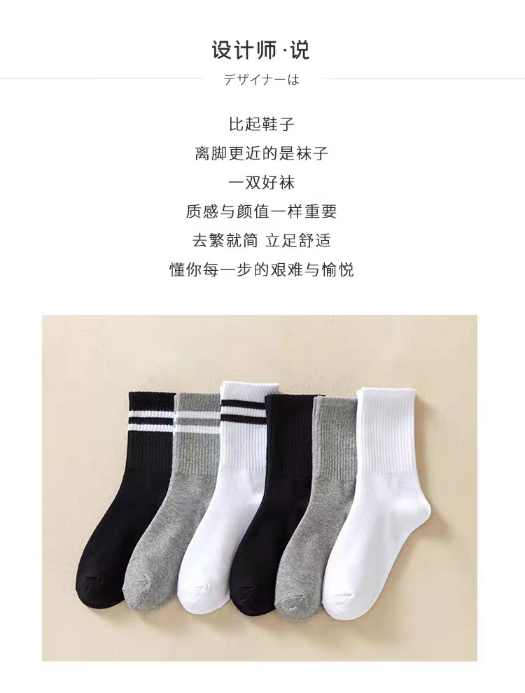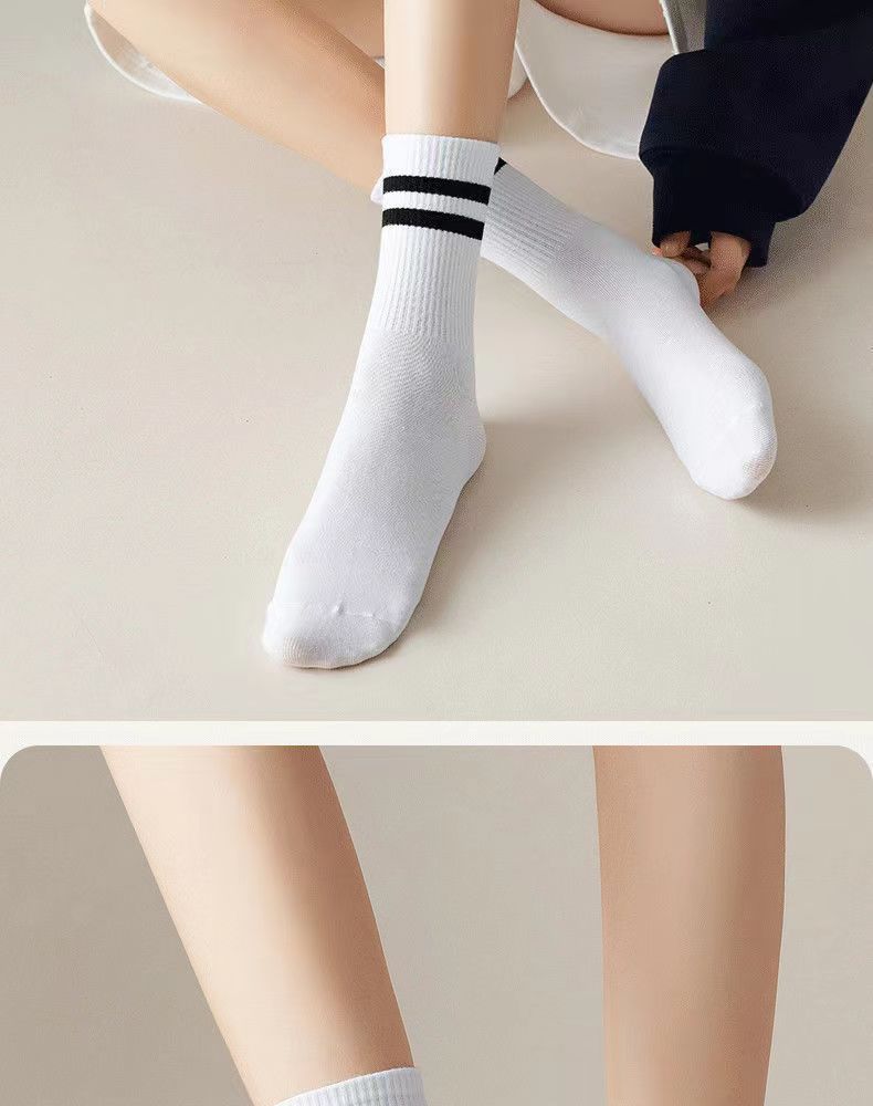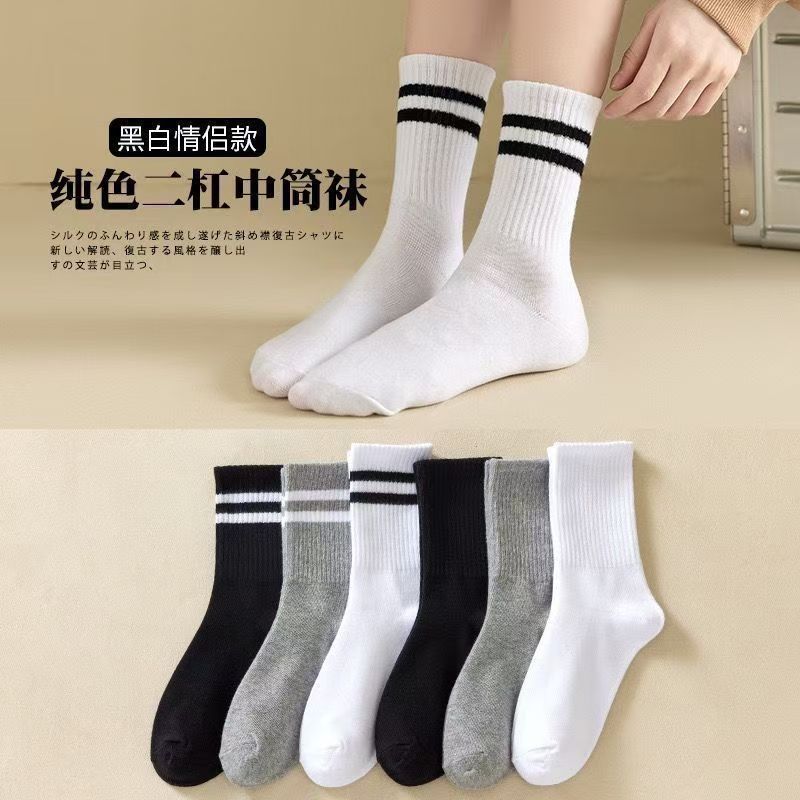 남성용 및 여성용 양말, 흑백 캐주얼 스포츠 양말, 줄무늬 2줄, 대학 스타일 종아리 중간 양말, 봄 여름 트렌디한 커플 양말스토어 가기