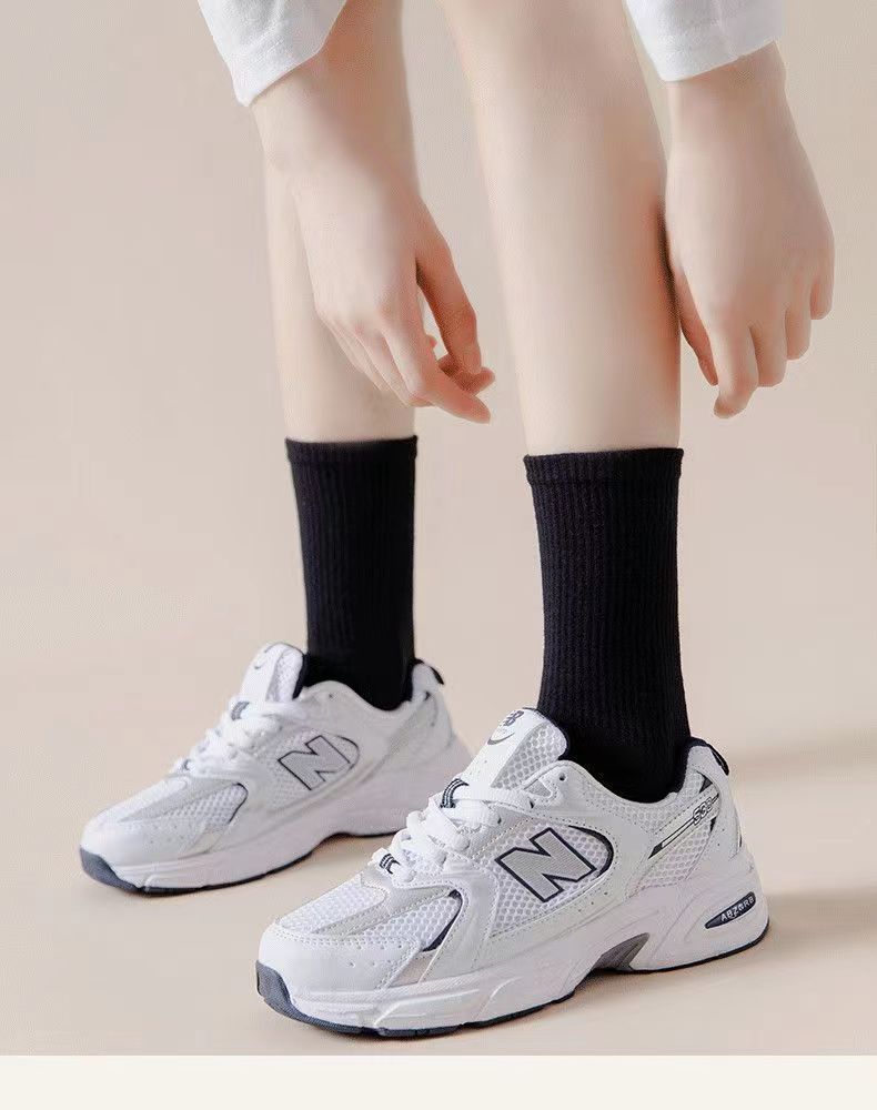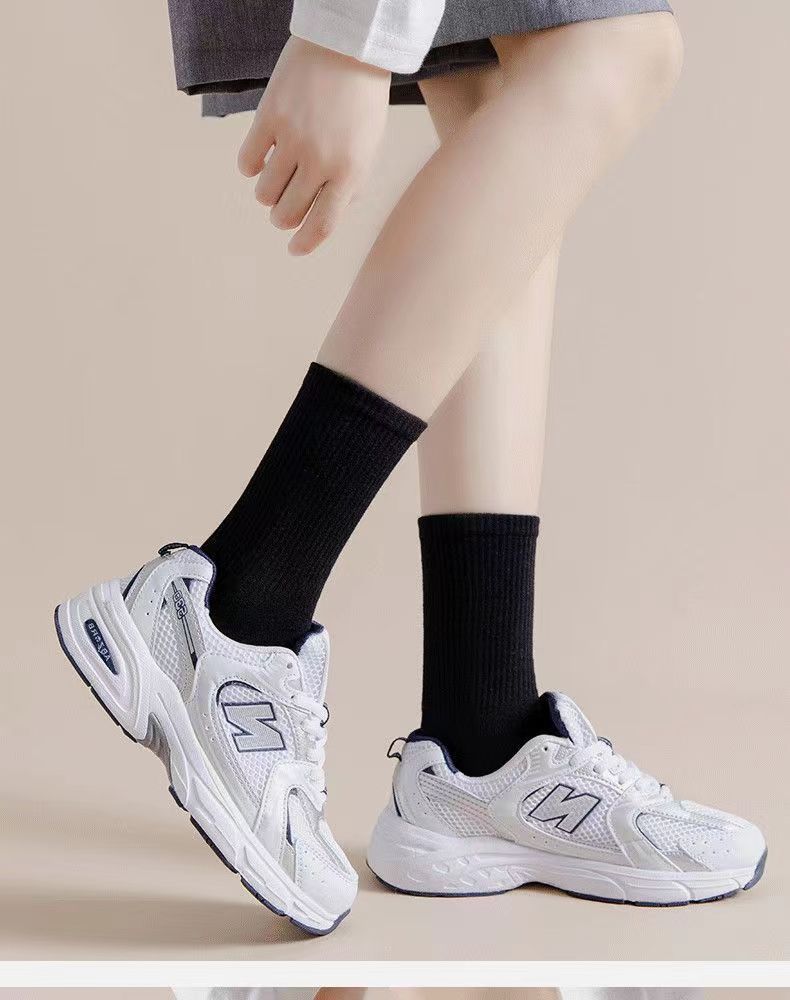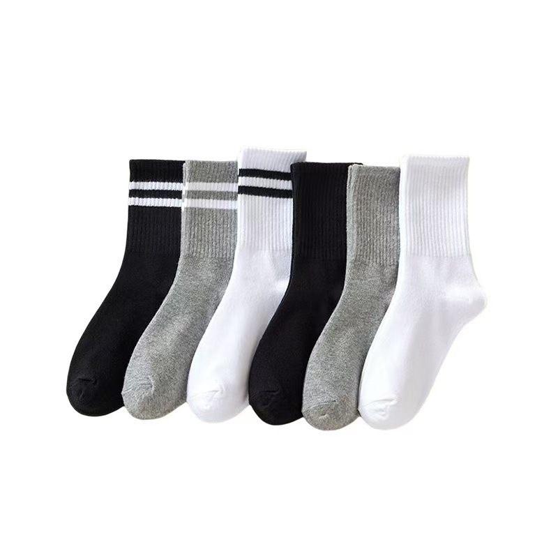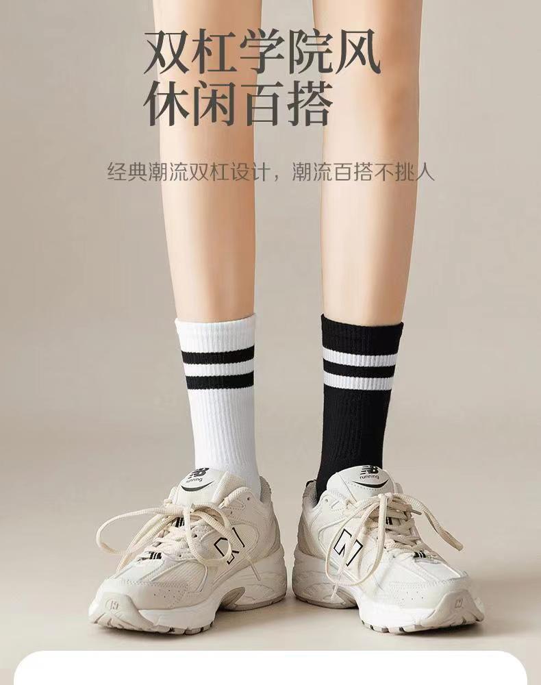 남성용 및 여성용 양말, 흑백 캐주얼 스포츠 양말, 줄무늬 2줄, 대학 스타일 종아리 중간 양말, 봄 여름 트렌디한 커플 양말