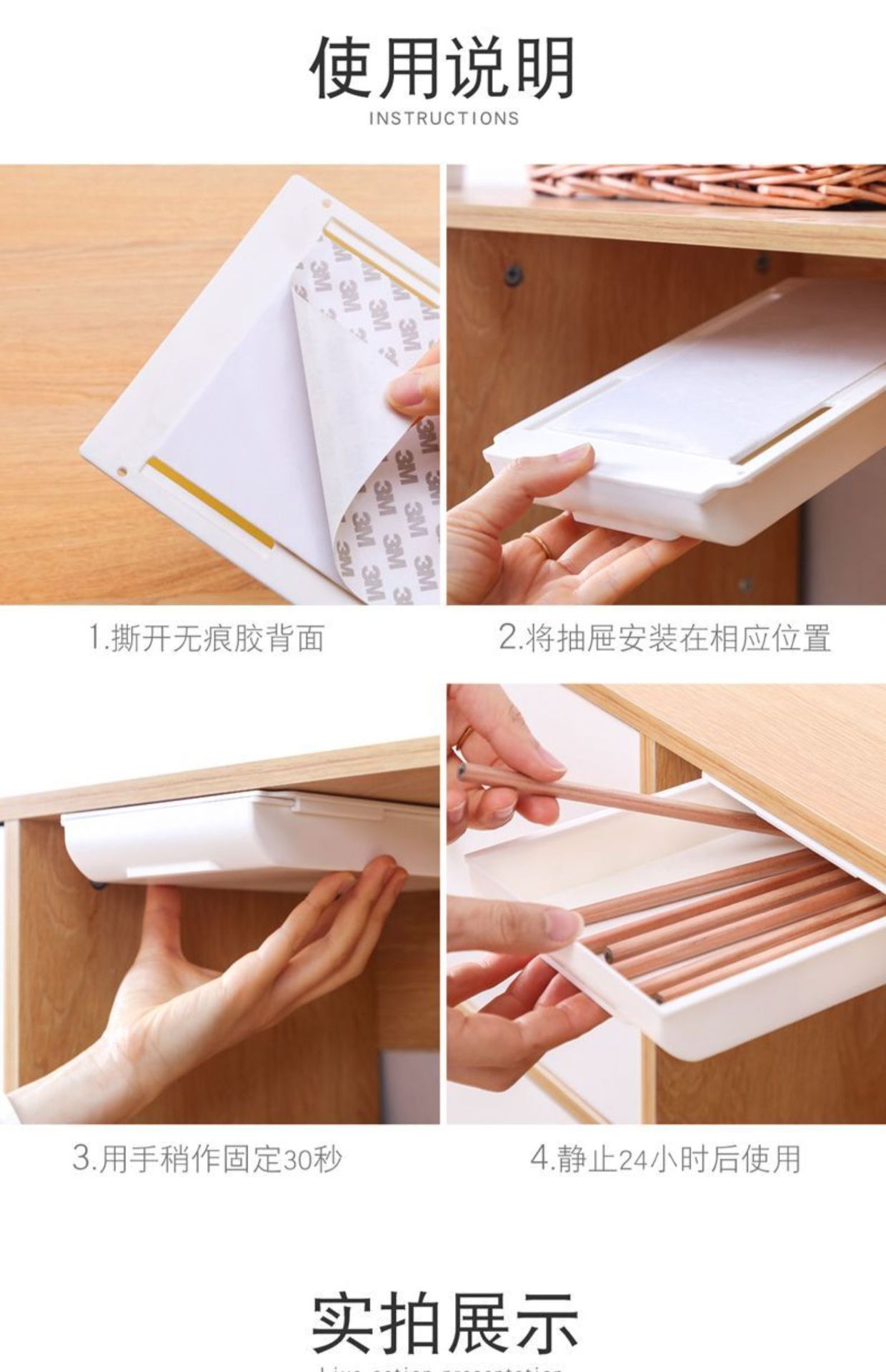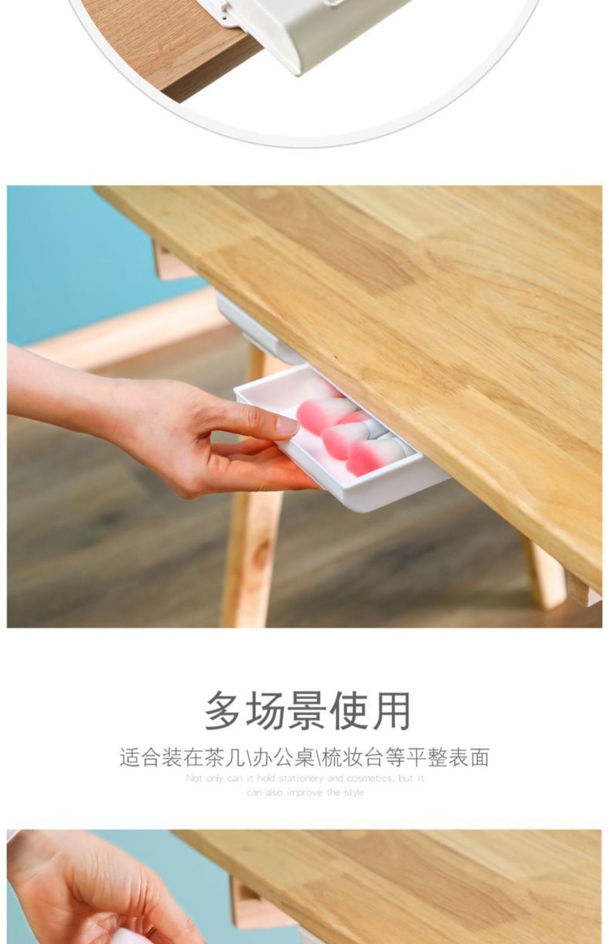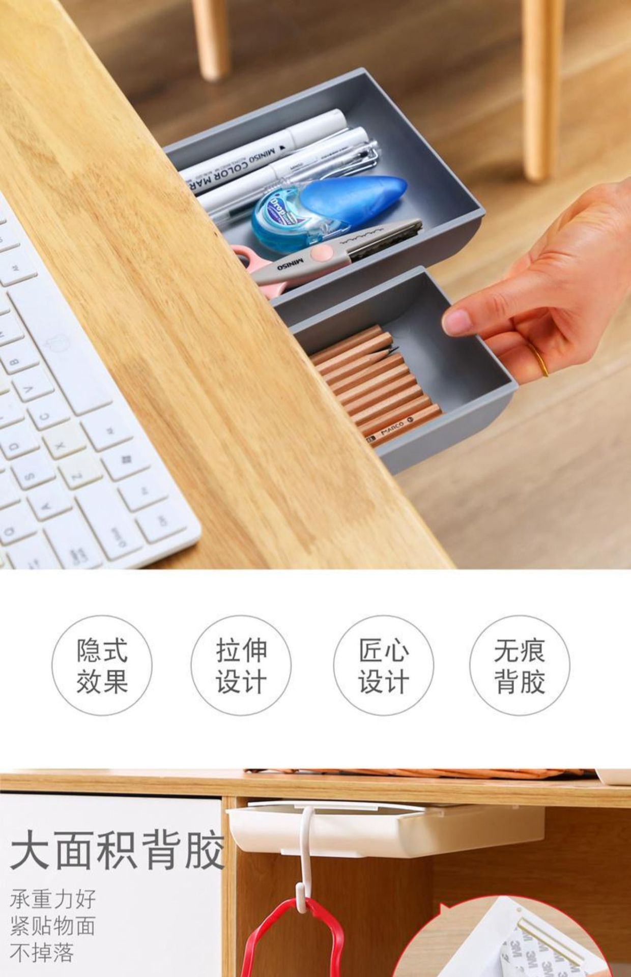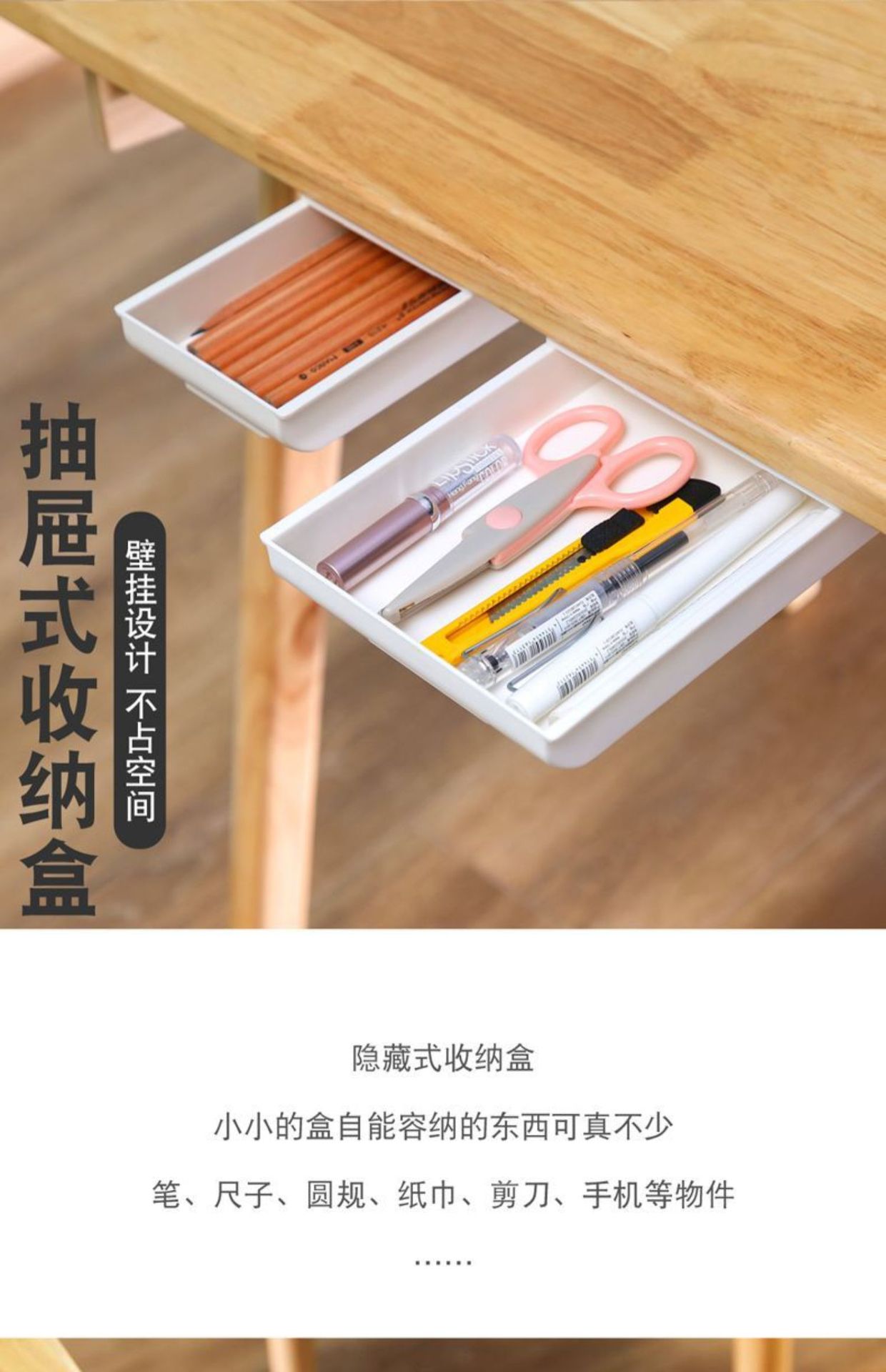 테이블 아래 숨겨진 서랍 상자 보관함 학생 책상 사무실 문구 상자 양면 접착 개인 돈 ID 상자스토어 가기