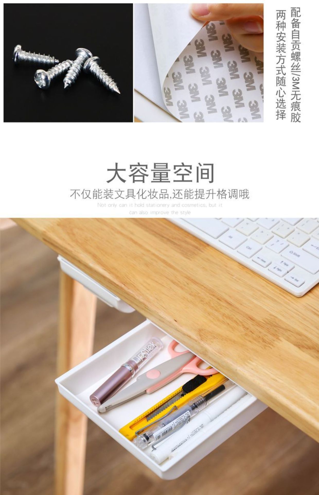 테이블 아래 숨겨진 서랍 상자 보관함 학생 책상 사무실 문구 상자 양면 접착 개인 돈 ID 상자