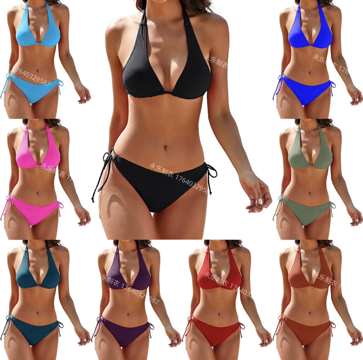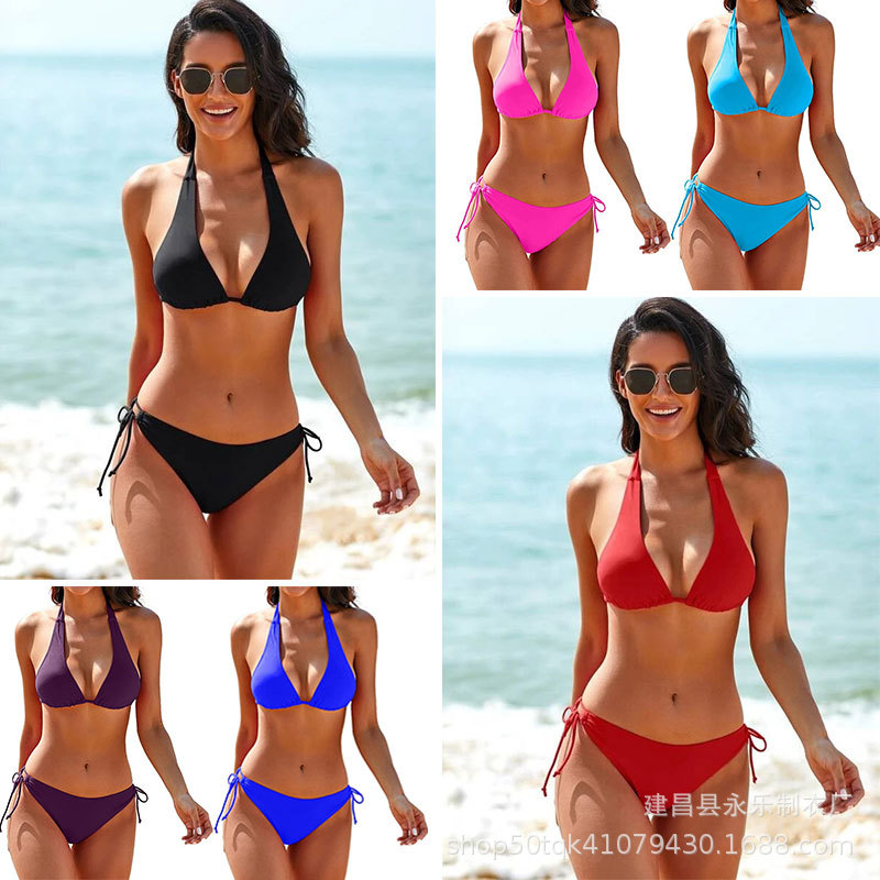 2025 여성 비키니 수영복 투피스 수영복 타이트하고 섹시한 홀터넥 얇은 스트랩 끈 팬티 도매 해변용스토어 가기
