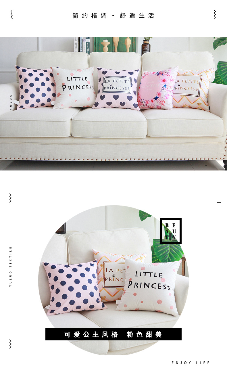 프랑스어 핑크 공주 스타일 소파 베개 쿠션 커버 현대 간단한 귀여운 소녀 어린이 거실 베개 등받이스토어 가기