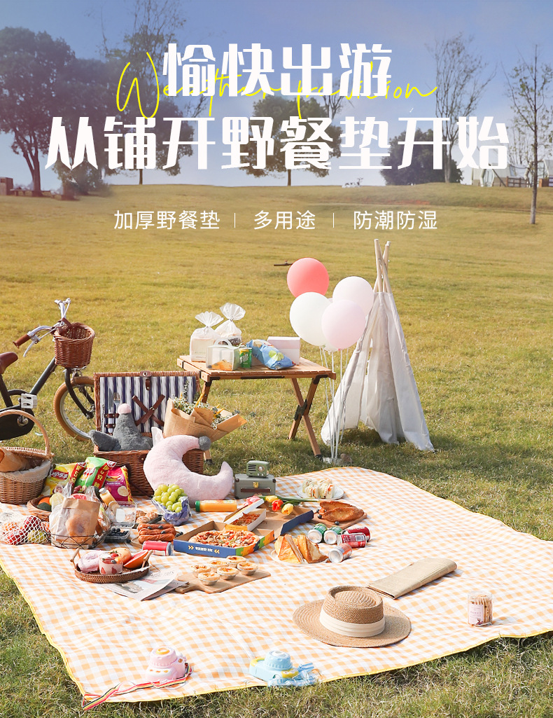 야외 피크닉 매트, 휴대용, 두꺼운, 방수, 접이식, 해변 캠핑용, 옥스포드 천, 방습 매트, 보관 가능스토어 가기
